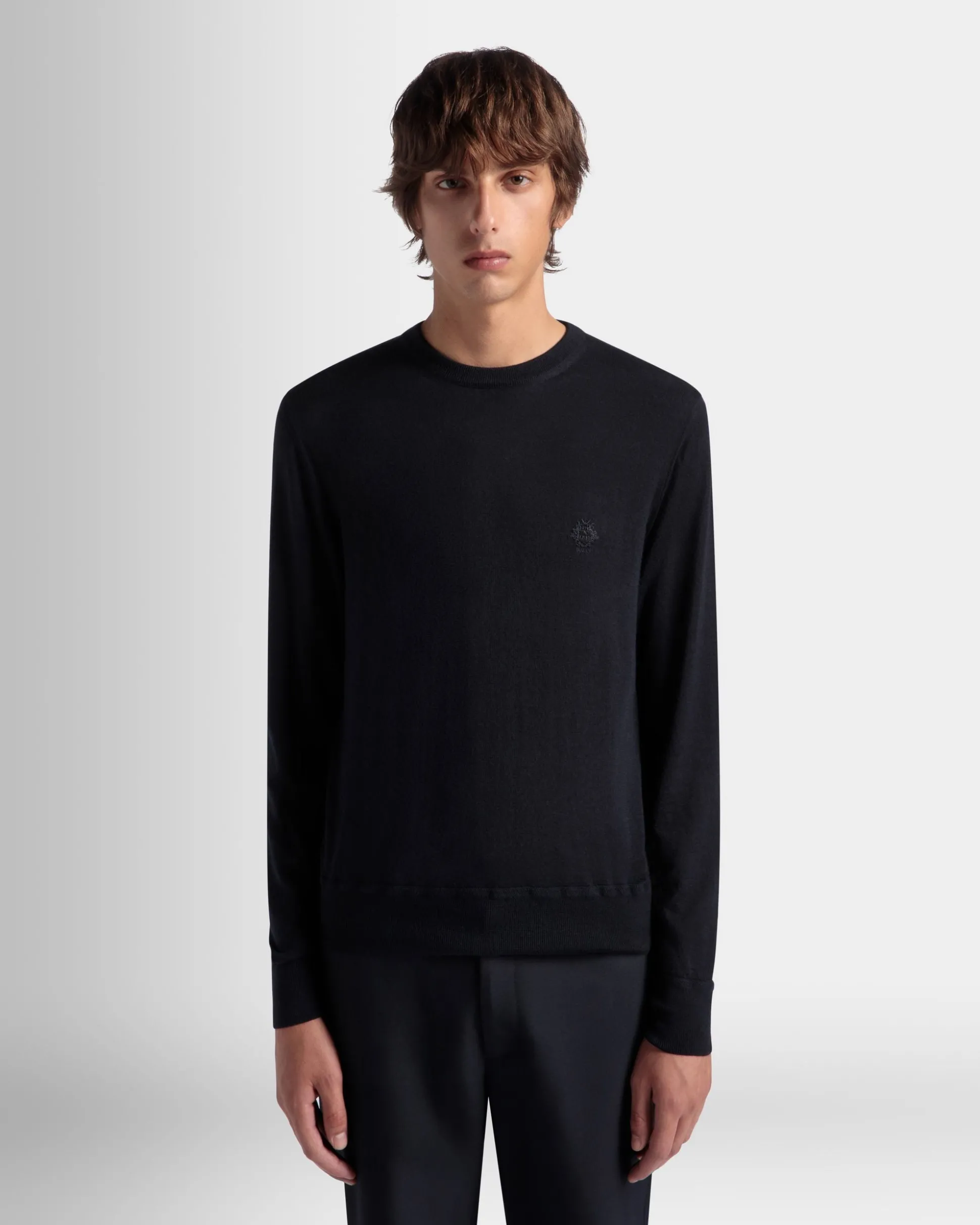 Timeless and essential, this Adrien Brody Travel Collection crewneck sweater in navy blue cashmere has been worked into a fine sixteen-gauge knit.