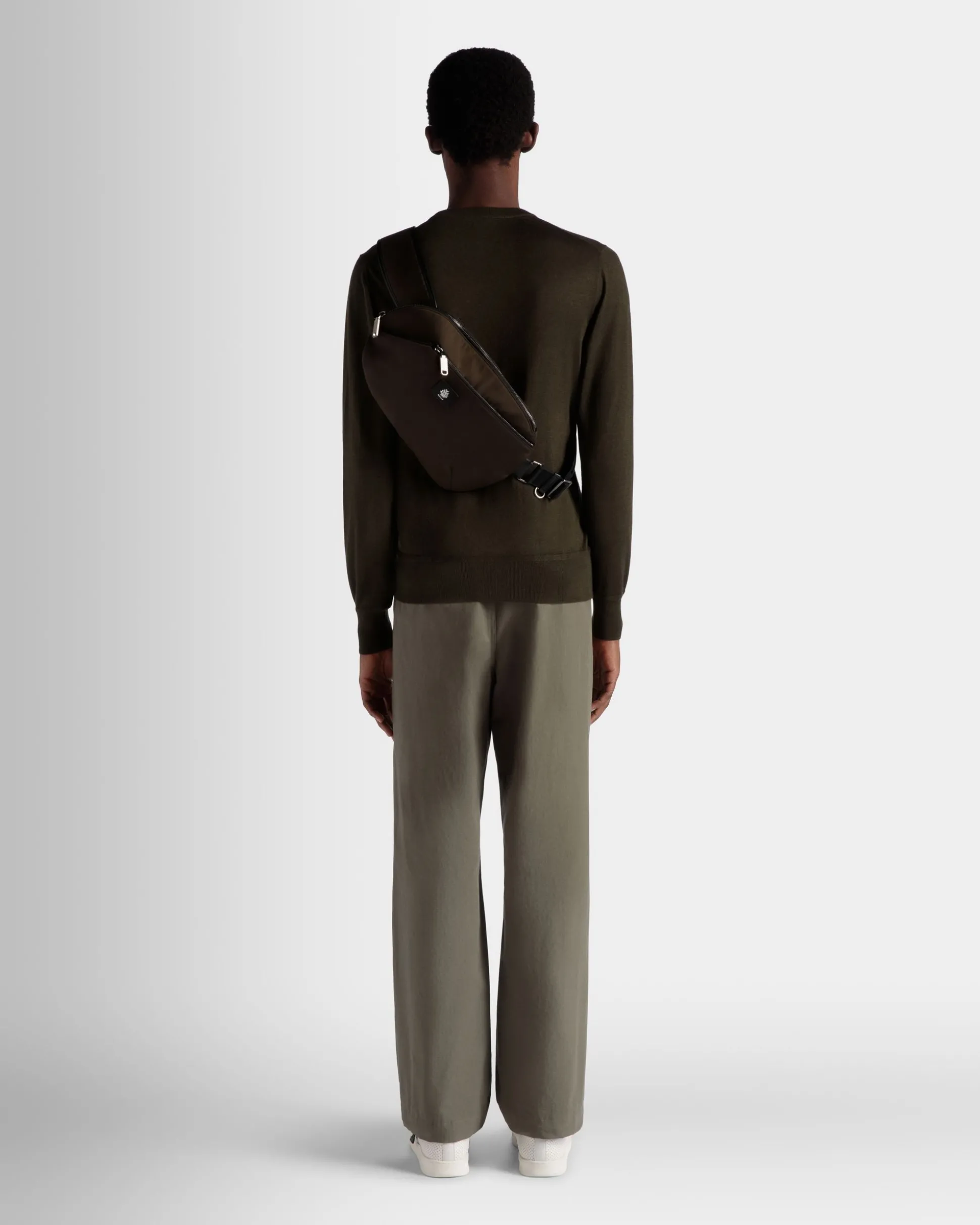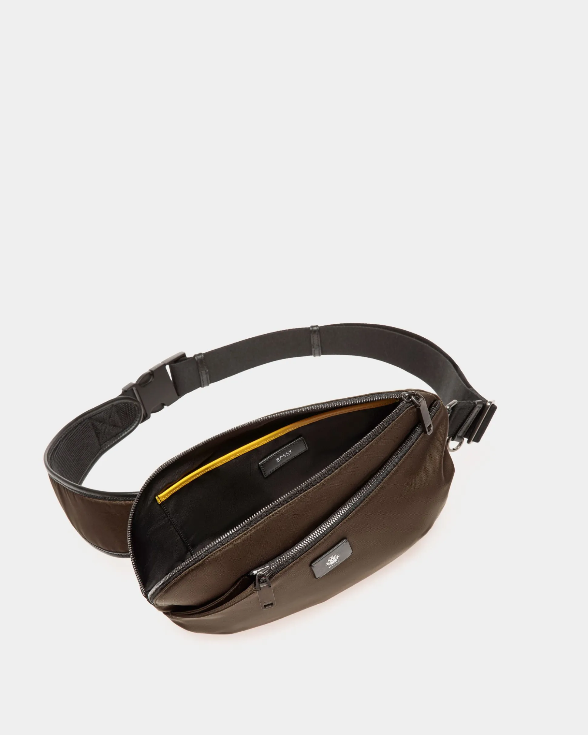 Rugged and functional, this crossbody bag from the Adrien Brody Travel Capsule Collection. It can be slung over the shoulder or worn as a belt bag, with dual compartments fastened by metal zippers.