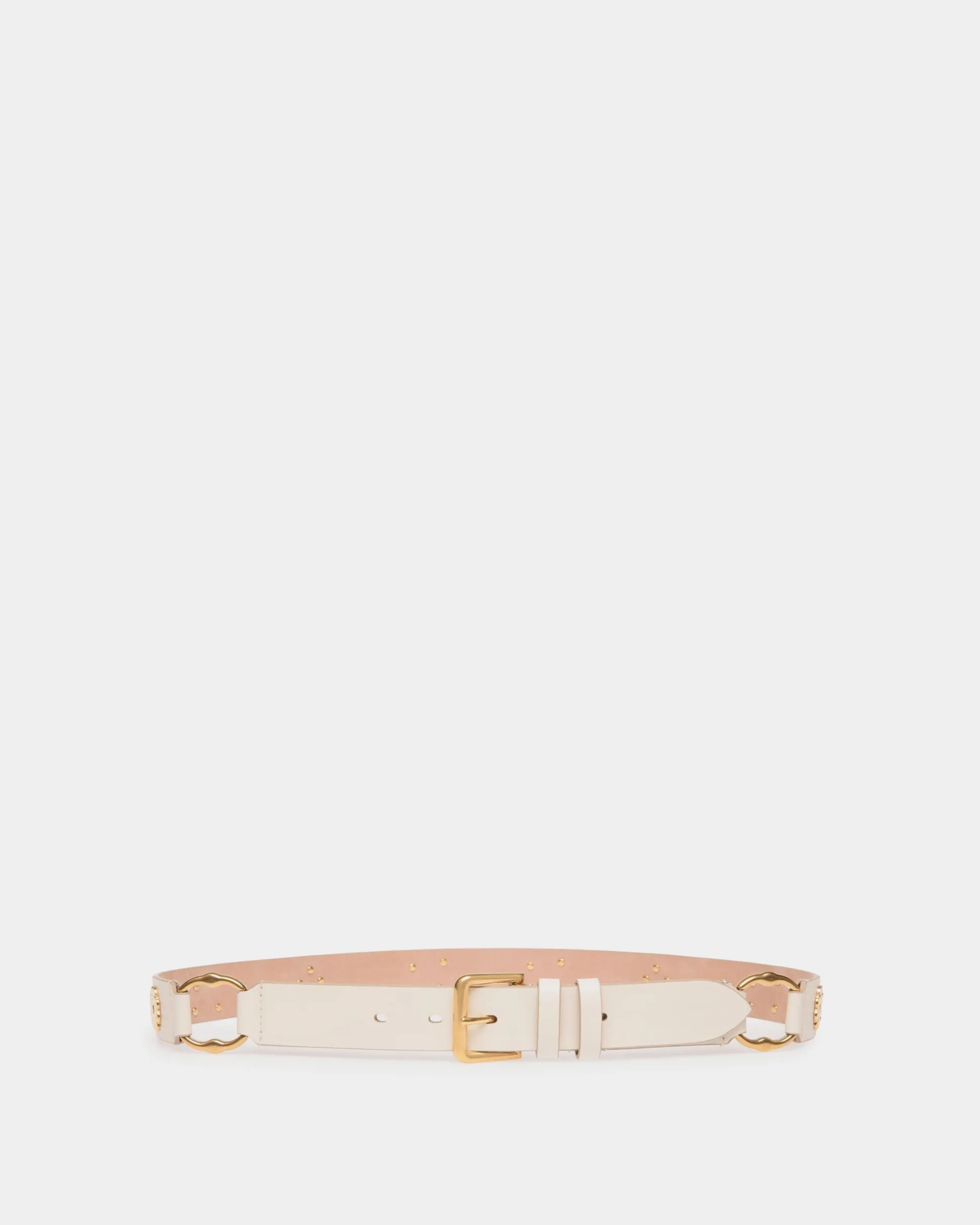 Made with exquisite attention to detail, this white leather belt is a timeless piece that effortlessly elevates your style, here in a 85 cm / 33.5 in length. The luxurious calfskin embodies Swiss craftsmanship, enriched by gold-tone metal hardware throughout. A must-have accessory in sophisticated wardrobes. Made in Italy.