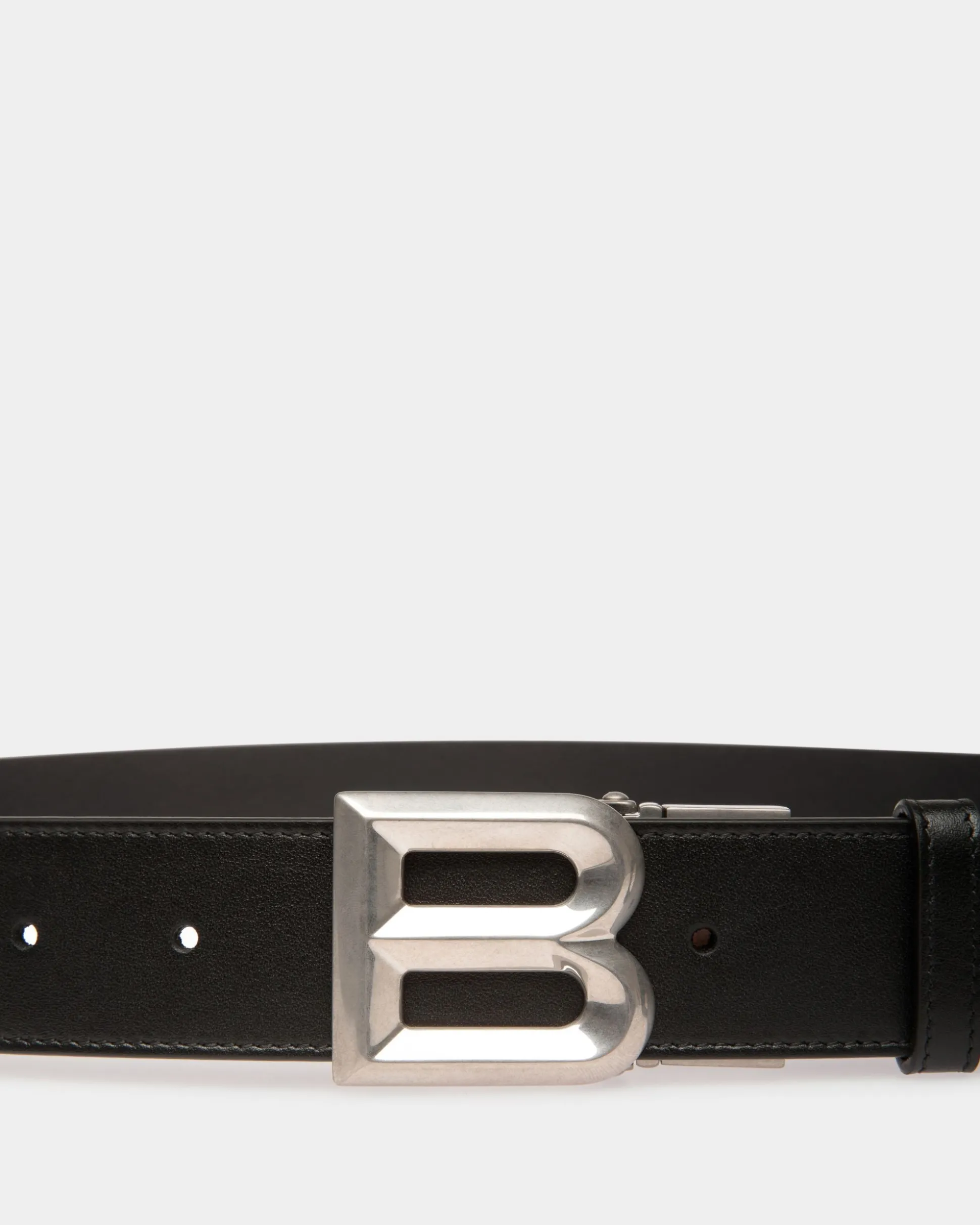 Crafted from premium black calfskin with Bally’s iconic B Bold buckle to the front, this 35 mm reversible belt offers versatility and style. With an adjustable design, it ensures a perfect fit for any occasion, making it a must-have accessory for the modern gentleman.
