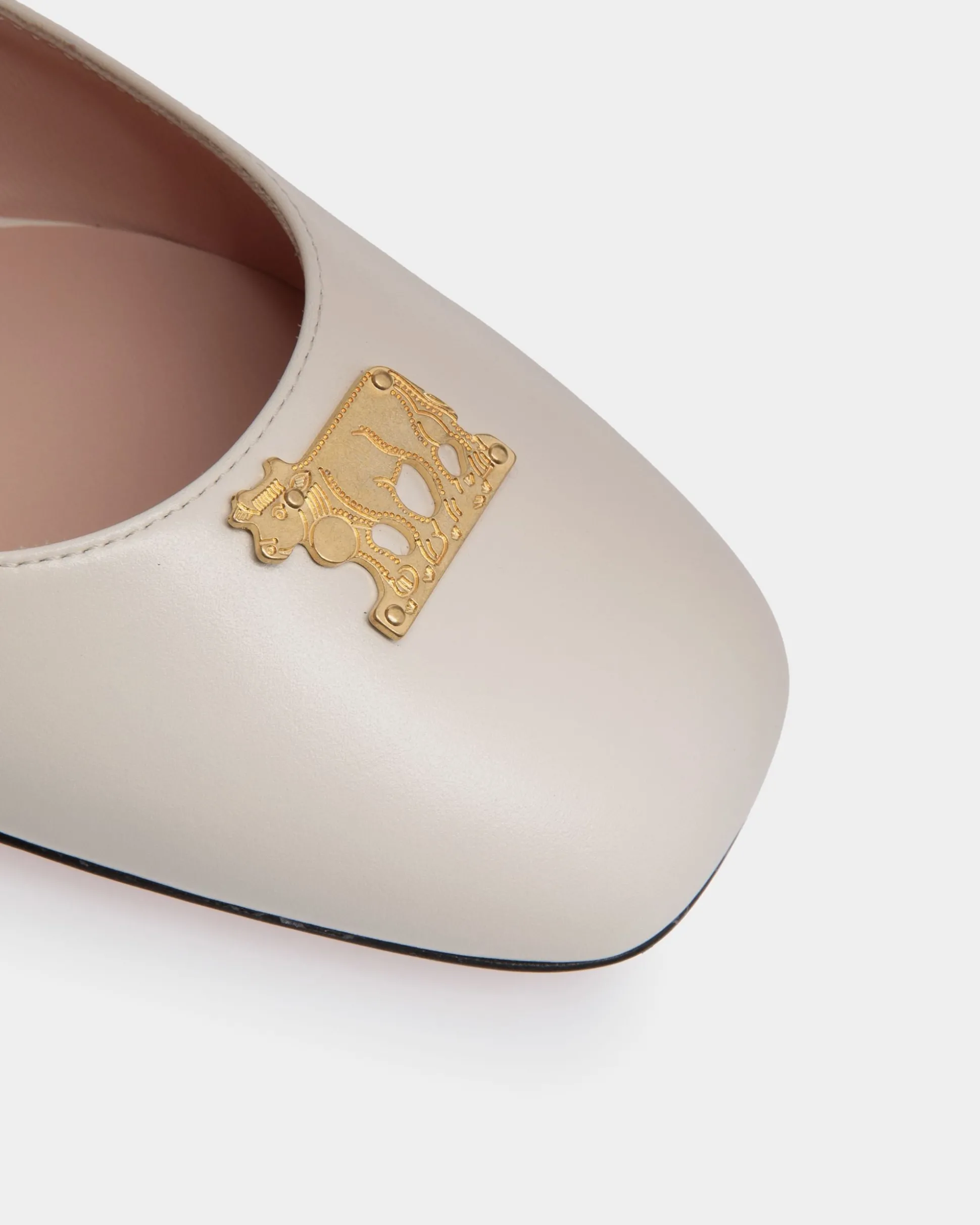 This Mary Jane ballerina flat in white calfskin combines classic design, comfort and impeccable craftsmanship. The square toe is completed by gold-tone metal details.