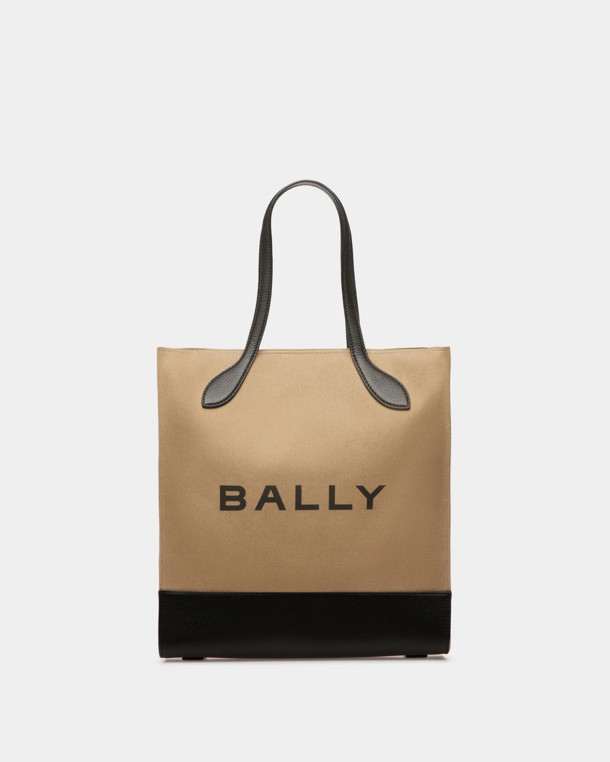 A black trim and the iconic Bally logo bring a polished feel to a classic tote silhouette. Twin top handles and hammered gold hardware complete the style.