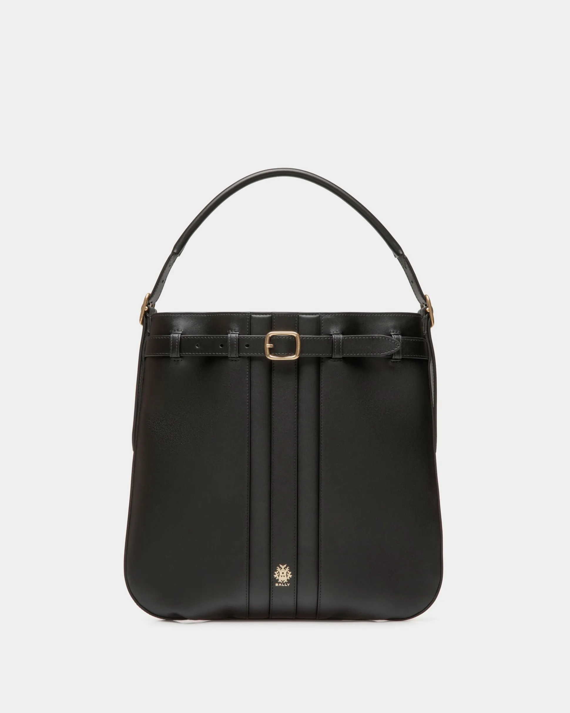 Featured in the FW24 Bally fashion show, this Beckett crossbody bag in black calfskin has an adjustable strap secured by a gold-tone metal buckle. An inlay Ribbon and a foil Crest represent Bally signifiers.