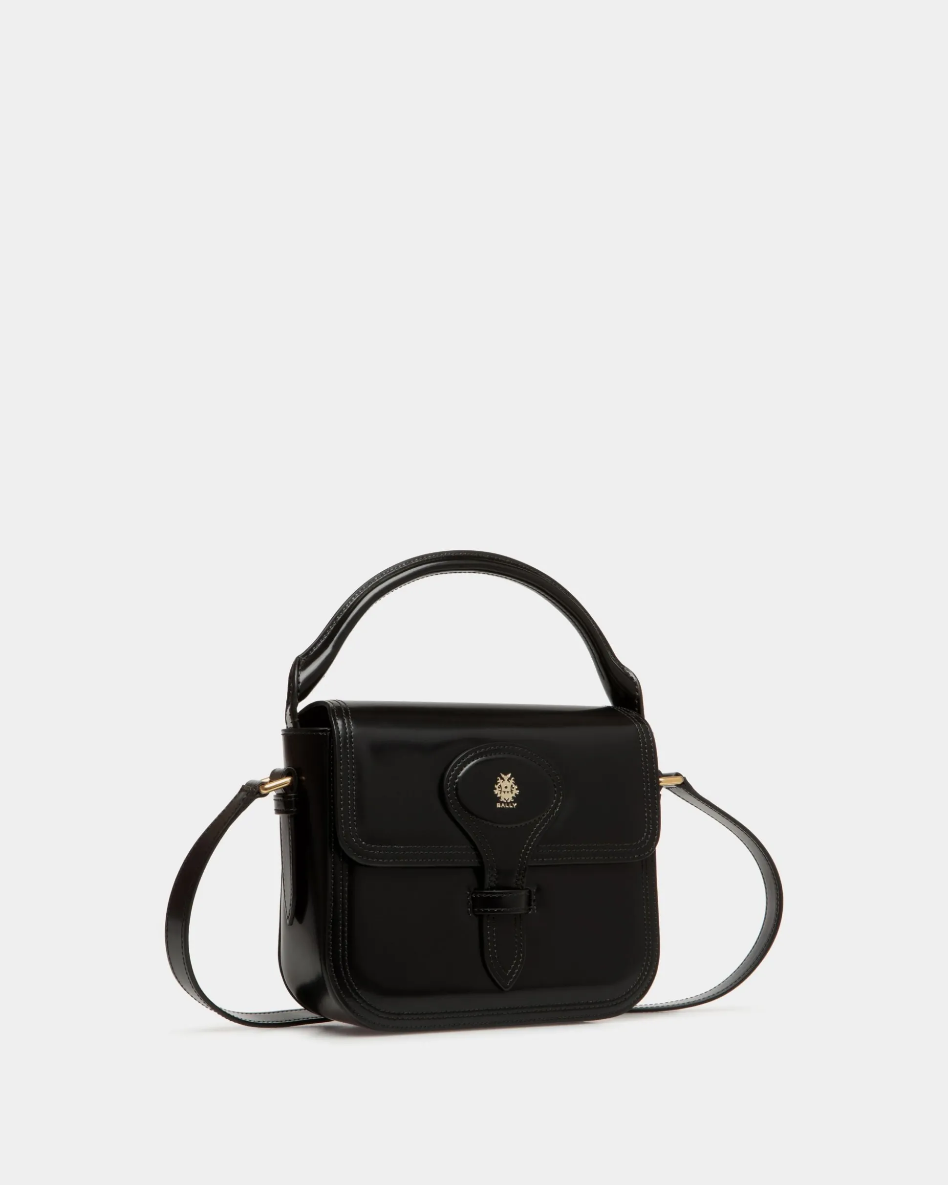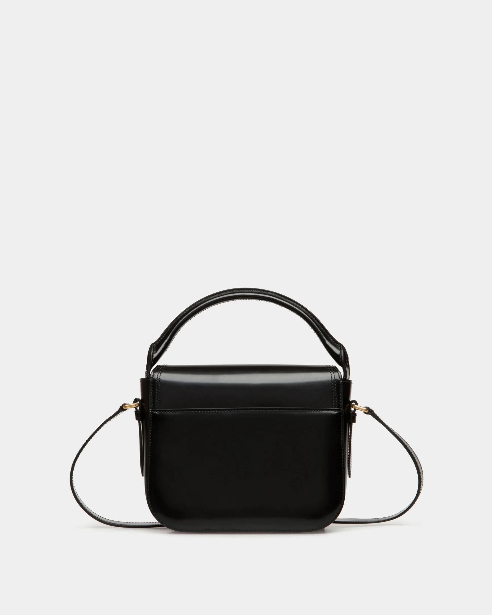 This Beckett minibag in black brushed leather is crafted into a compact silhouette with a flap closure. A top handle and an adjustable shoulder strap offer multiple portability options.
