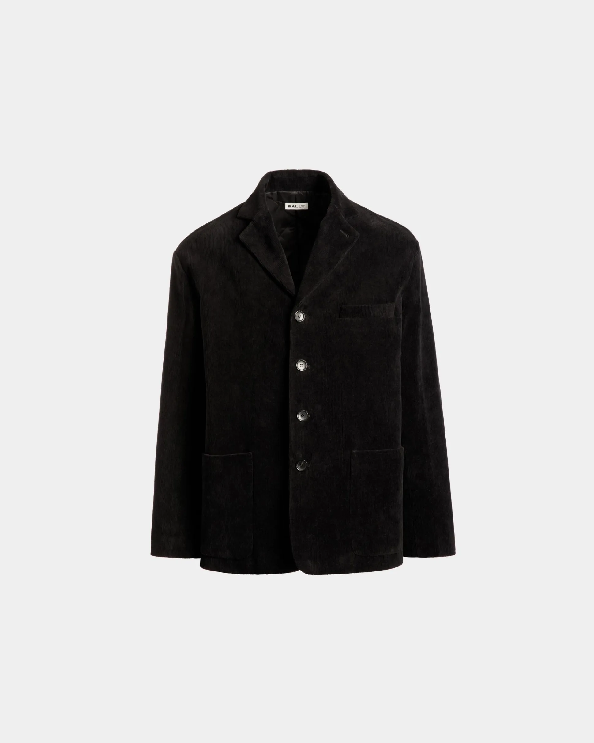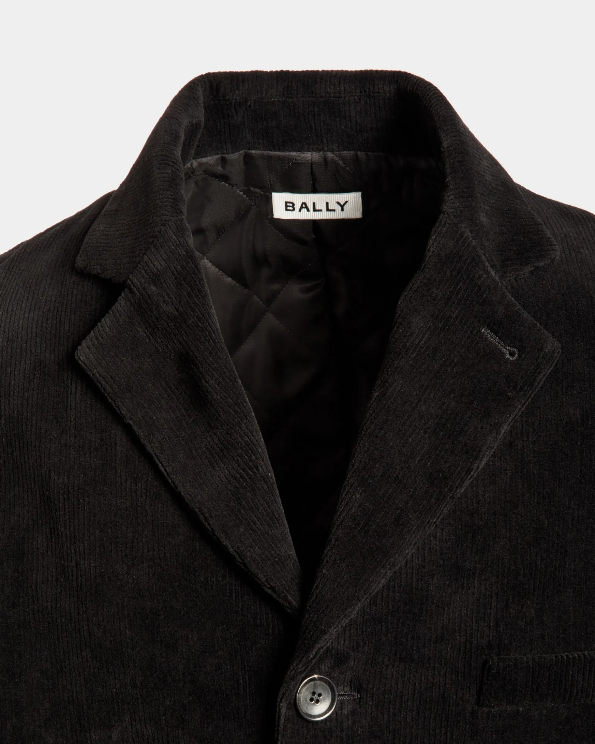 Velvety cotton corduroy in a deep black hue brings a sumptuous character to this single-breasted four-button blazer. Quilted padding on the inside ensures warmth.