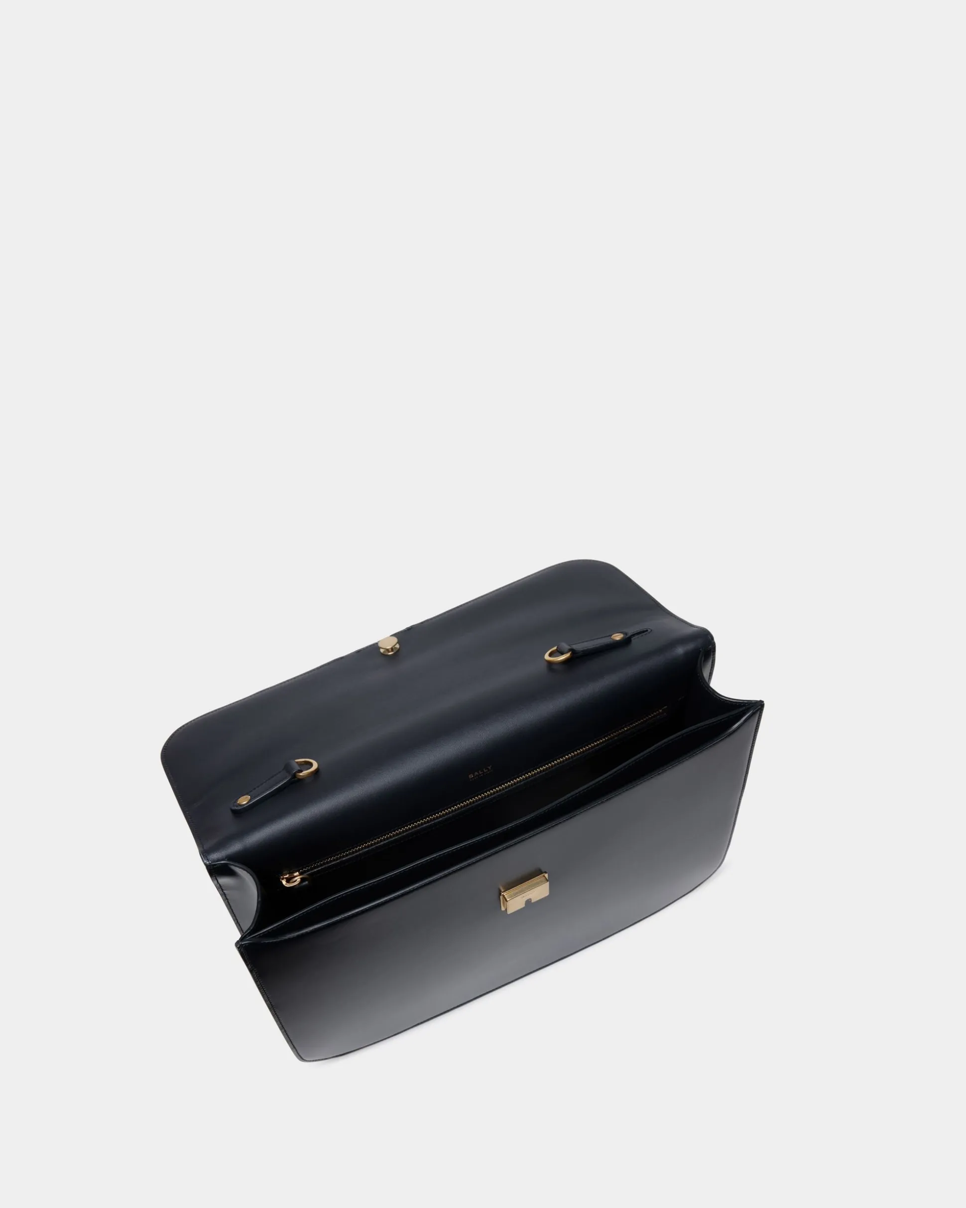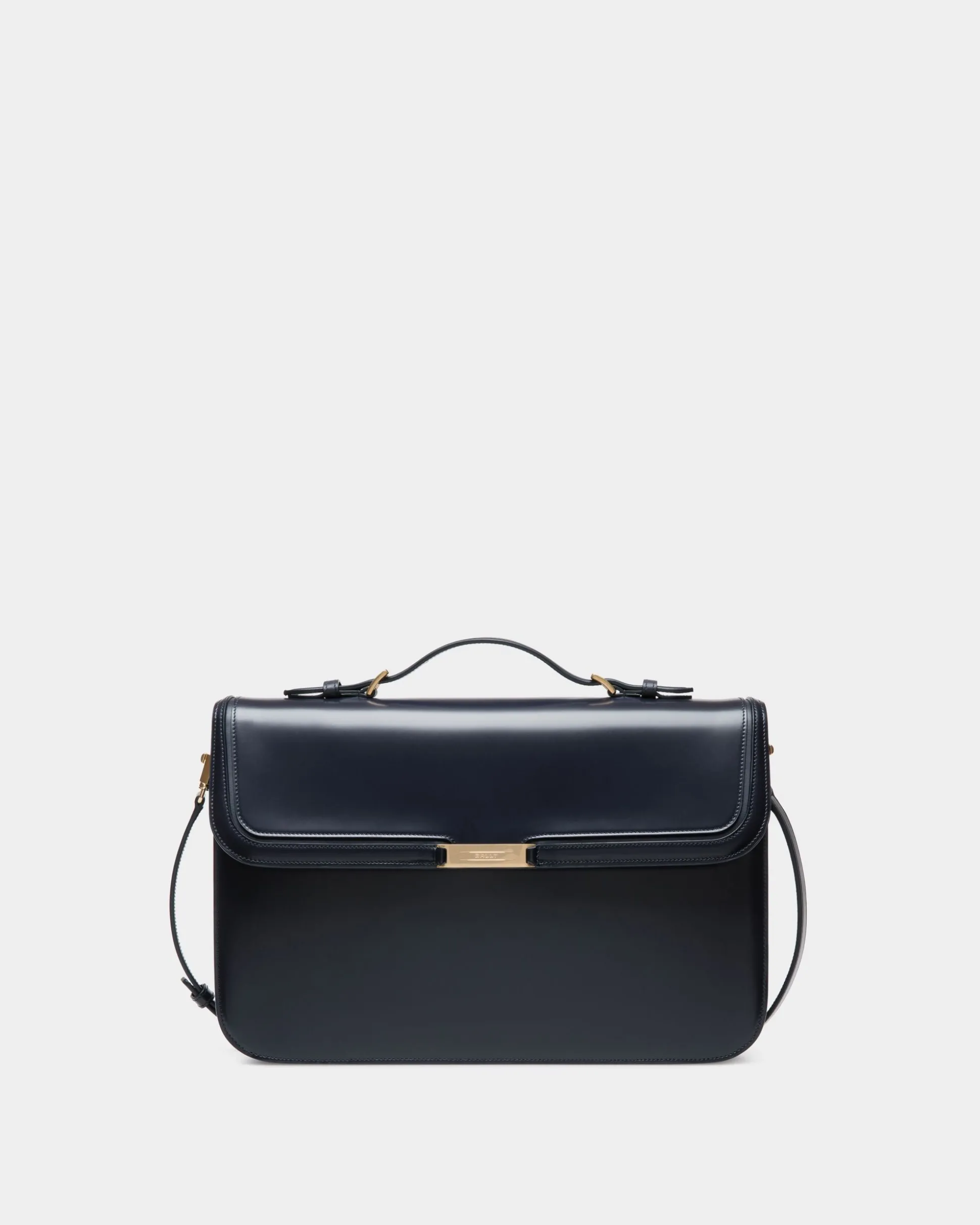 In navy blue brushed leather, the Deco briefcase is trimmed in gold-tone metal hardware. With a handle to the top and a shoulder strap for a range of carry options, its modern, essential silhouette is a showcase of sleek elements and masterful artisanry.