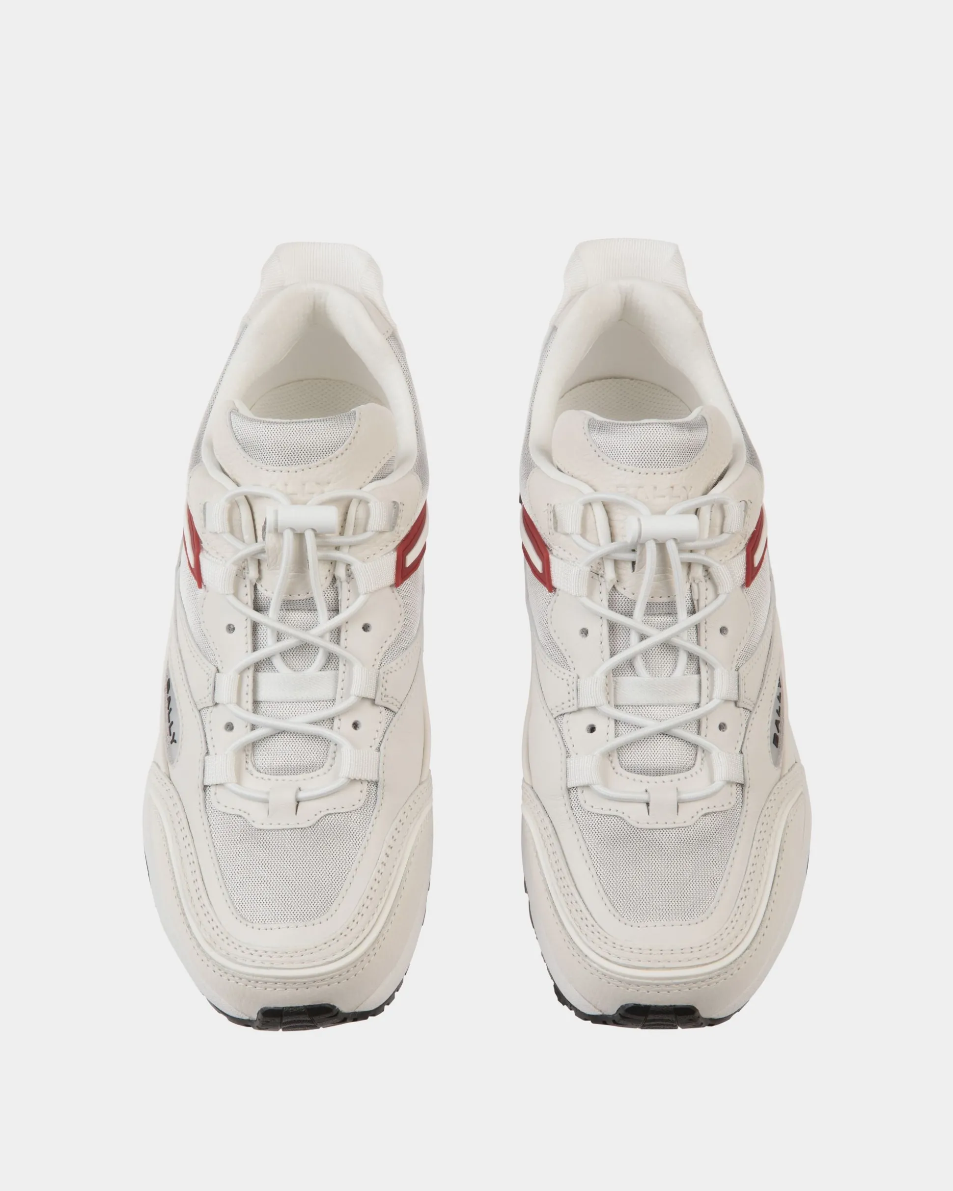 Inspired by chunky running styles, this Faster sneaker is in white leather and nylon, with a Vibram sole for unparalleled grip. A sleek Bally Ribbon at the sides, a rear pull tab and a fast-lacing system secured by a stopper provide essential detailing.