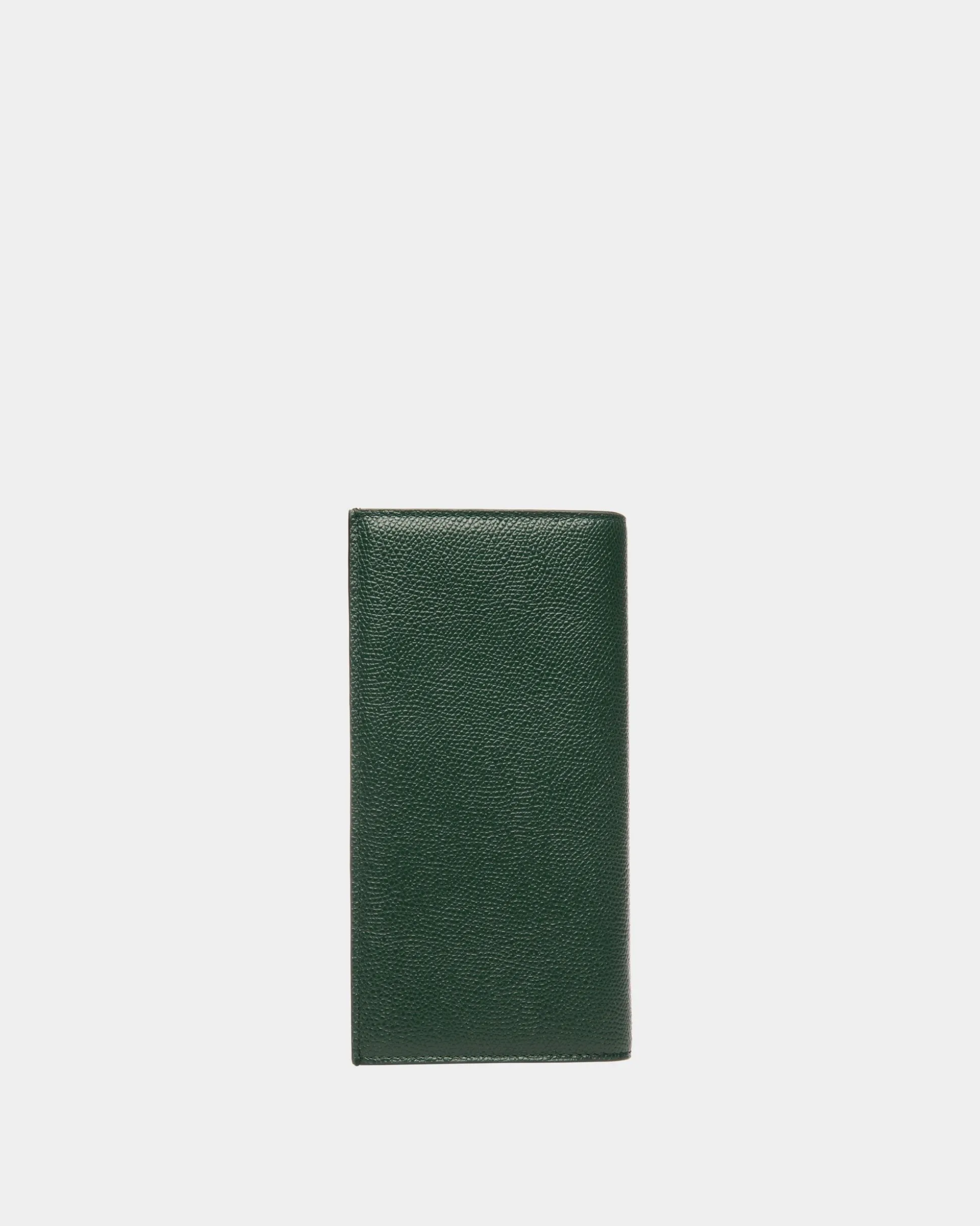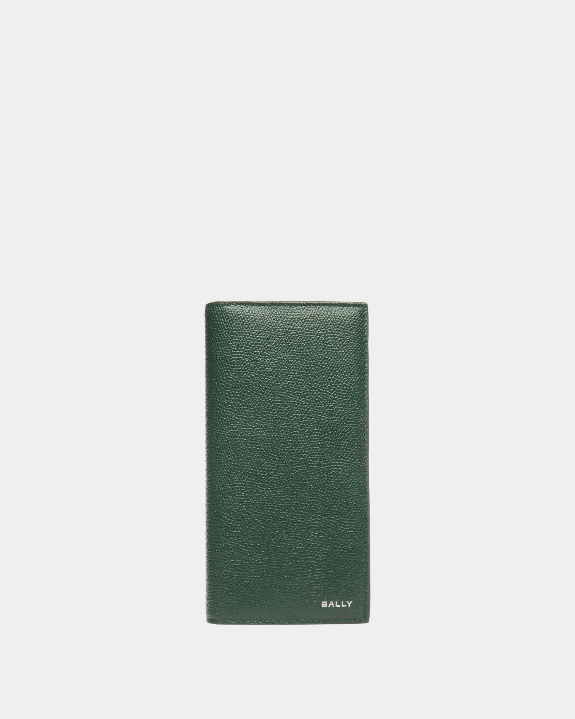 This Bottle Green Flag continental wallet is meticulously crafted in embossed calfskin and decorated by a gold-tone Bally foil logo on one corner. On the inside, inlay leatherworking takes the shape of a Flag signifier, just below the multiple card slots.