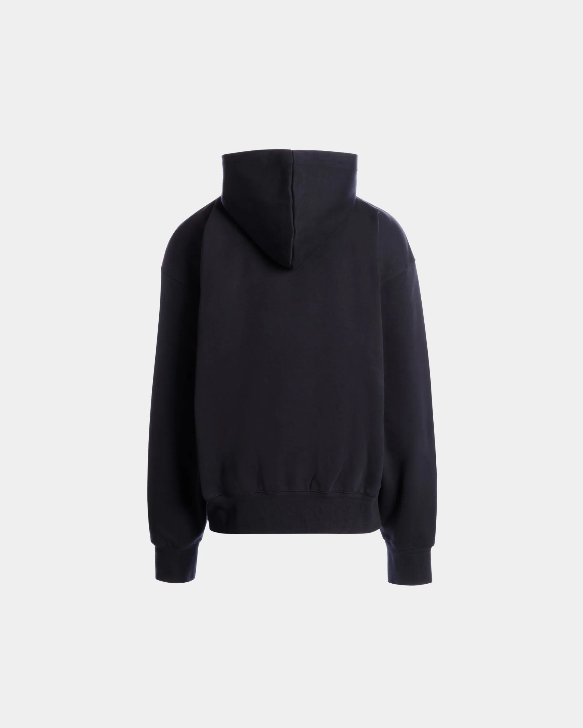 This navy blue hoodie in supple knit cotton features a large embroidered Bally Crest and a pouch pocket placed at the front.