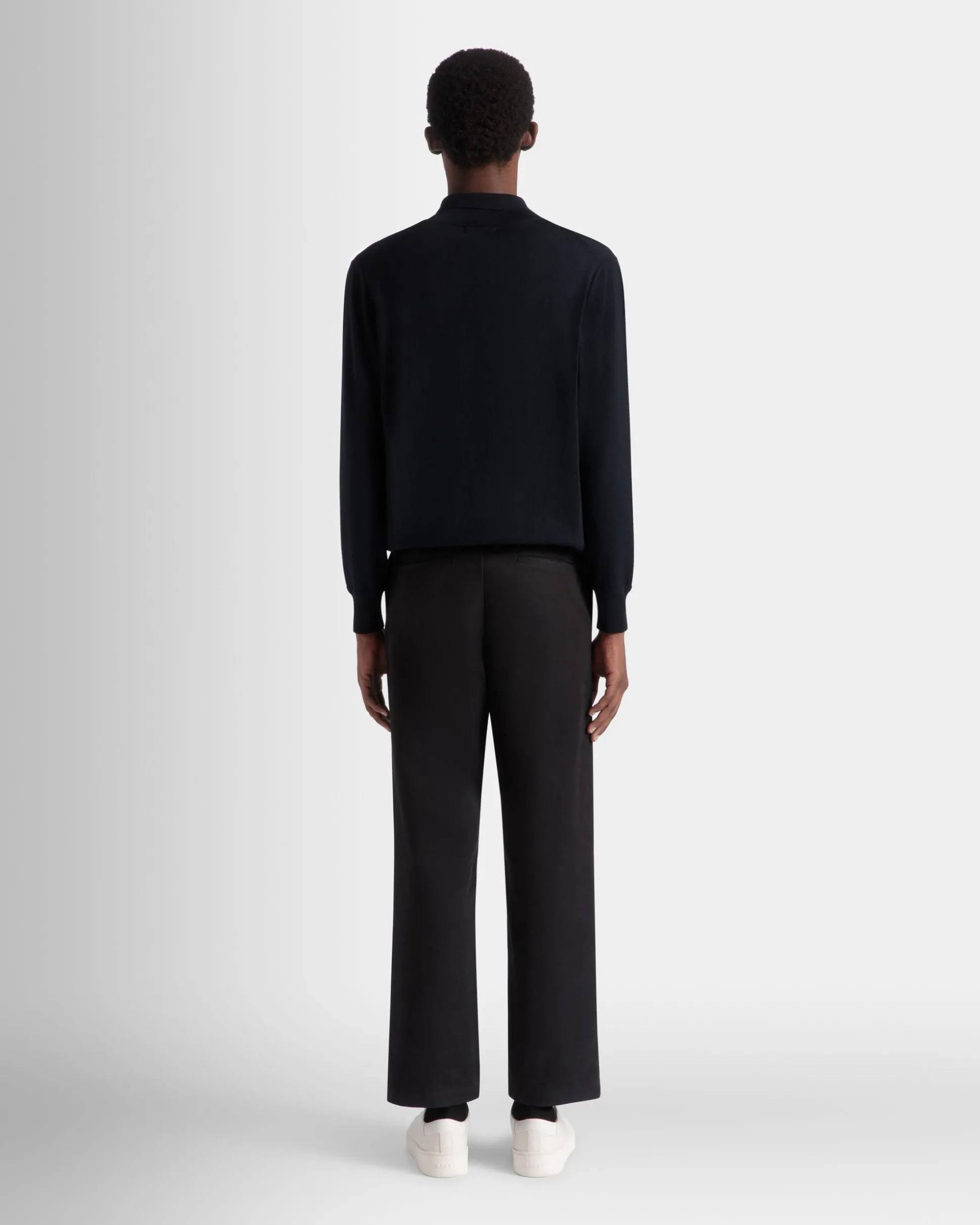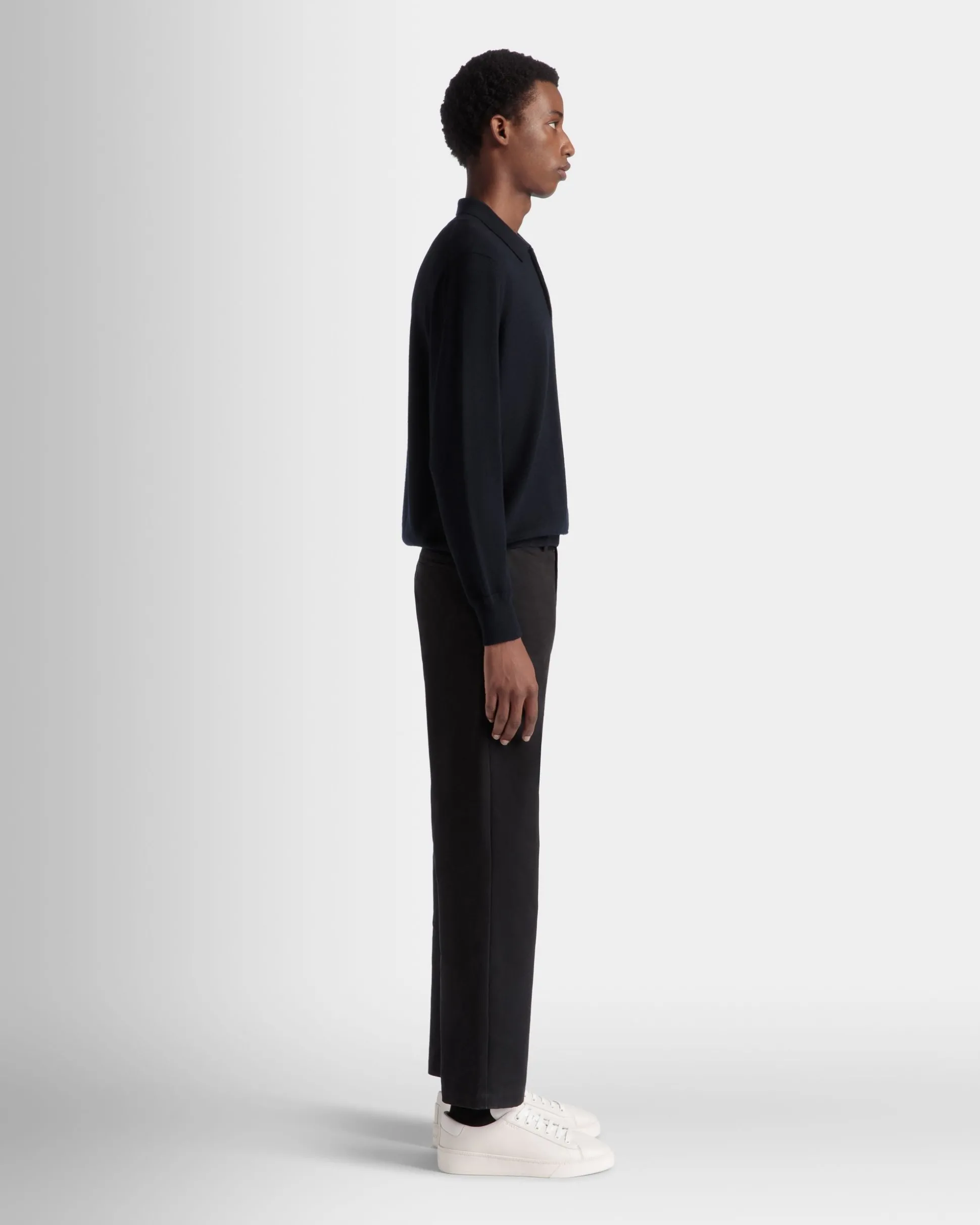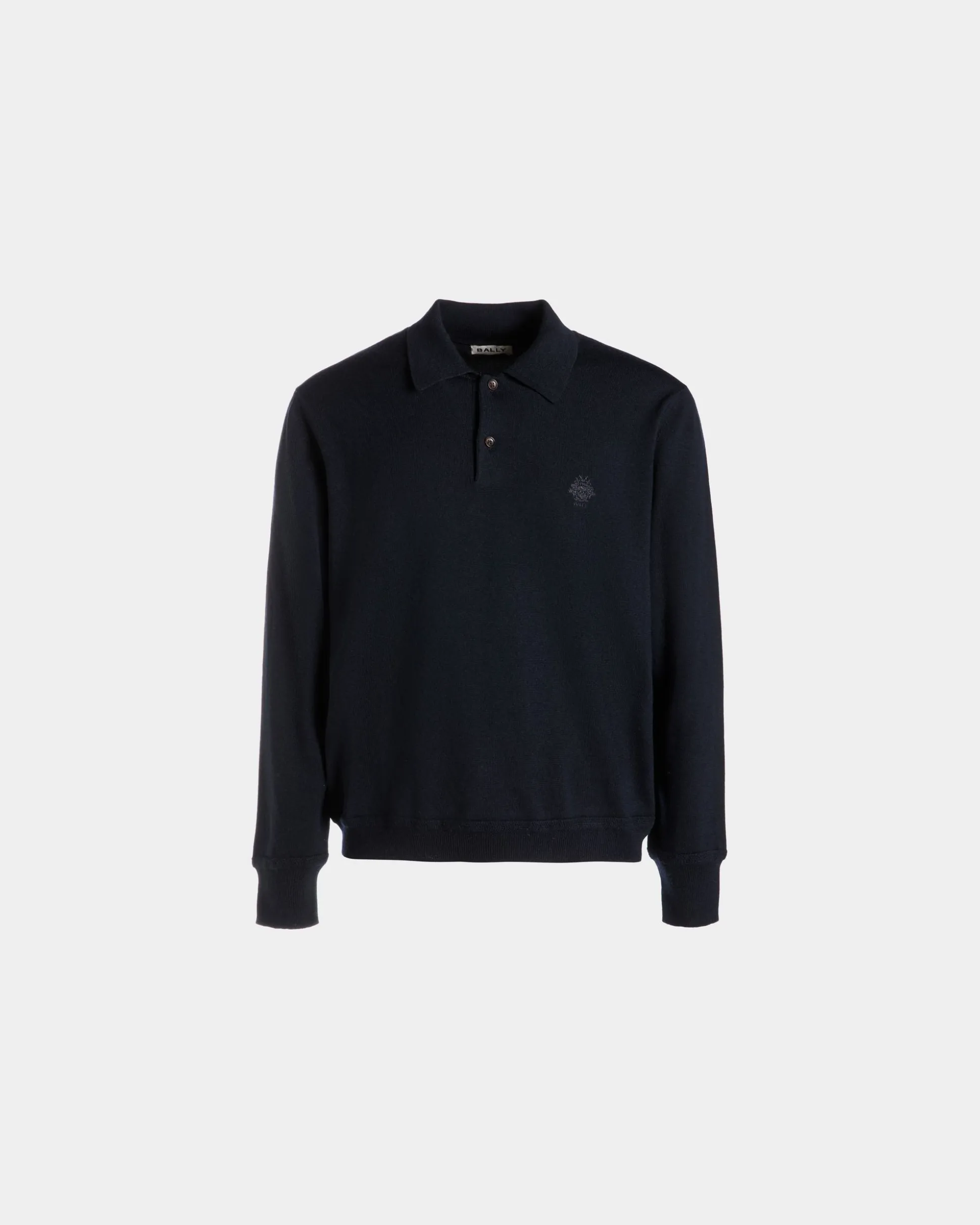 Long Sleeve Polo With Bally Crest Logo In Navy Blue Wool