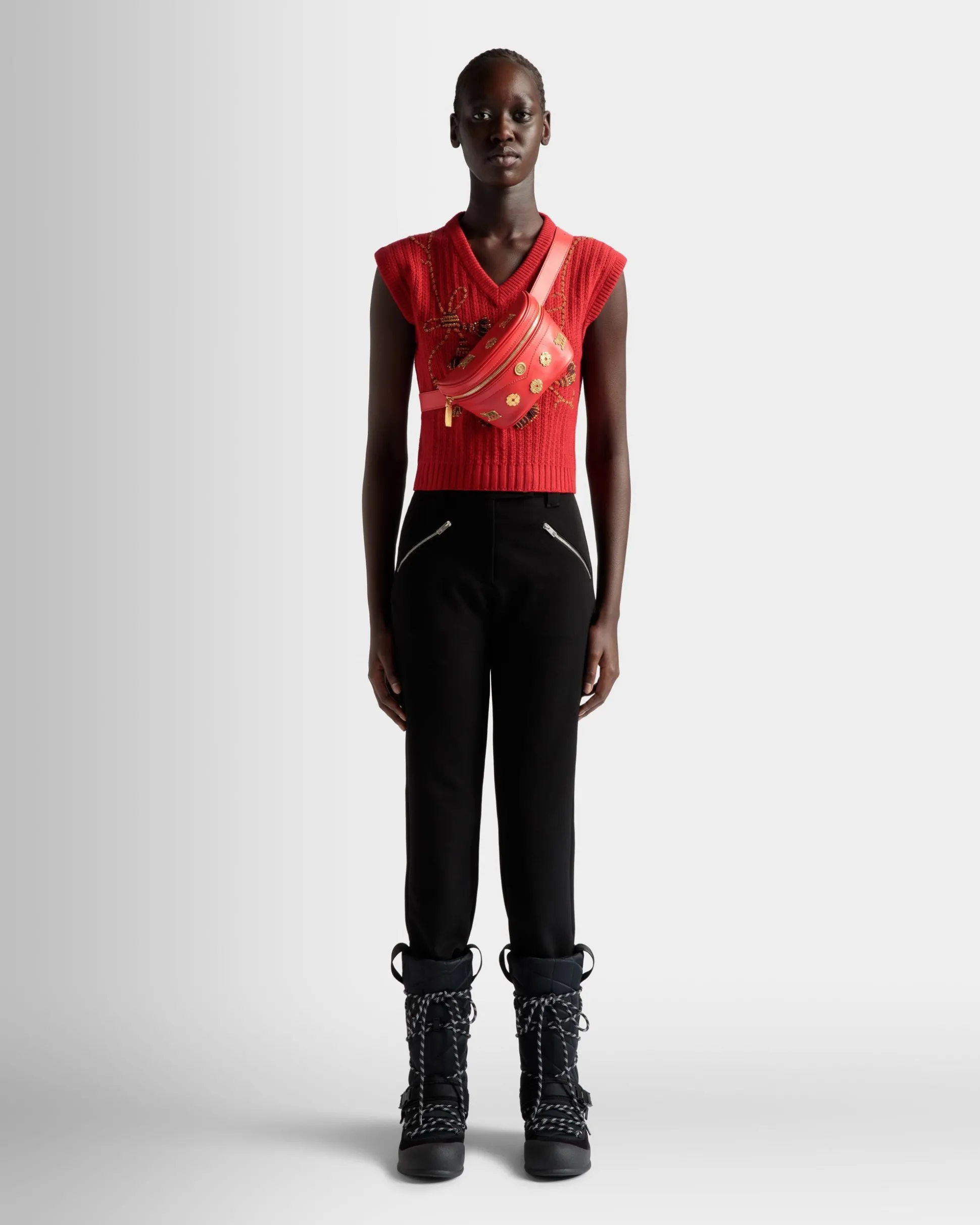 From the Mountain collection, this belt bag in red leather exudes modern elegance with its sleek design and premium craftsmanship. It features an adjustable belt and gold-tone hardware for a luxurious touch. Made in Italy.