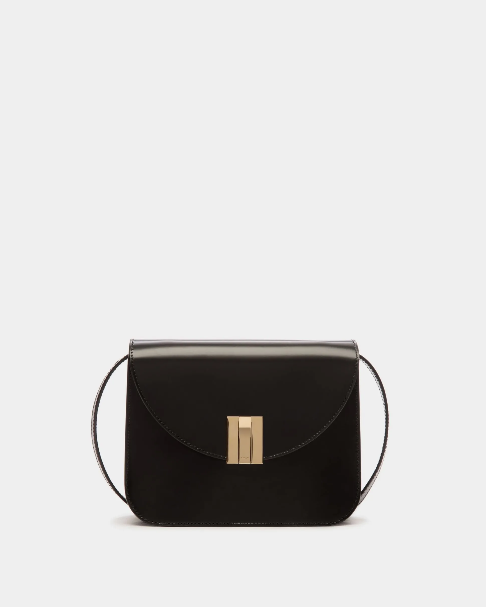 Chic and contemporary, the Ollam crossbody bag in black brushed leather is a masterpiece of exceptional craftsmanship. Composed of three metal stripes, the bands of the magnetic flap closure are a monochrome version of the historical Bally Ribbon. The divided compartment has been expertly designed to expand as needed, while the zip pocket holds smaller items.
