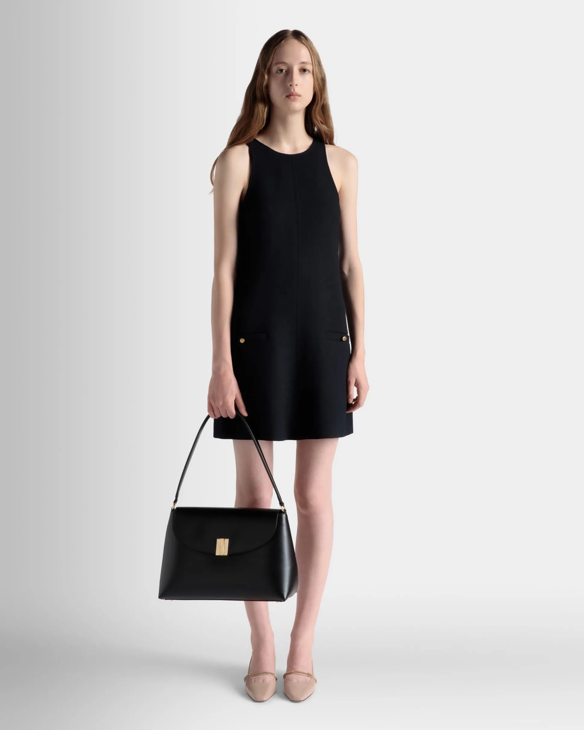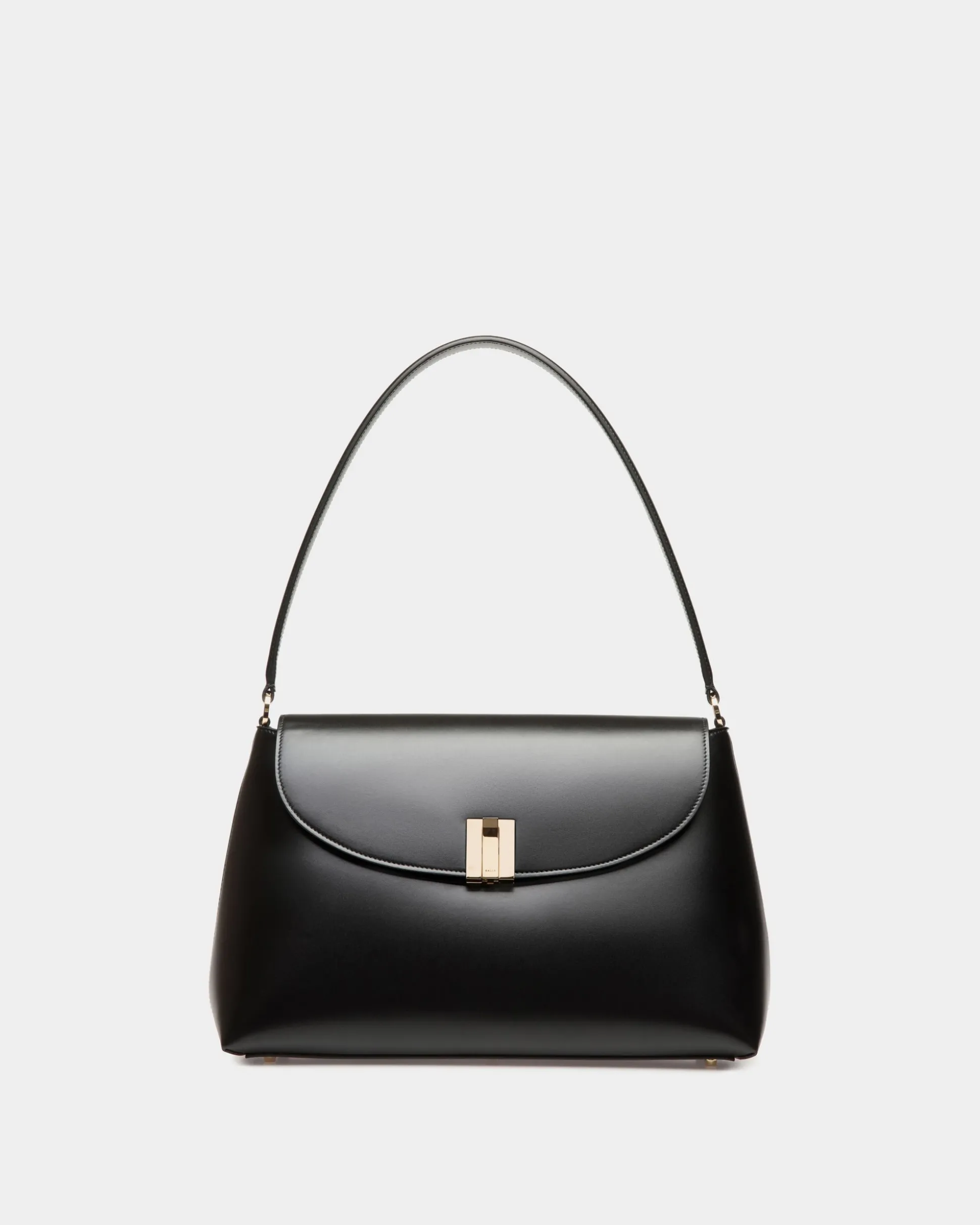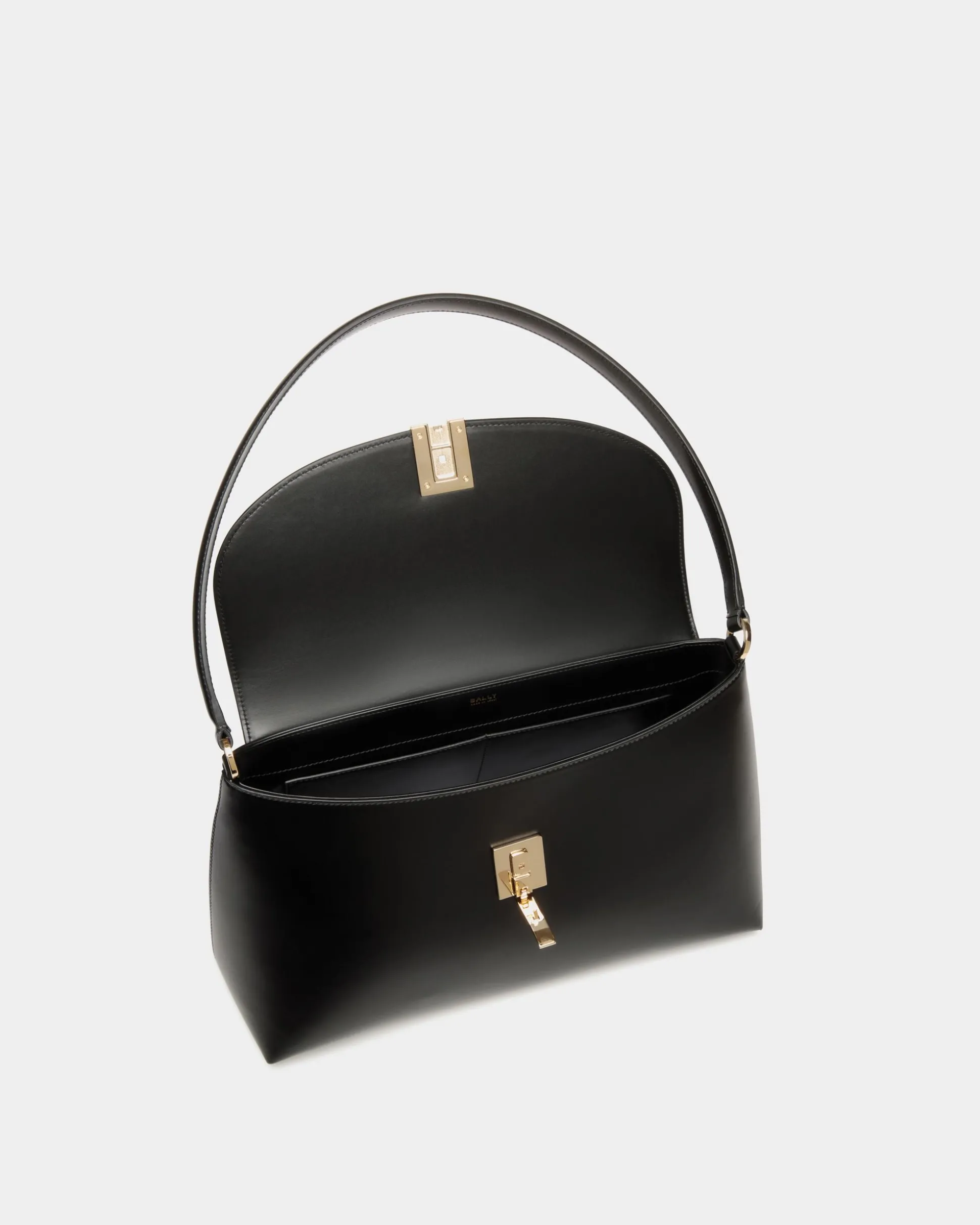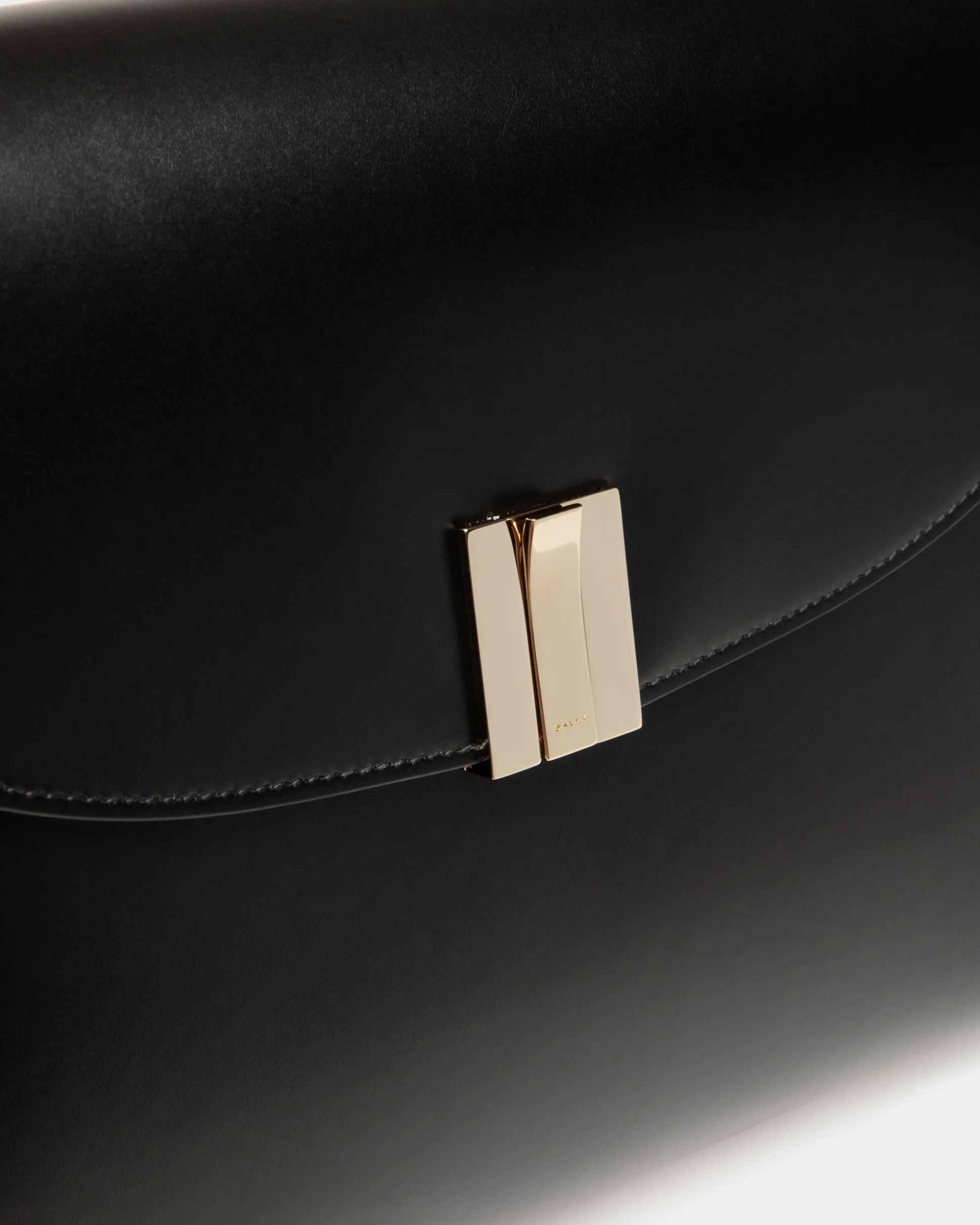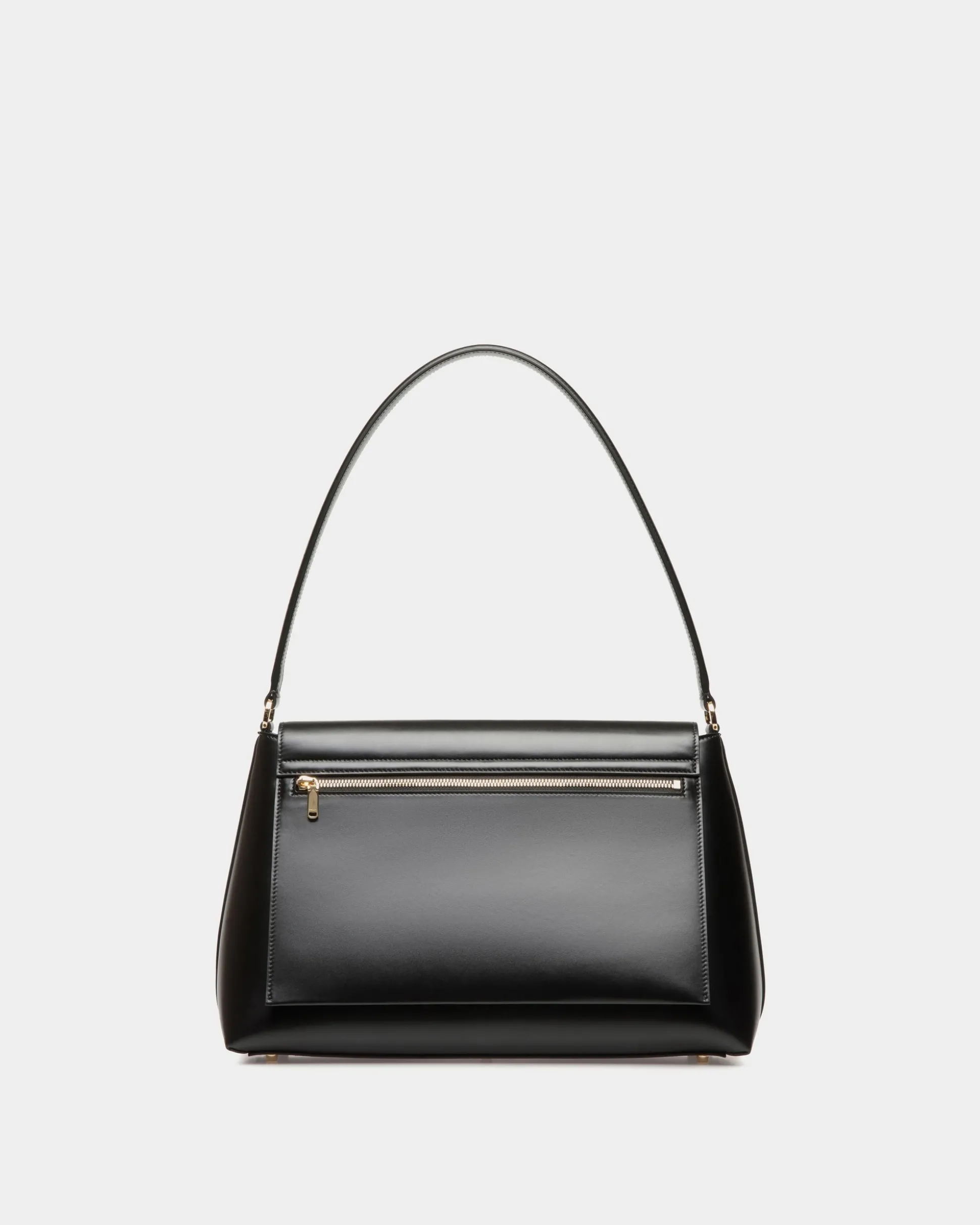 Sophisticated and versatile, this Ollam bag in calfskin brings exceptional craftsmanship to a feminine accessory. The functional hardware at the center is shaped into an essential Bally Ribbon in gold-tone metal, closing the top flap of the main compartment. A zipped pocket on the outer back panel keeps smaller items secure yet within reach.
