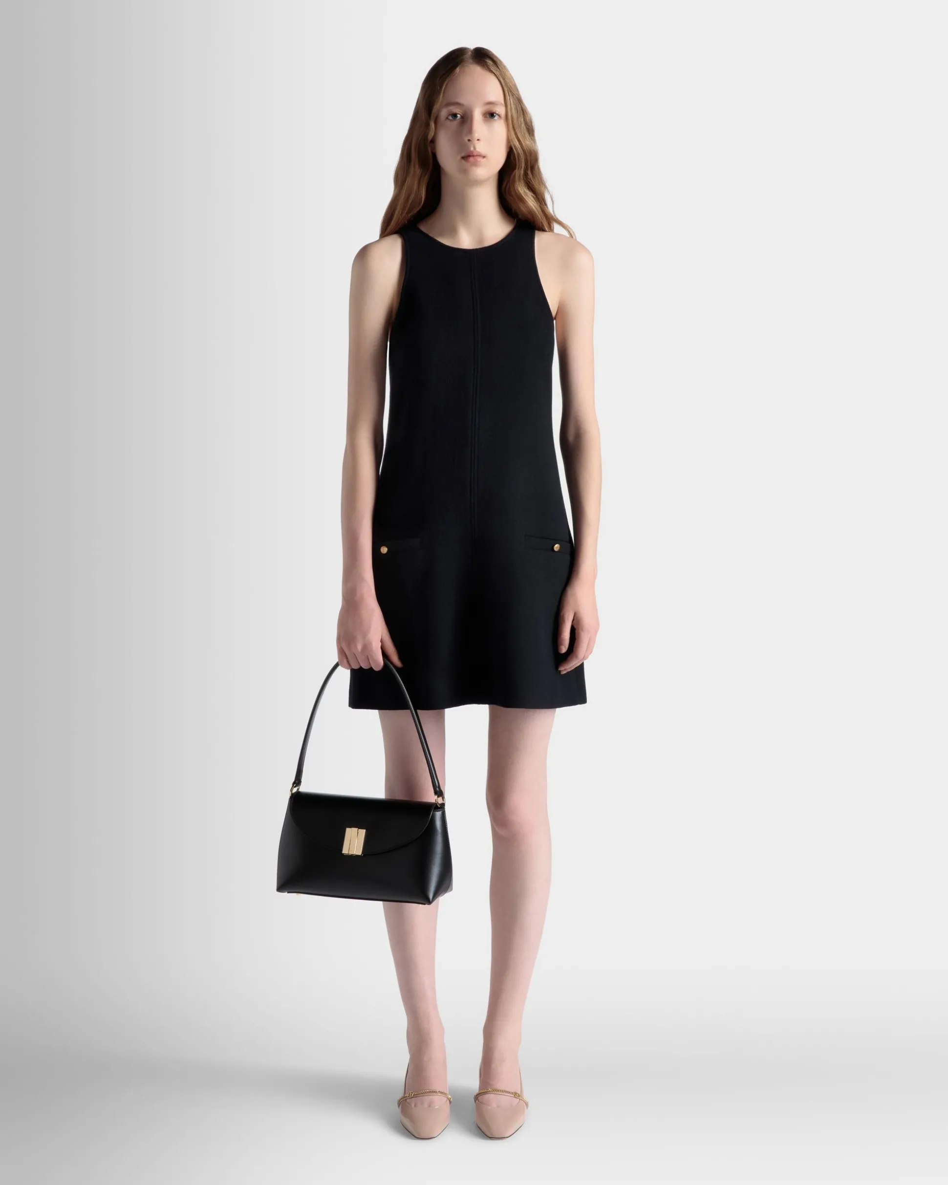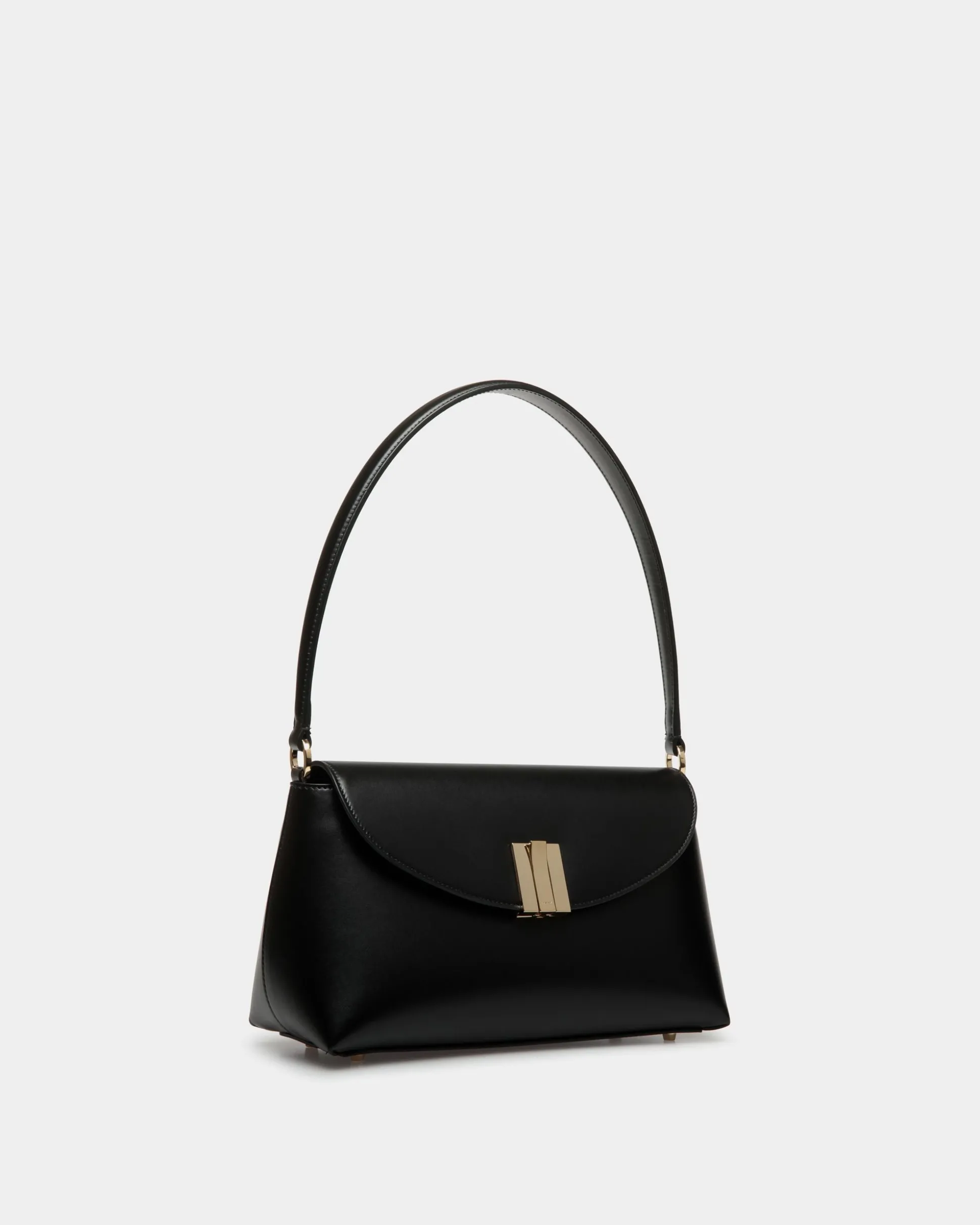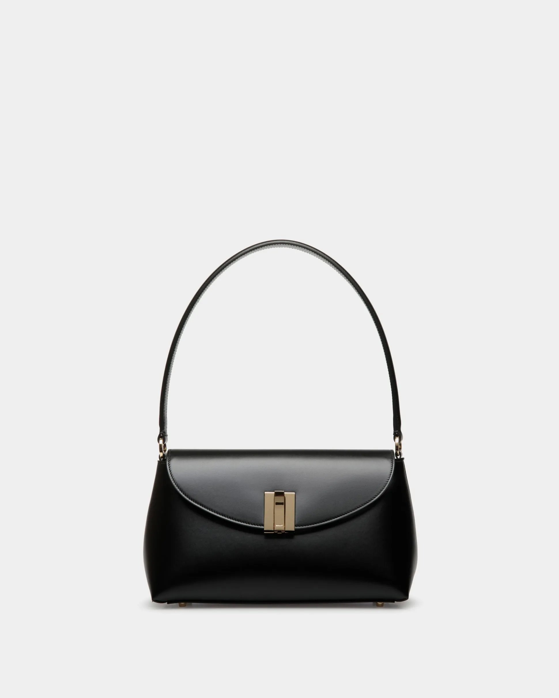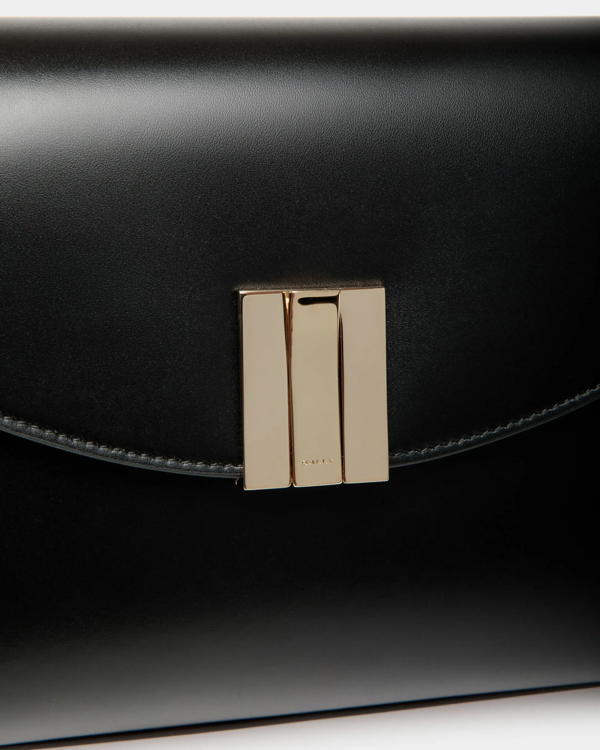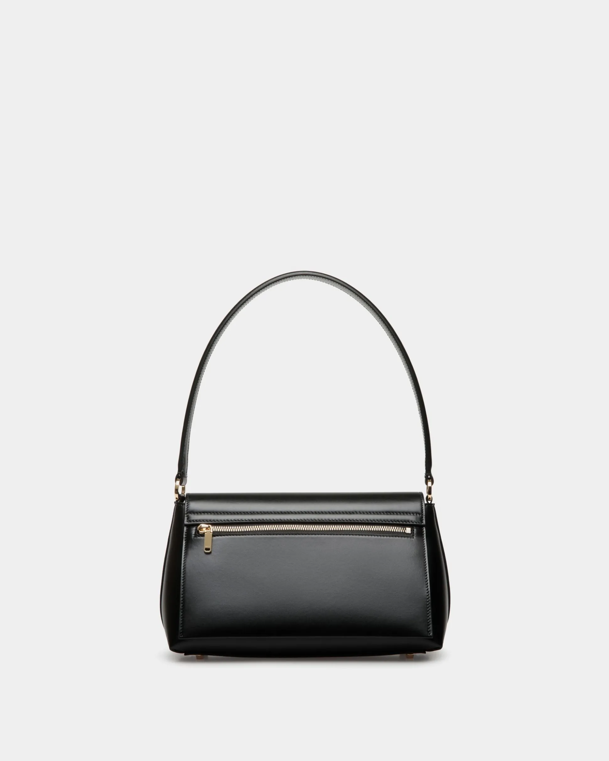 Sumptuous and feminine, this small Ollam top handle bag in fine-grain calfskin brings exacting artisan traditions to modern lifestyles. The functional hardware at the center is shaped into an essential Bally Ribbon in gold-tone metal, closing the top flap of the main compartment. A zipped pocket on the outer back panel keeps smaller items secure yet within reach.
