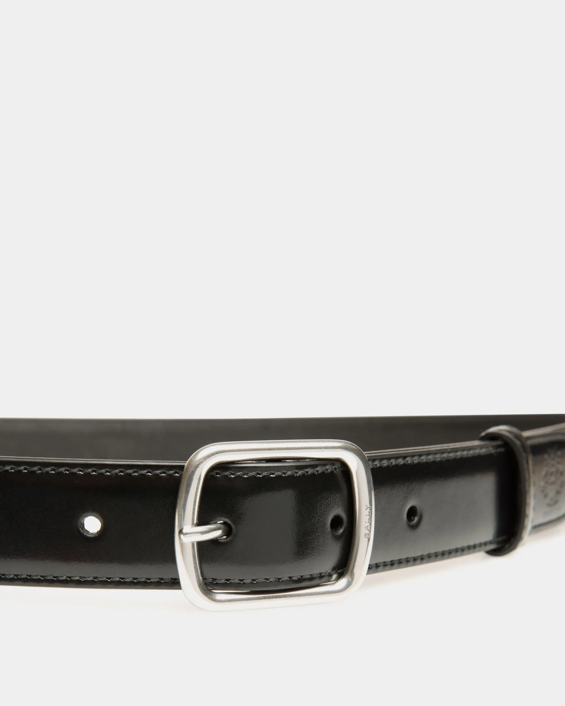 This Orson 25mm belt is in smooth black leather with an embossed Bally Crest on the end tip. A contemporary Bally logo has been imprinted on the square buckle in palladium-hue metal.