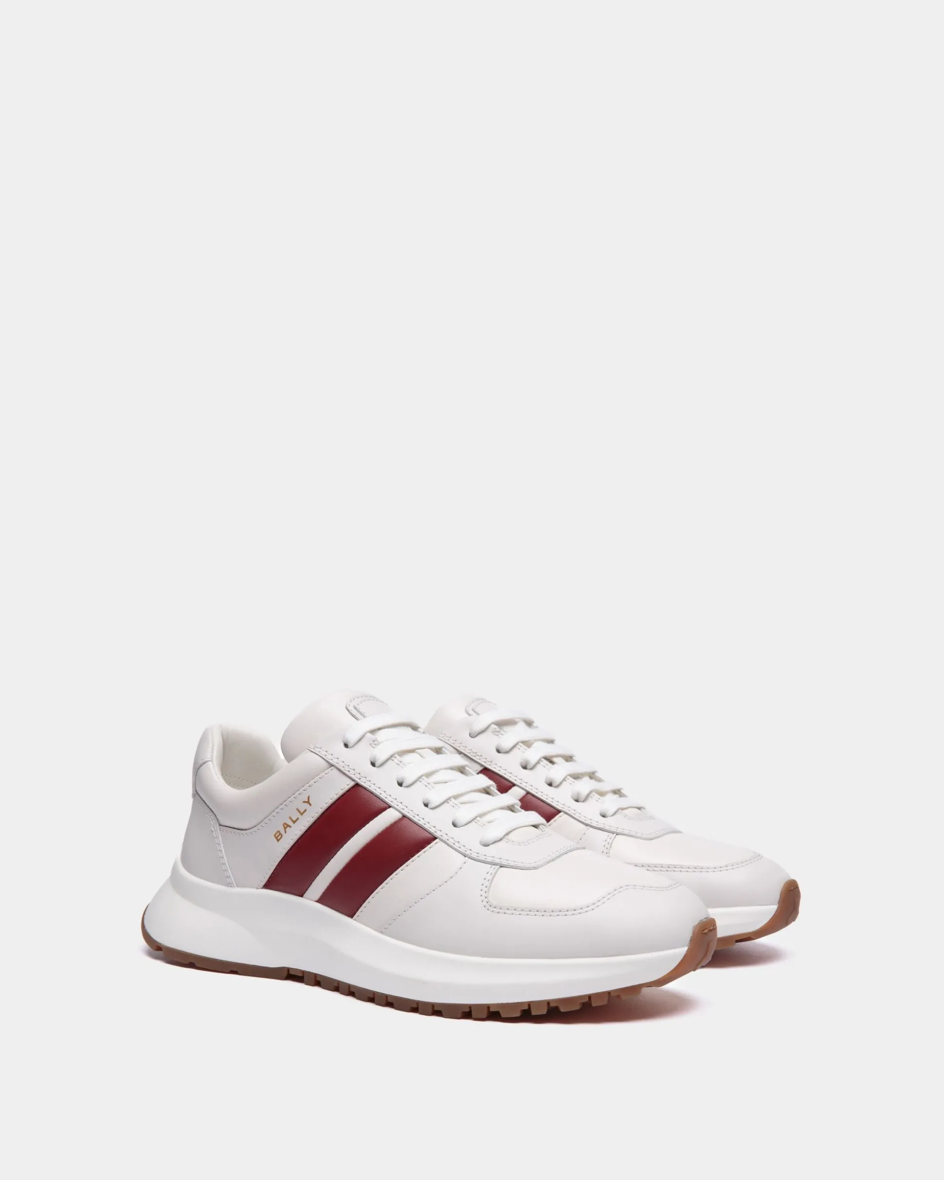 With a clean and modern aesthetic, this Outline sneaker in smooth calfskin sits atop a thick Vibram rubber sole for assured grip on any terrain. A gold-foil Bally logo trims the red and white Bally Ribbon at the sides.
