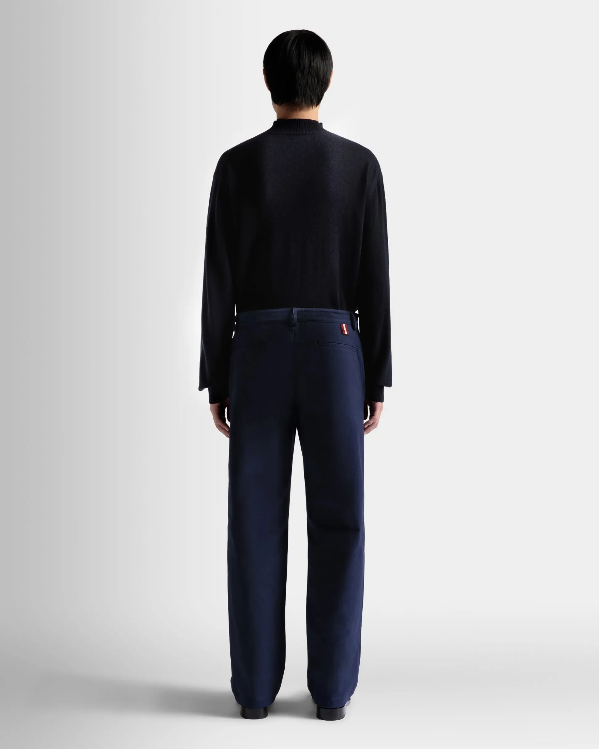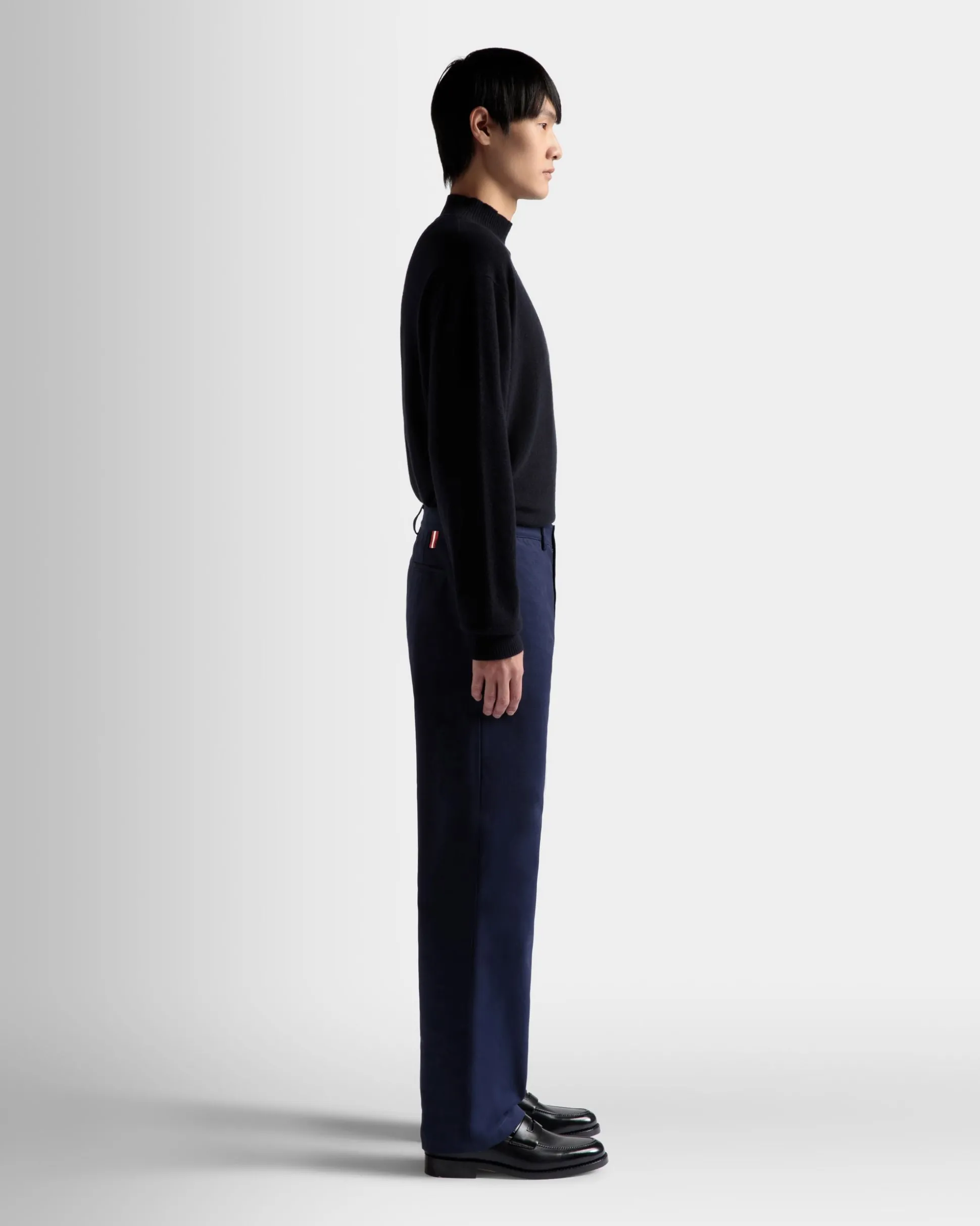 Made from luxurious navy blue cotton, these pants are polished in their aesthetic. The high-quality fabric provides a soft, smooth feel, while the classic design ensures timeless style for any occasion.