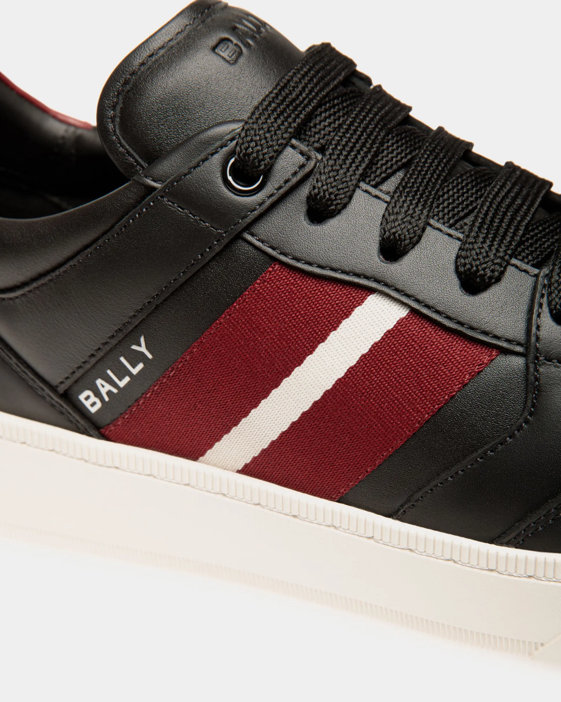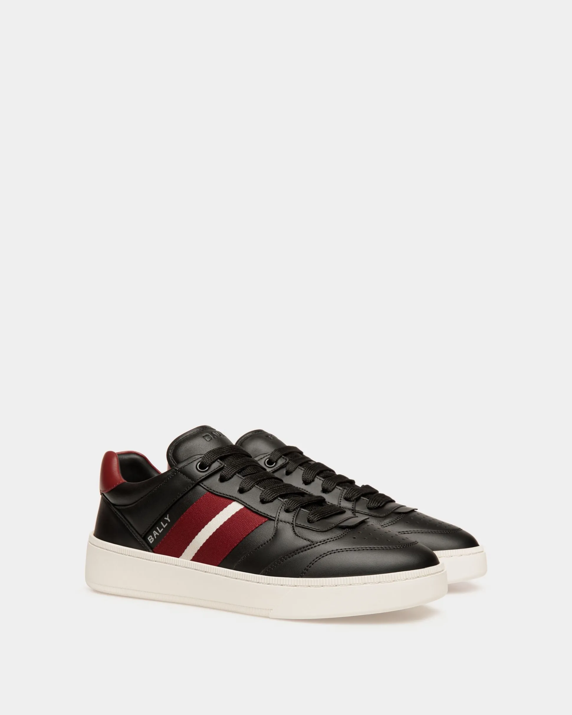 With a sleek design emblazoned by a red and white Bally Ribbon, these black leather sneakers combine style and functionality. The supple calfskin upper offers a luxurious feel, while the rubber sole guarantees optimal grip and flexibility for all-day comfort.