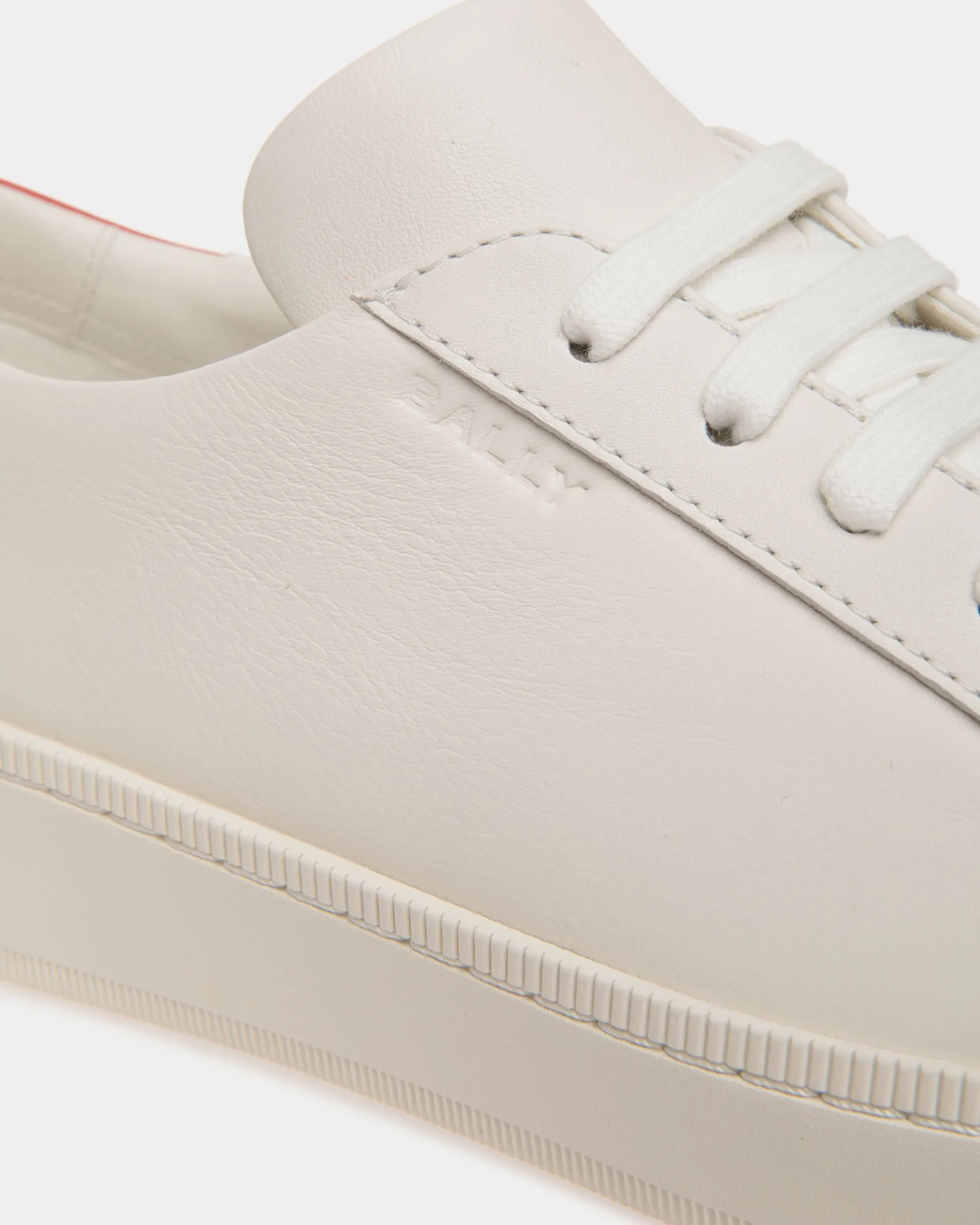 The calfskin upper of this white Raise sneaker is united with a raised rubber sole. The red heel tab adds an iconic pop of color.