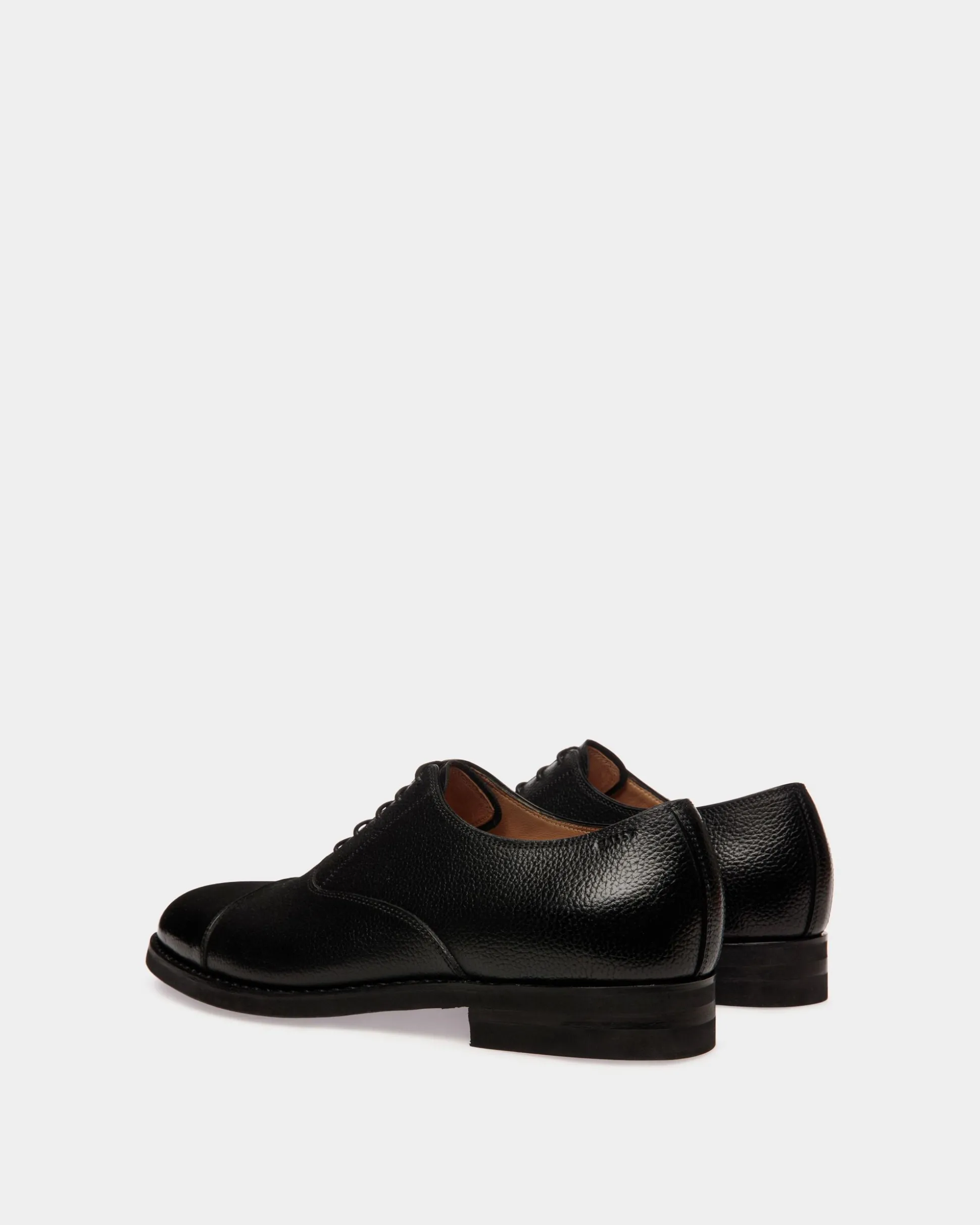The Schoenen Oxford is crafted by Bally artisans in black full-grain calfskin. The upper of this almond cap-toe shoe is united with its sturdy rubber sole thanks to Goodyear construction, a process which ensures longevity thanks to the relative ease of resoling.