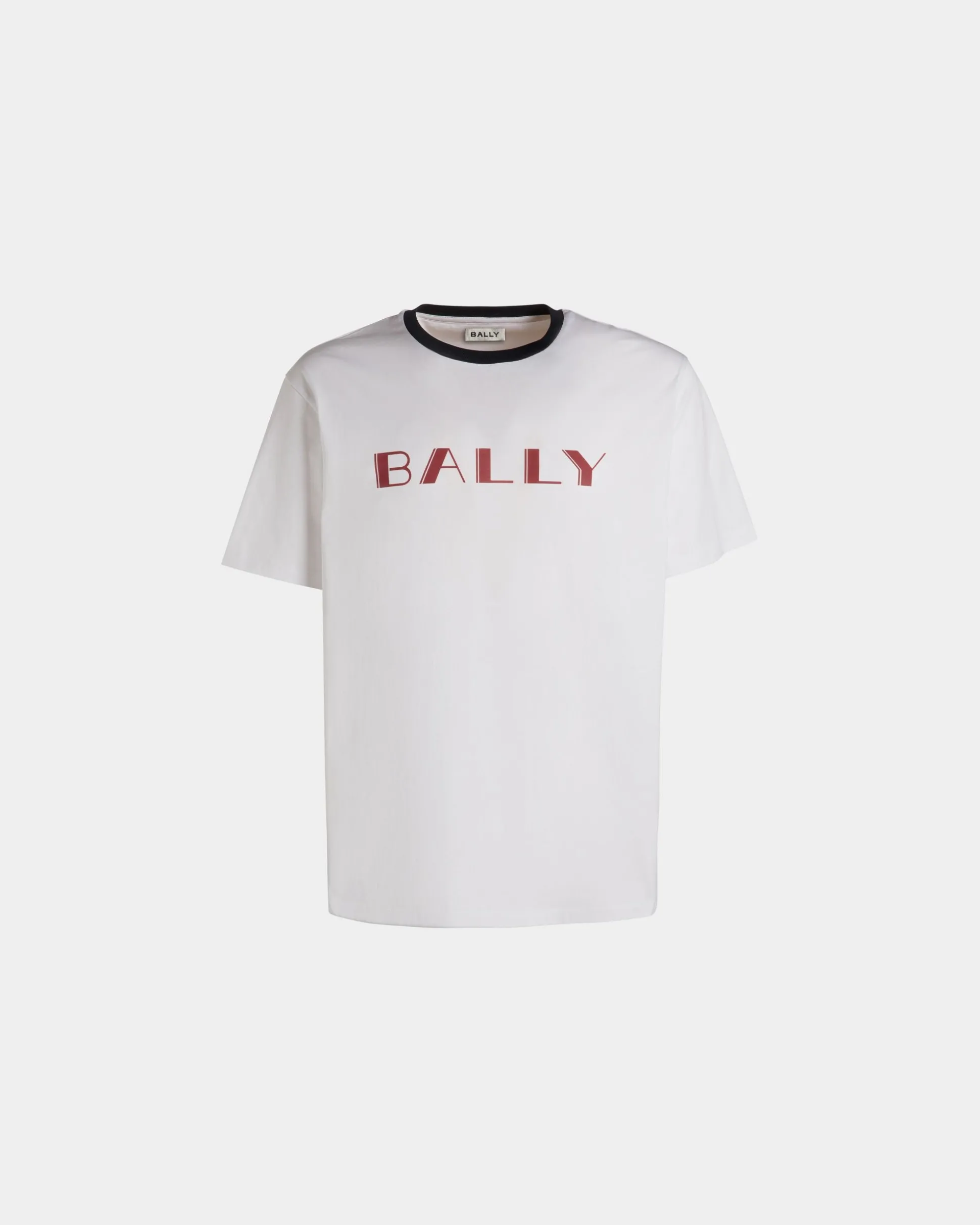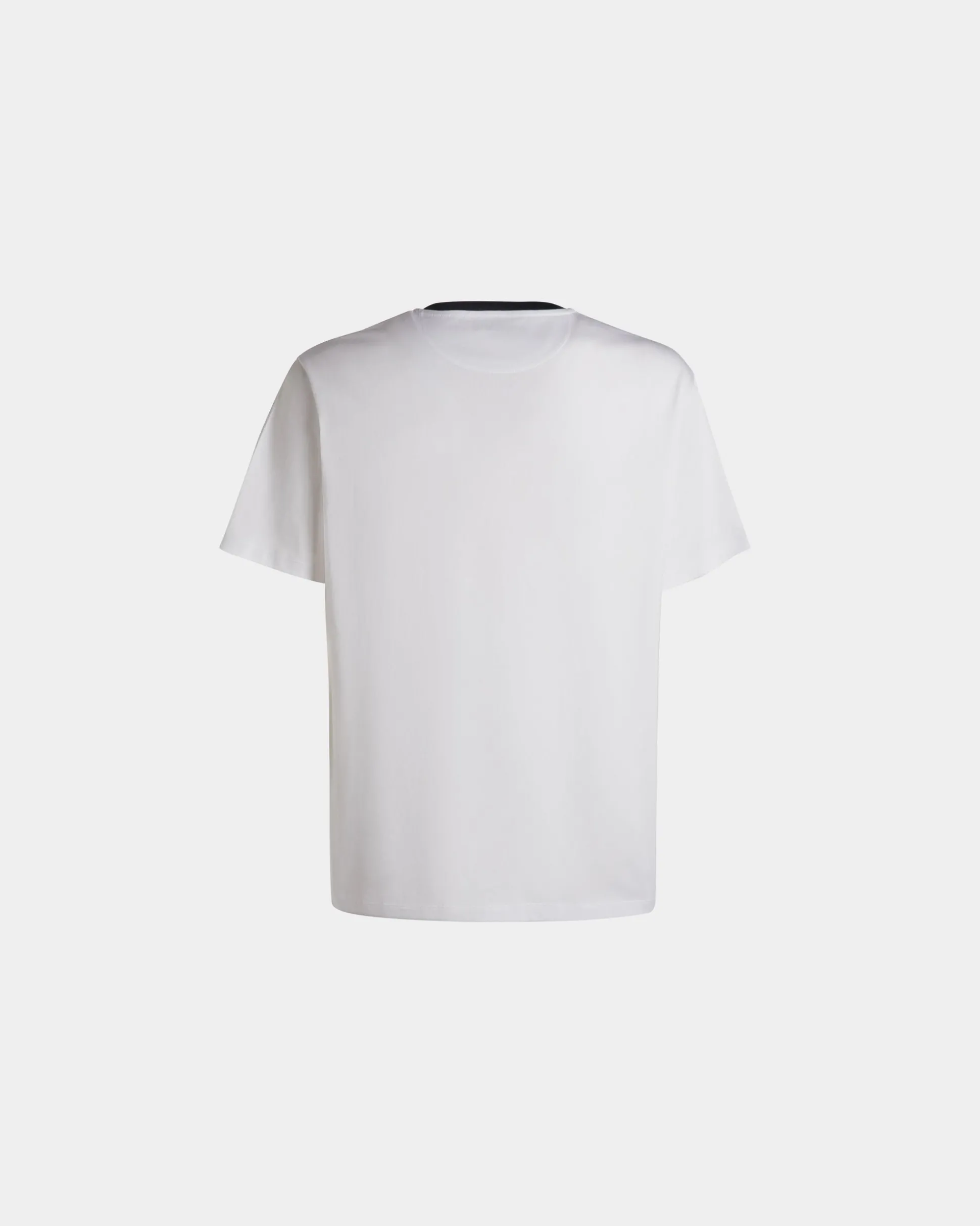 This finely crafted white cotton t-shirt is trimmed by a vintage-inspired Bally logo at the front. The ribbed crewneck collar in a contrast hue adds a sporty touch.