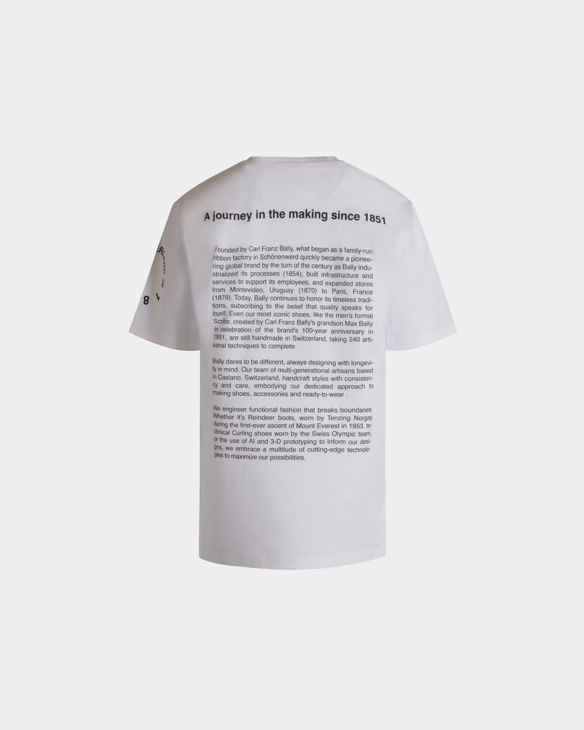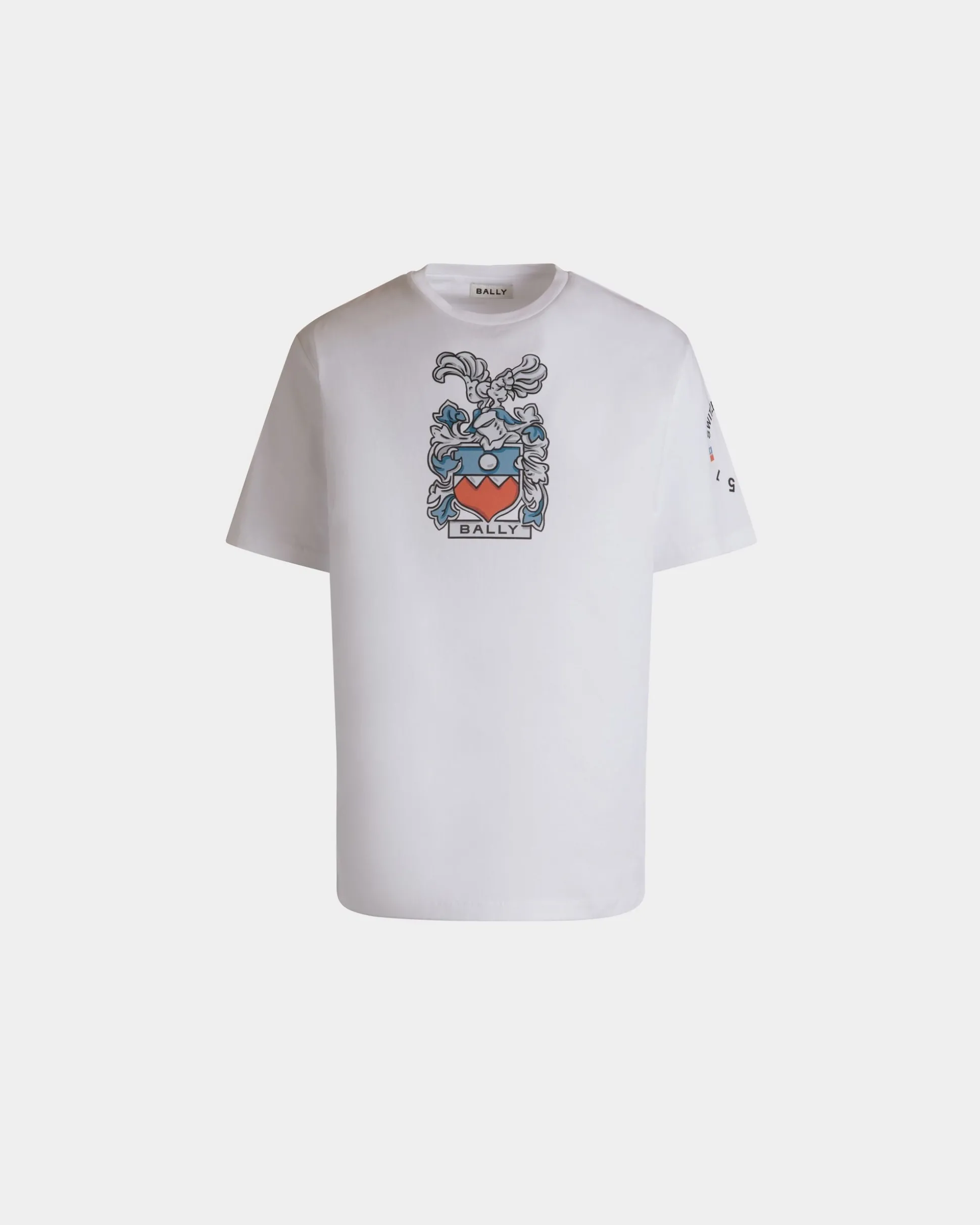 This short-sleeve t-shirt in white cotton is imbued with Bally heritage, from the family Crest to the mission and history of brand, found in 1851.