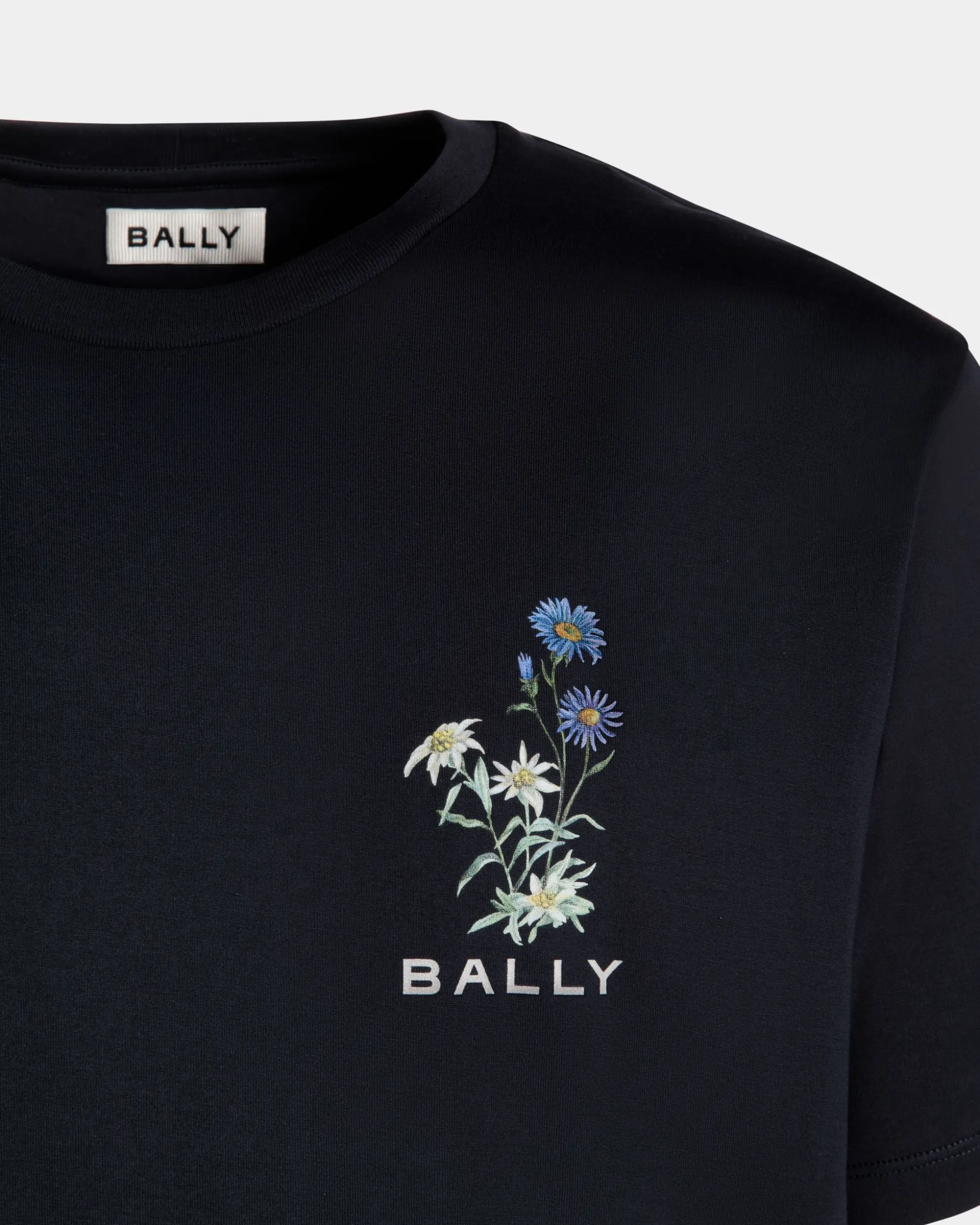 This navy blue t-shirt brings the spirit of the Swiss Alps to a classic garment thanks to the Mountain Flower print on the chest.