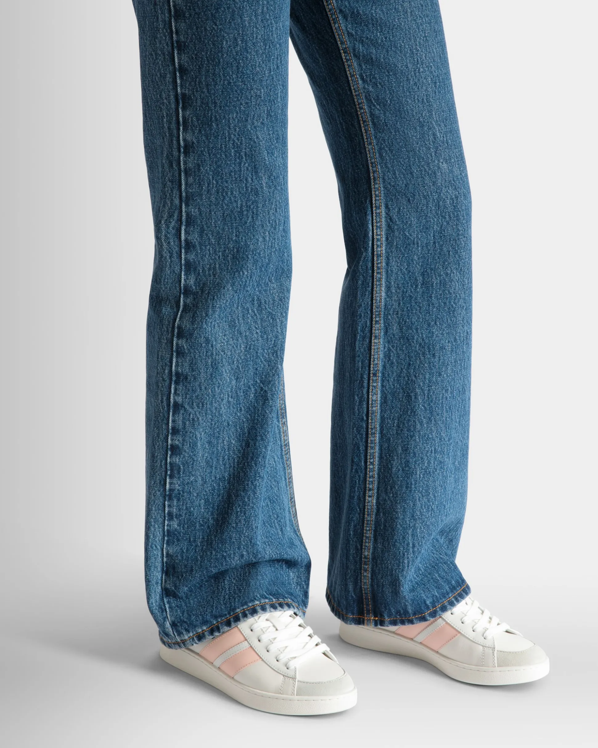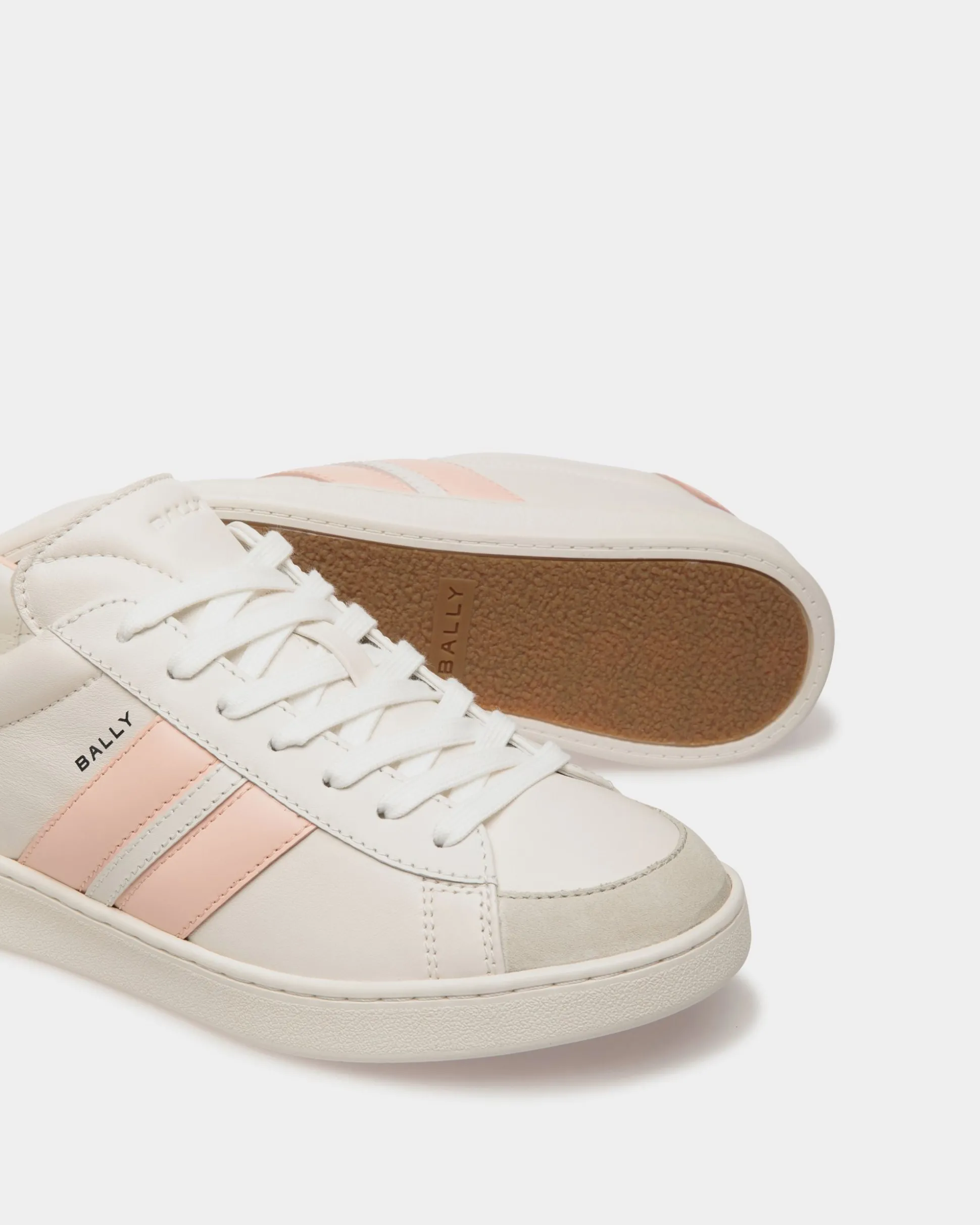 In crisp white and Baby Pink leather, the Tennis sneaker is trimmed by an essential Bally Ribbon. A reinforcement on the toe adds to its durability. The rubber sole is comfortable while providing grip.