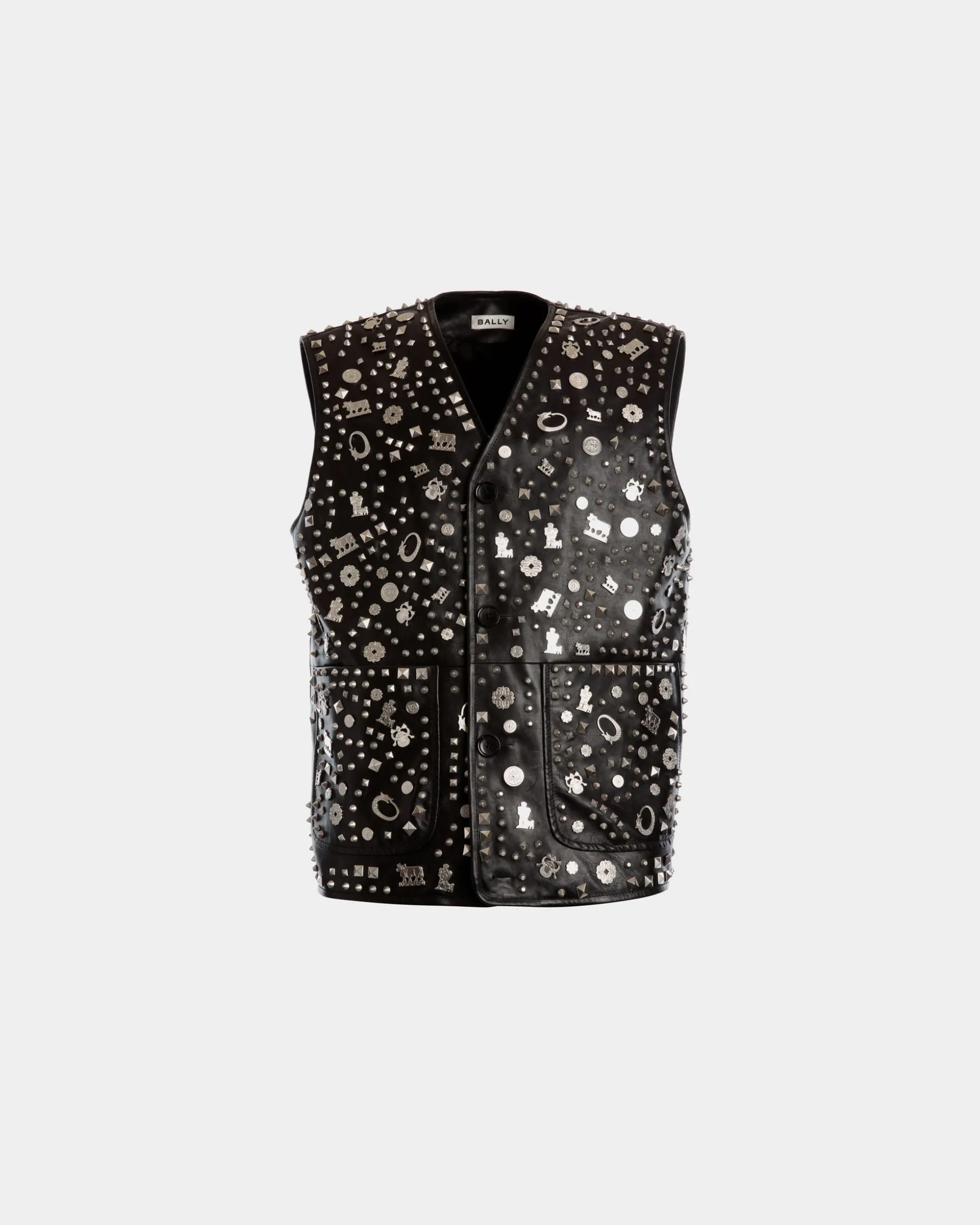 This black calf leather vest is adorned with classic studs and silver-tone details that express Bally Swissness.