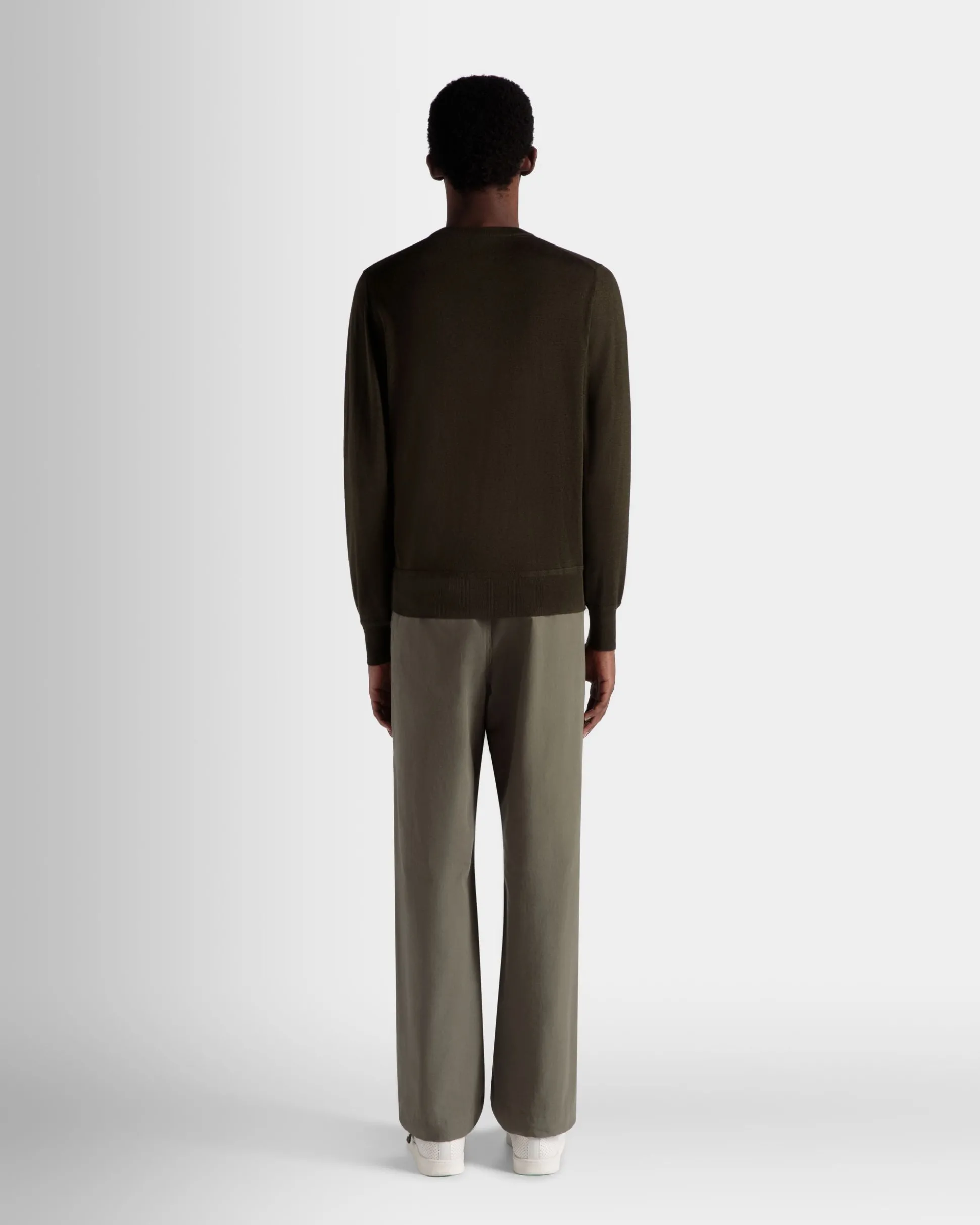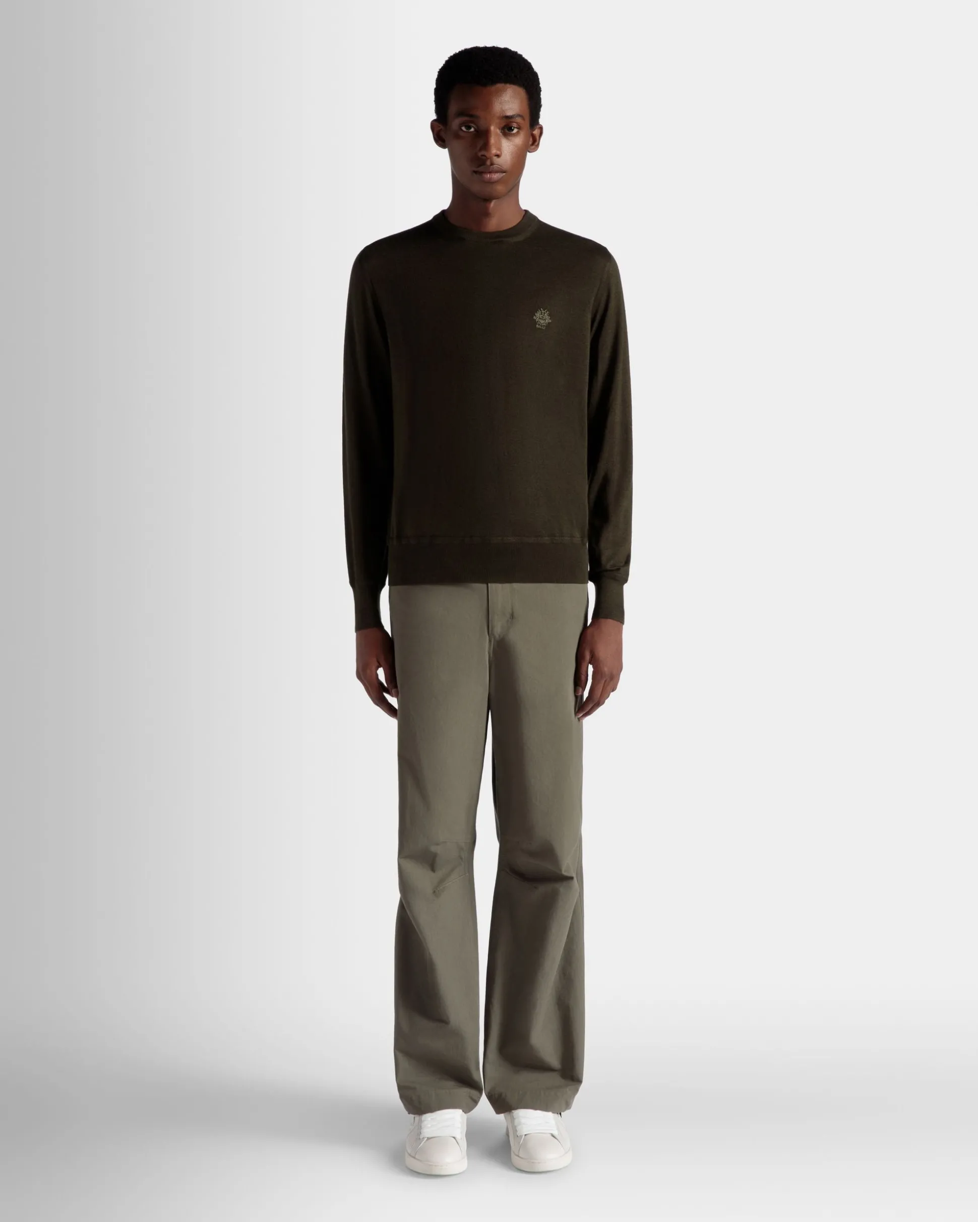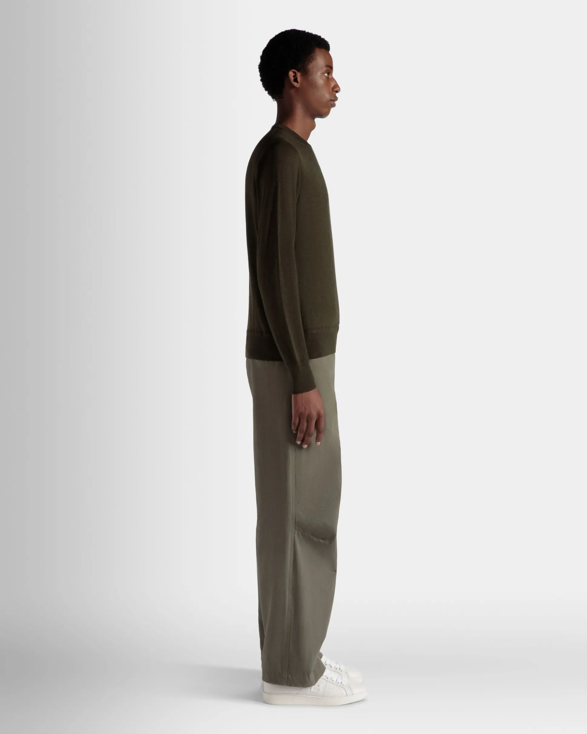 Adrien Brody Travel Collection Crewneck Sweater In Military Green Cashmere