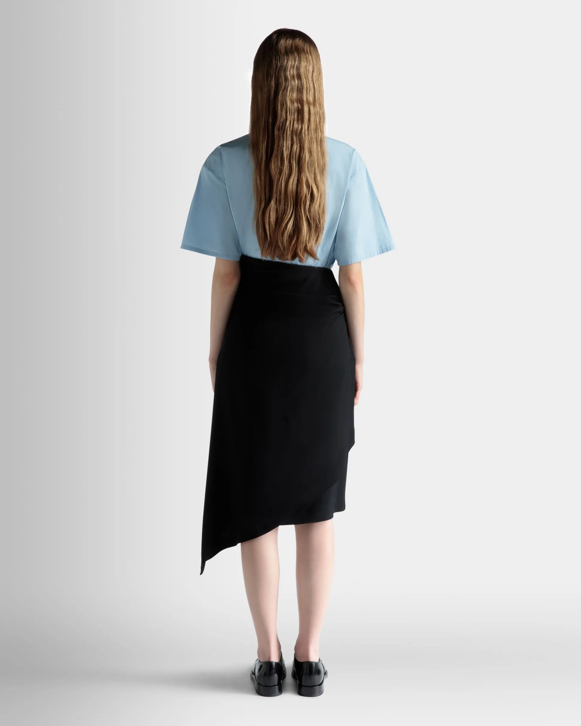 Asymmetric Midi Skirt in Black Fluid Crepe