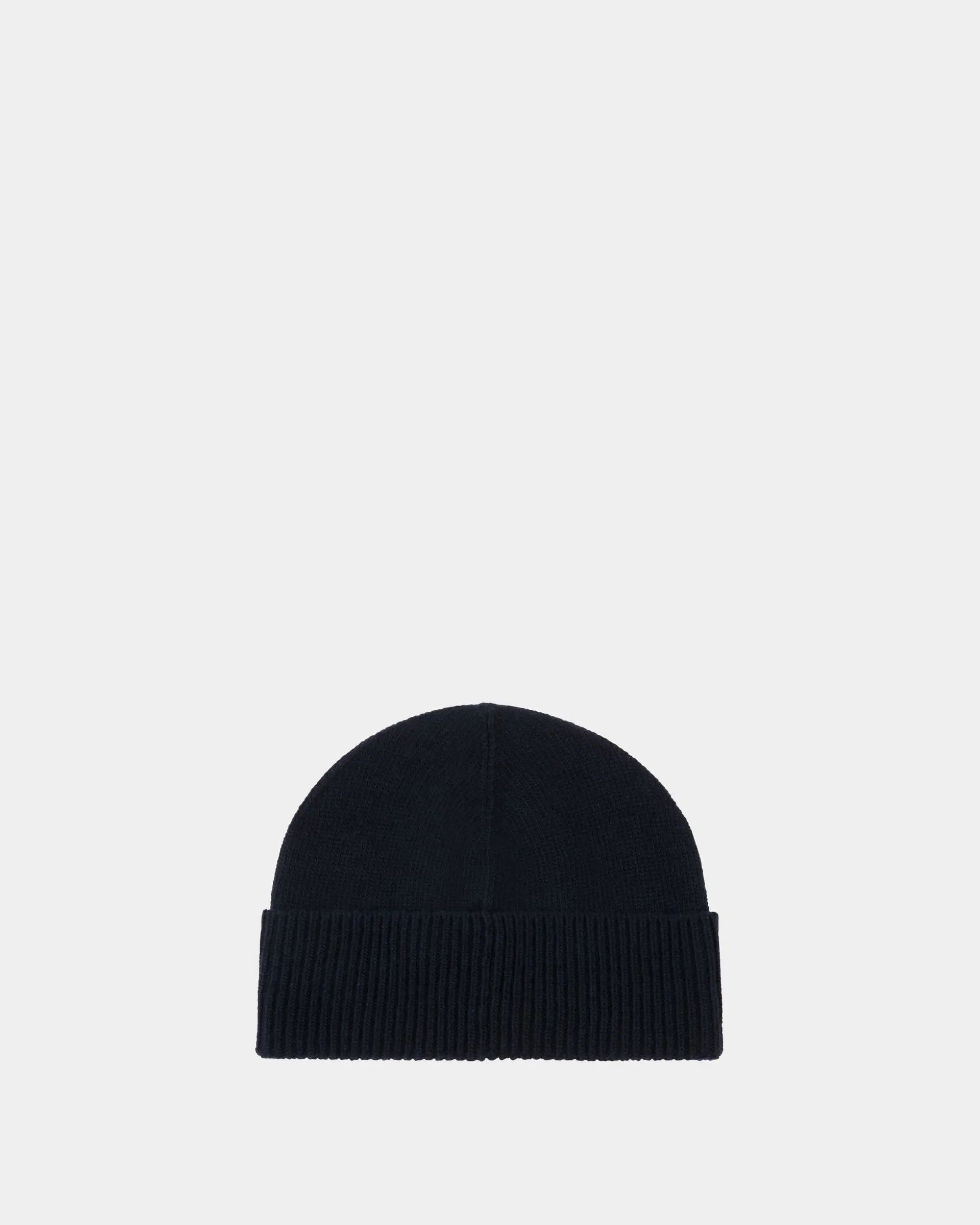 In navy blue, this soft wool beanie is embellished by Bally cursive lettering in white on the front of the ribbed cuff.