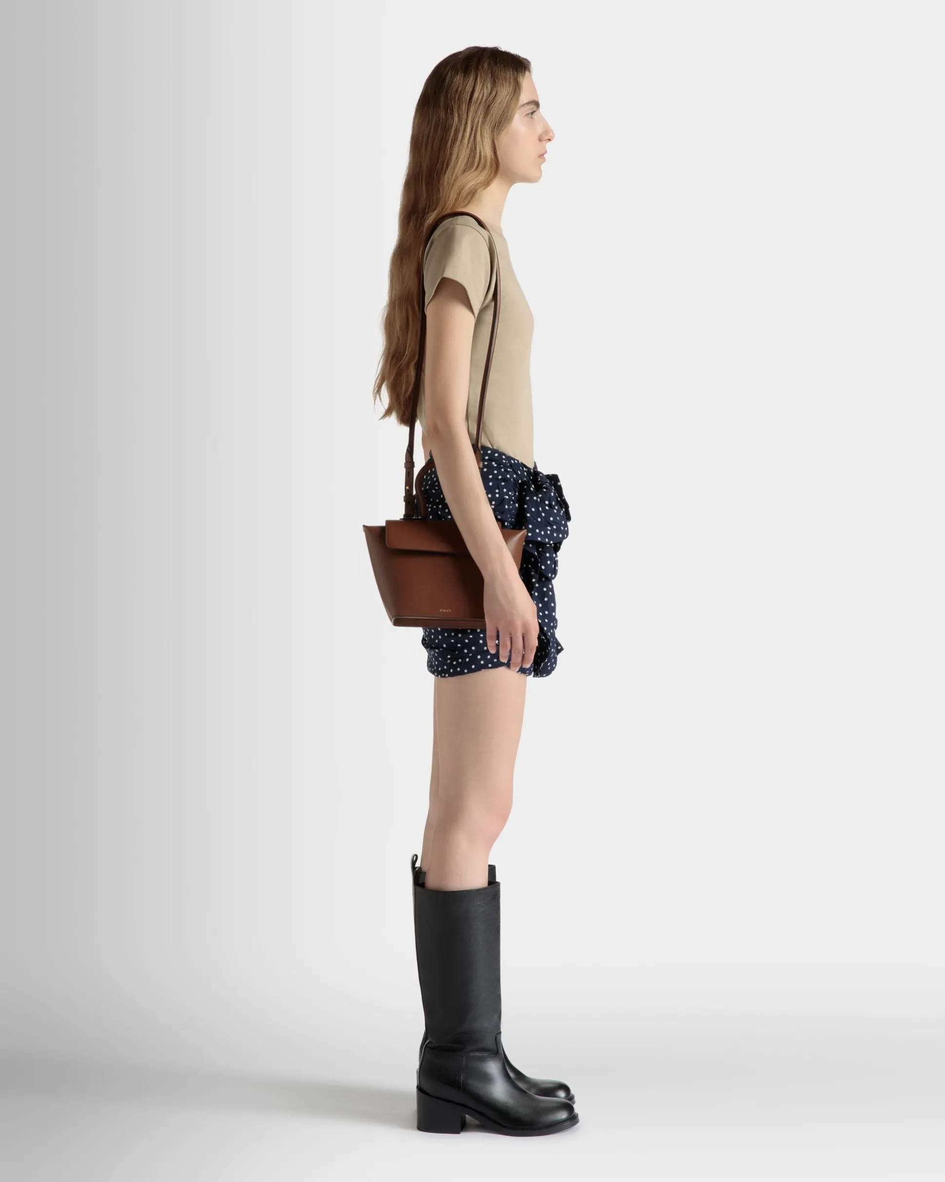 An instant icon from the Bally SS24 fashion show, with a sleek yet playful silhouette inspired by the cowbells that echo in the Swiss Alps, the Belle bag perfectly blends fine craftsmanship and unique design. Here in candy red calfskin, the main compartment is closed by a magnetic flap, and is completed by an accessory pocket for optimal organization. To the top, a handle and detachable crossbody strap ensure versatile carrying options.