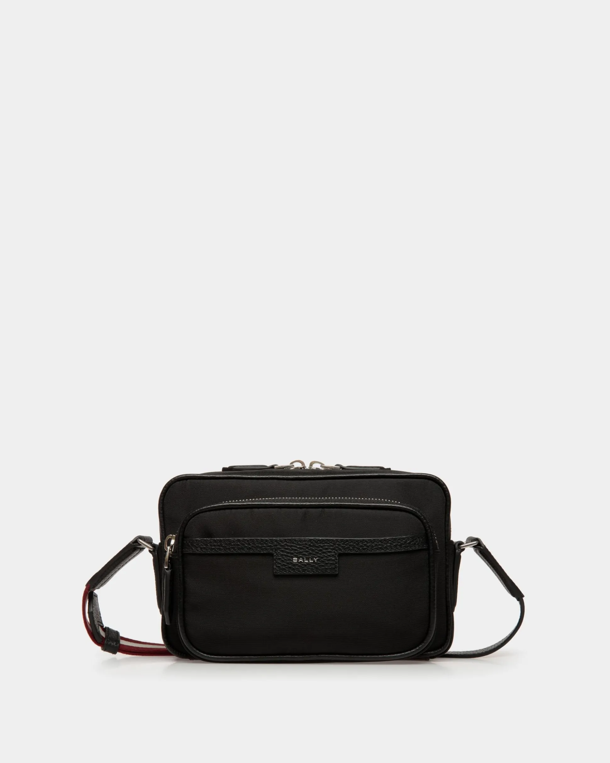 Crafted in black nylon fabric, the Code crossbody bag is a sleek and versatile accessory, elevated by an adjustable Bally Ribbon shoulder strap. With its spacious interior and convenient outer pocket, both secured by zippers, it effortlessly unites style and functionality for the modern man.