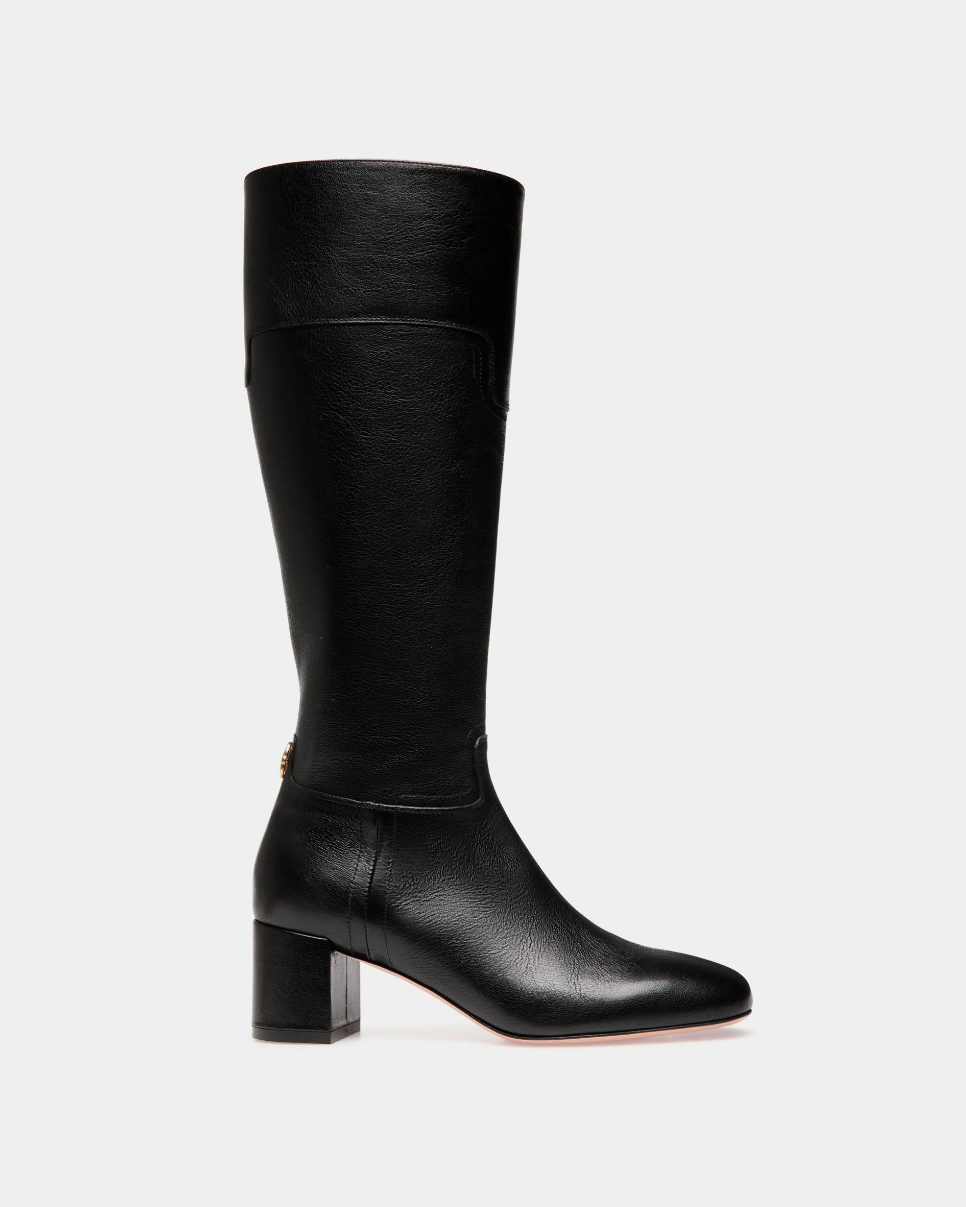 Sophisticated and elegant, the Daily Emblem tall boot is crafted with precision in black kidskin with a fine grain. At the back, a Bally emblem in gold-tone metal adds distinction, a symbol of the brand’s savoir-faire and heritage.
