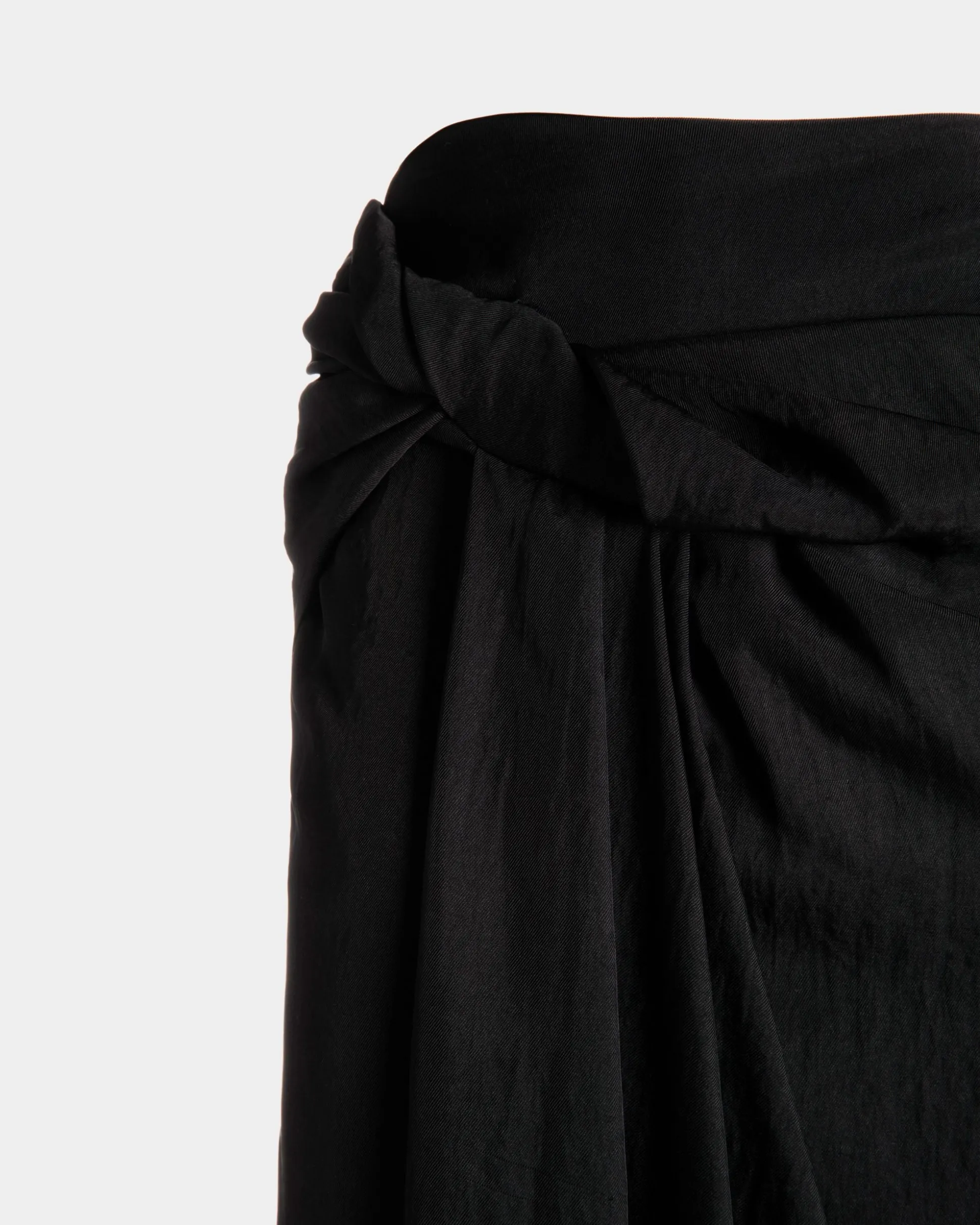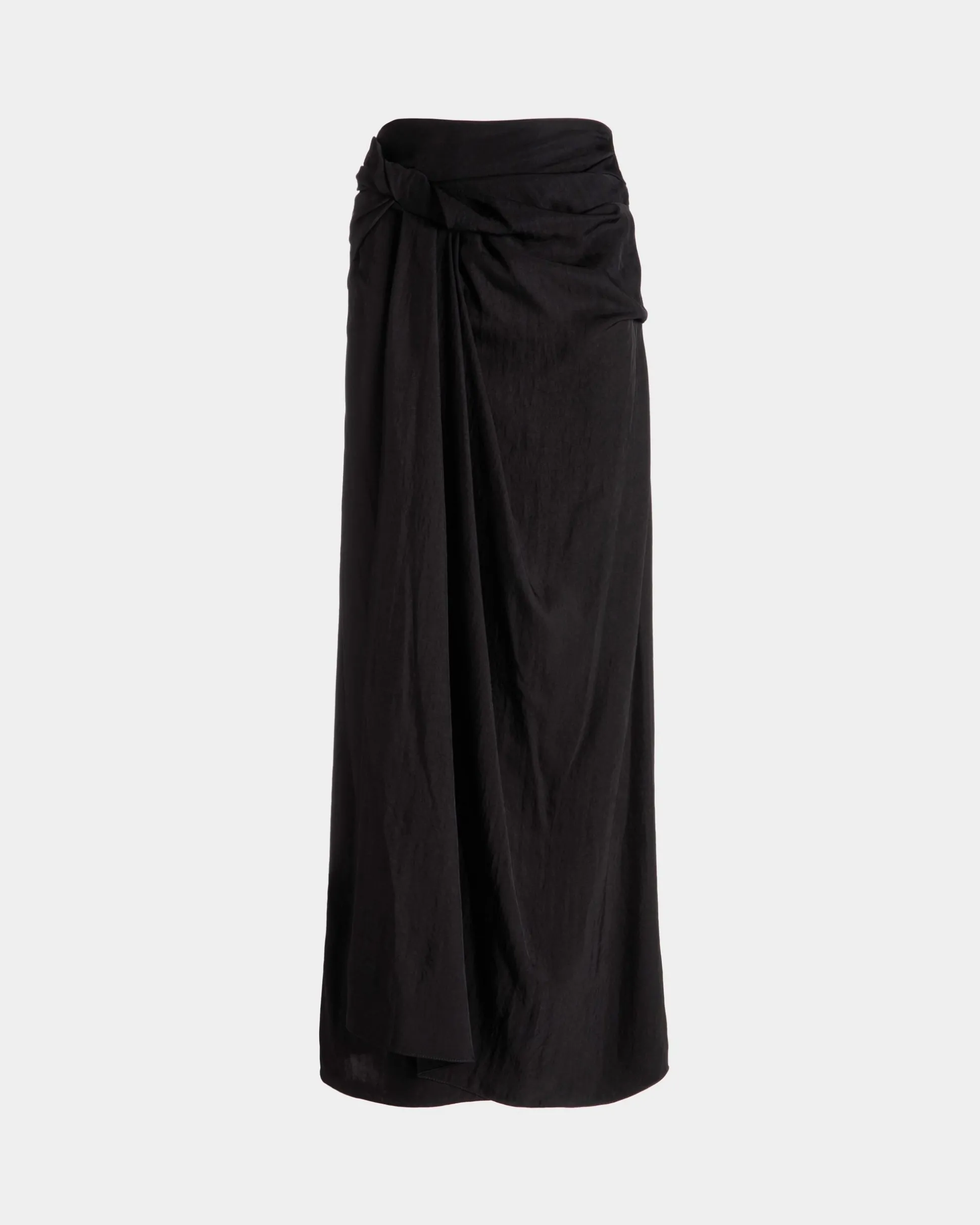 Soft and flowing, this long skirt in black viscose fabric has a lustrous finish. A wrap detail at the side accentuates its draped design.