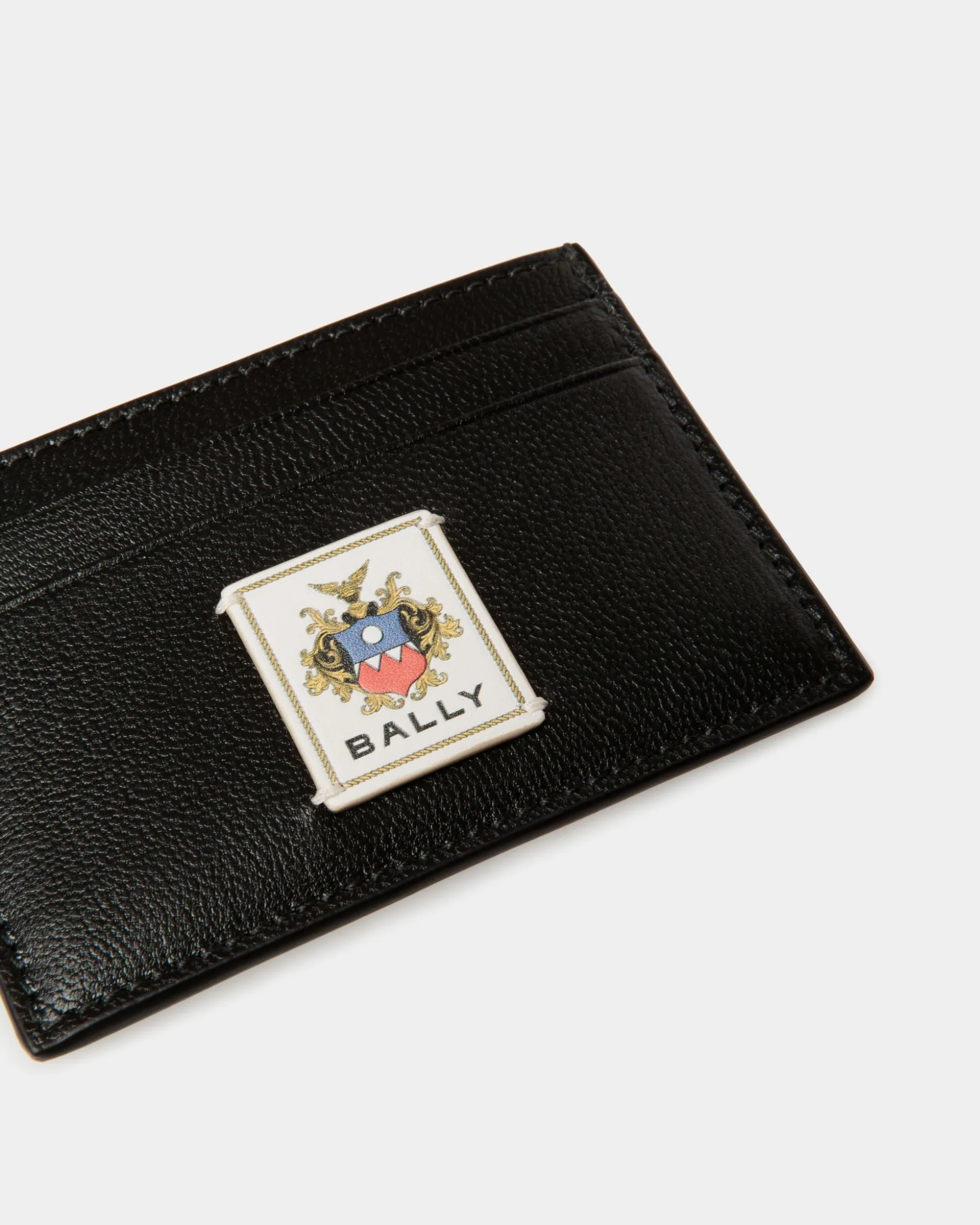 This Easy Bally card holder is crafted from black goat leather with a grained finish. A Bally Crest label embellishes the front.