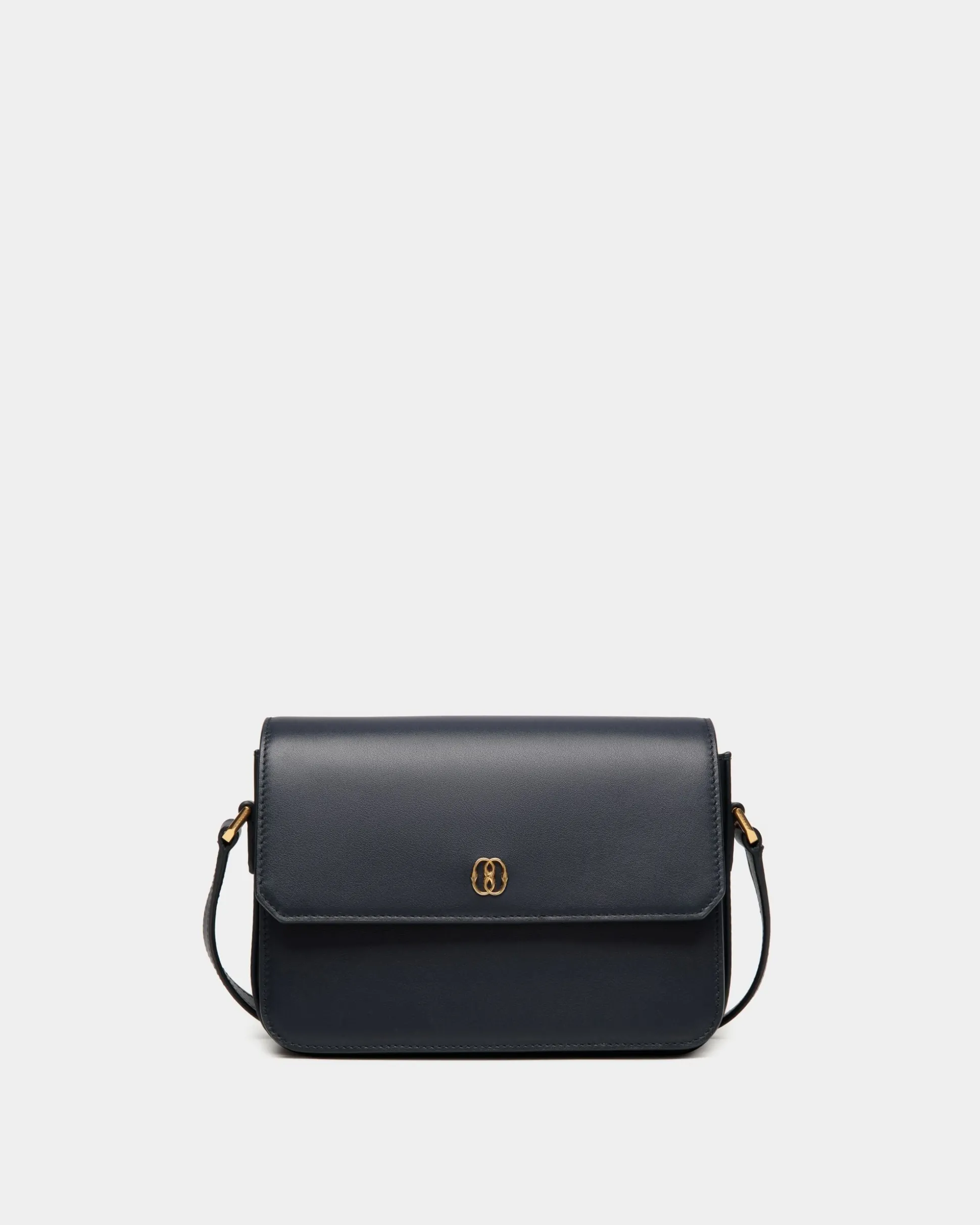 Chic and contemporary, the Emblem small crossbody bag in navy blue leather has been meticulously crafted into an essential, versatile silhouette. A gold-tone Bally Emblem brings a delicate signifier to the top flap, which closes the main and secondary compartments.