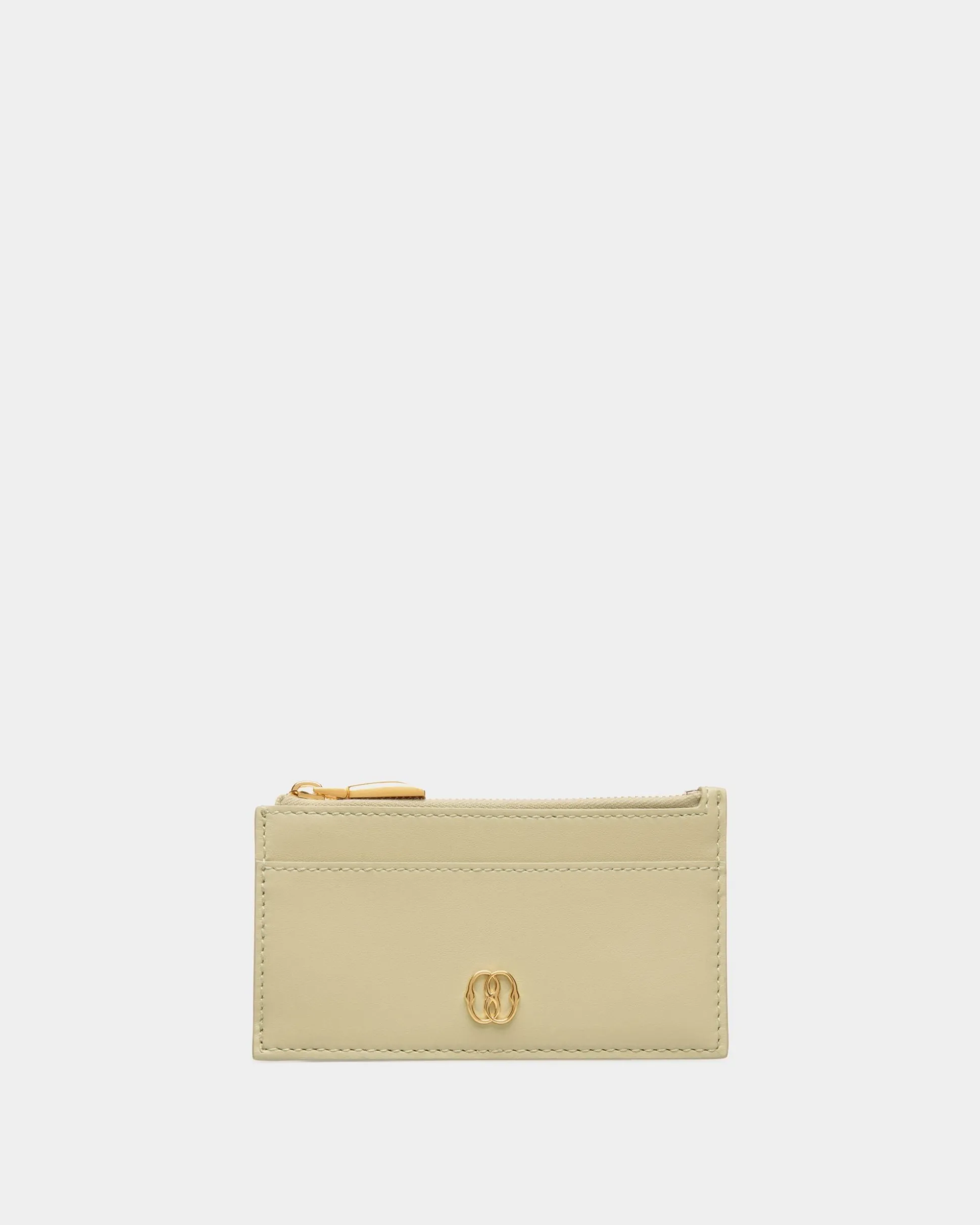 Emblem Zipped Card Holder In Light Green Leather