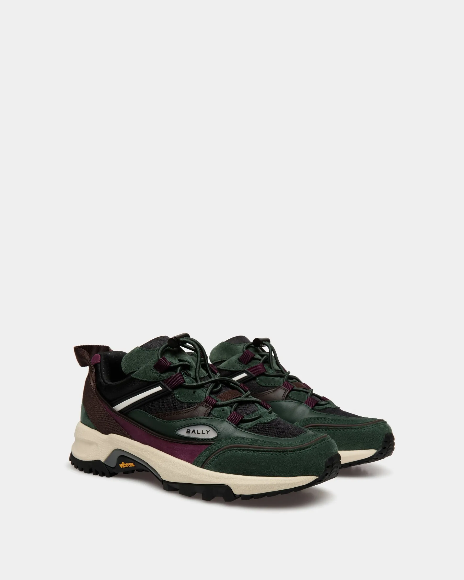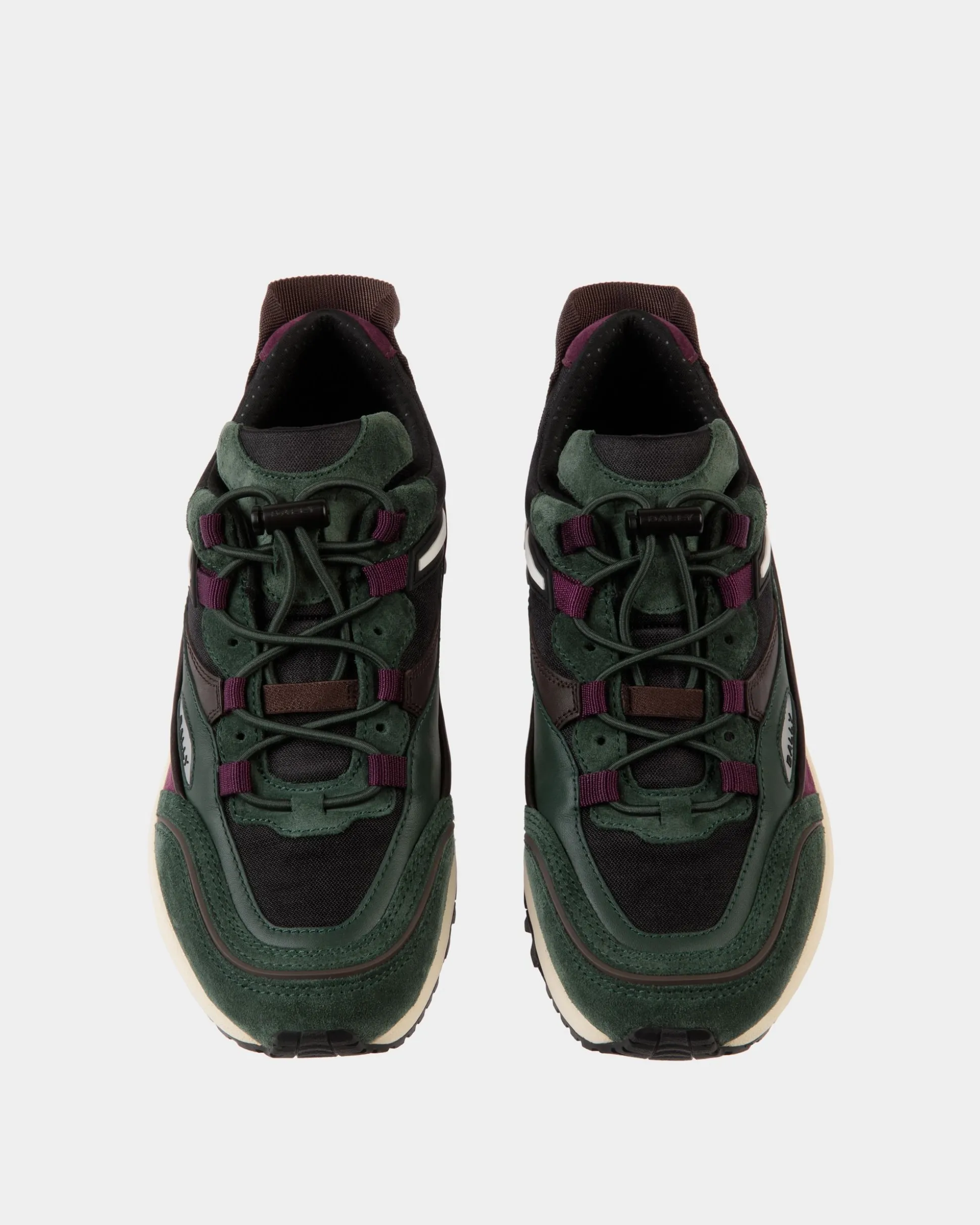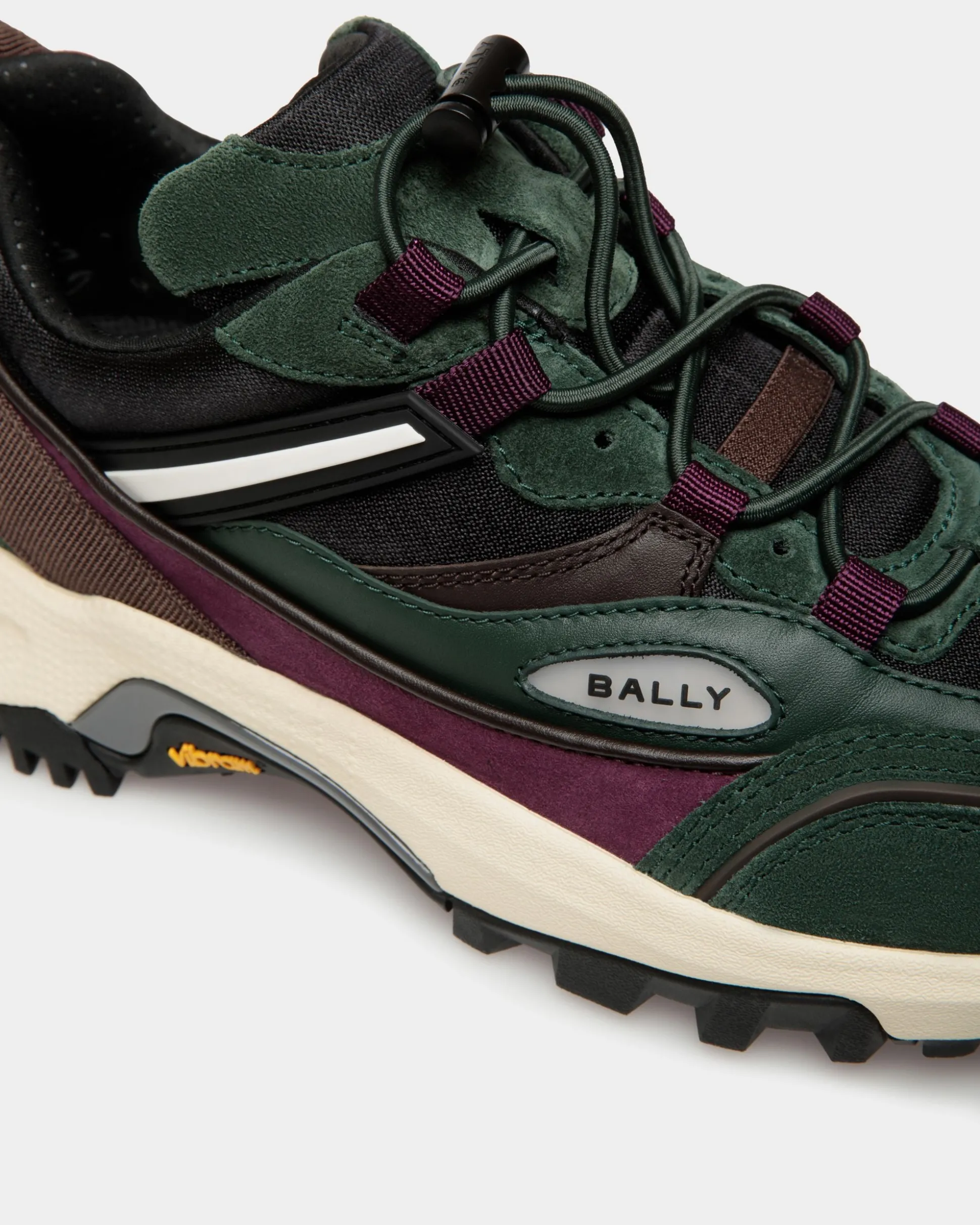 Designed with a thick running sole, the Faster sneaker is made of nylon fabric with suede trim in gem tones, trimmed by a sleek Bally Ribbon at the sides. The elasticated laces are secured by a drawstring and stopper for fast lacing.