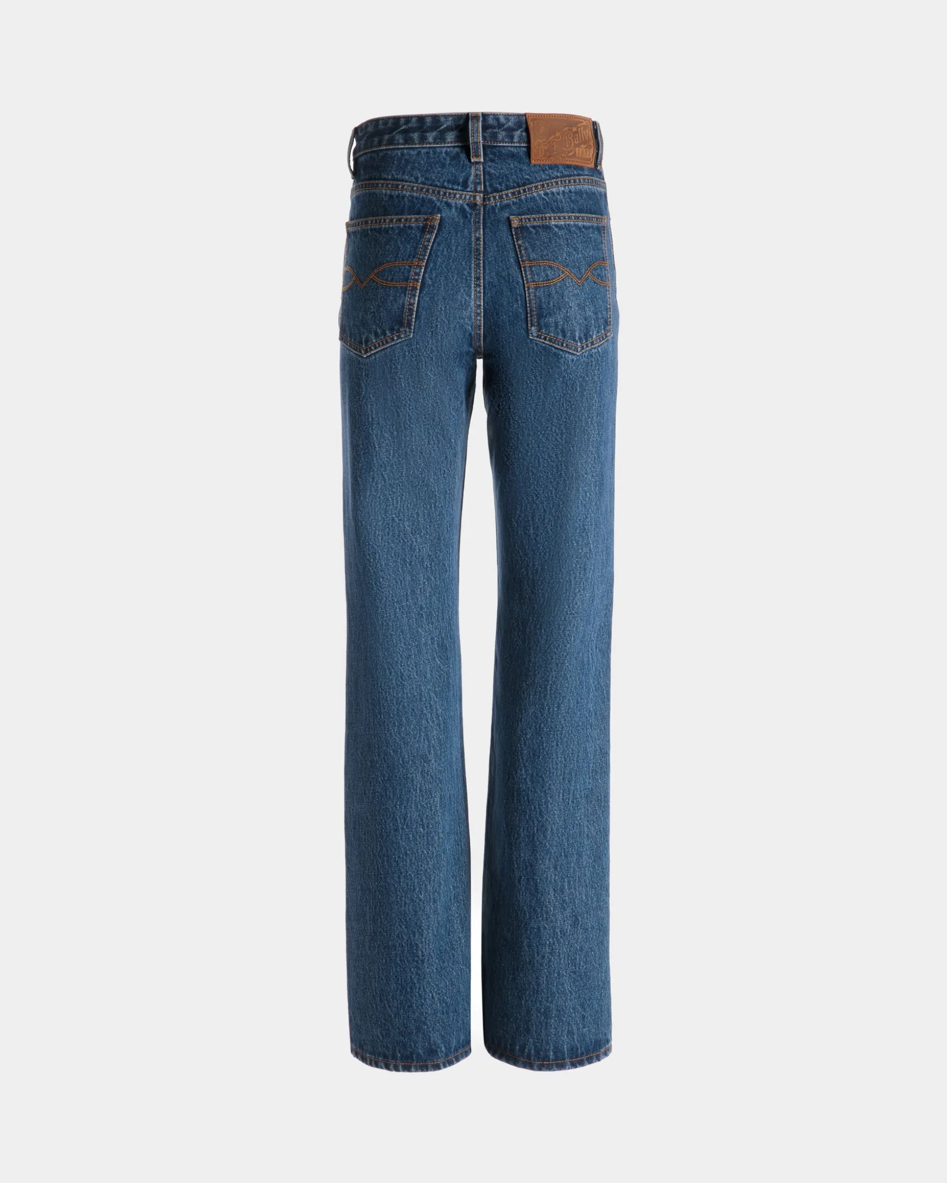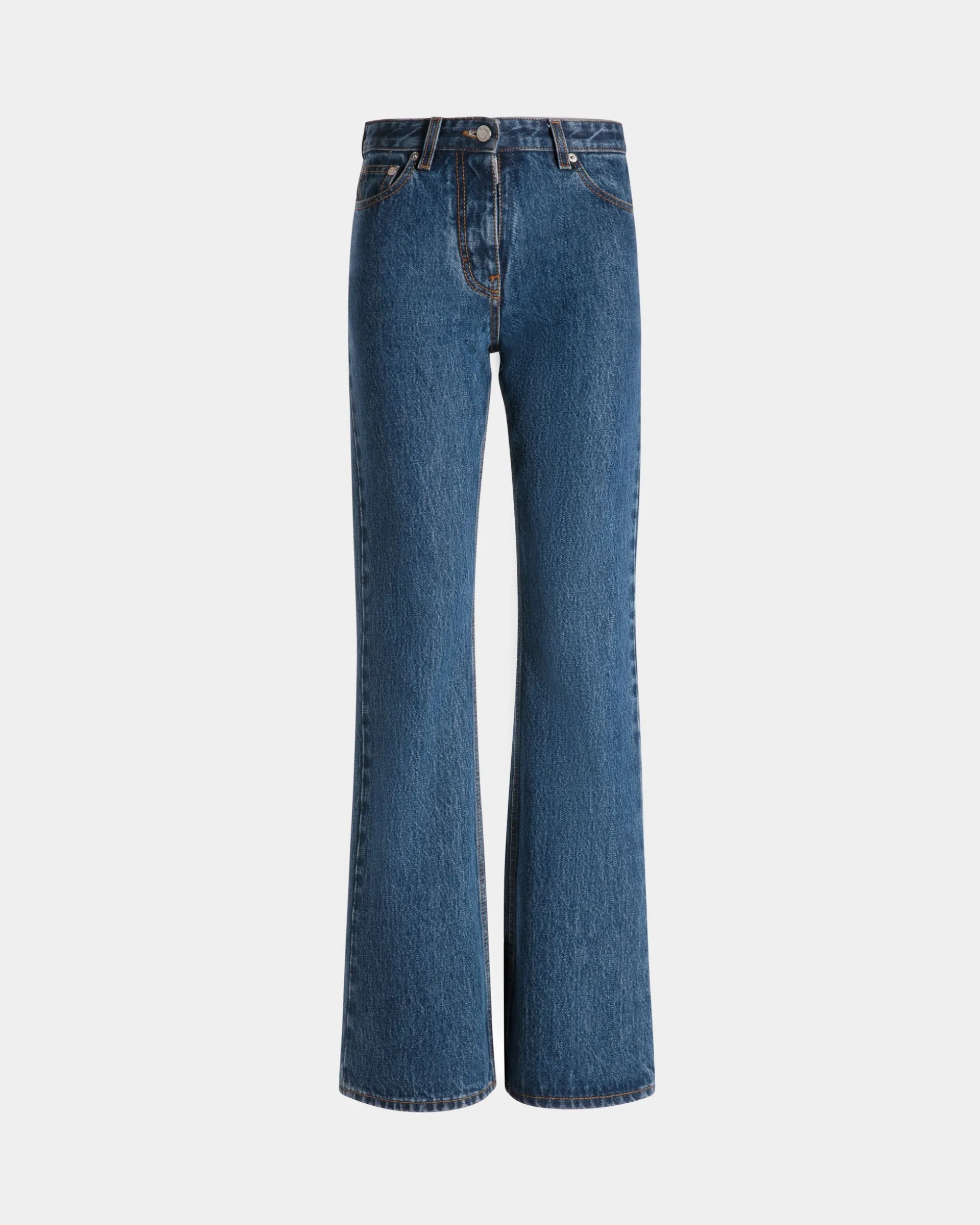 In cotton denim, these flared jeans come in medium blue. The retro-inspired silhouette adds a touch of vintage charm. A Bally tab in leather references the year the brand was founded: 1851.