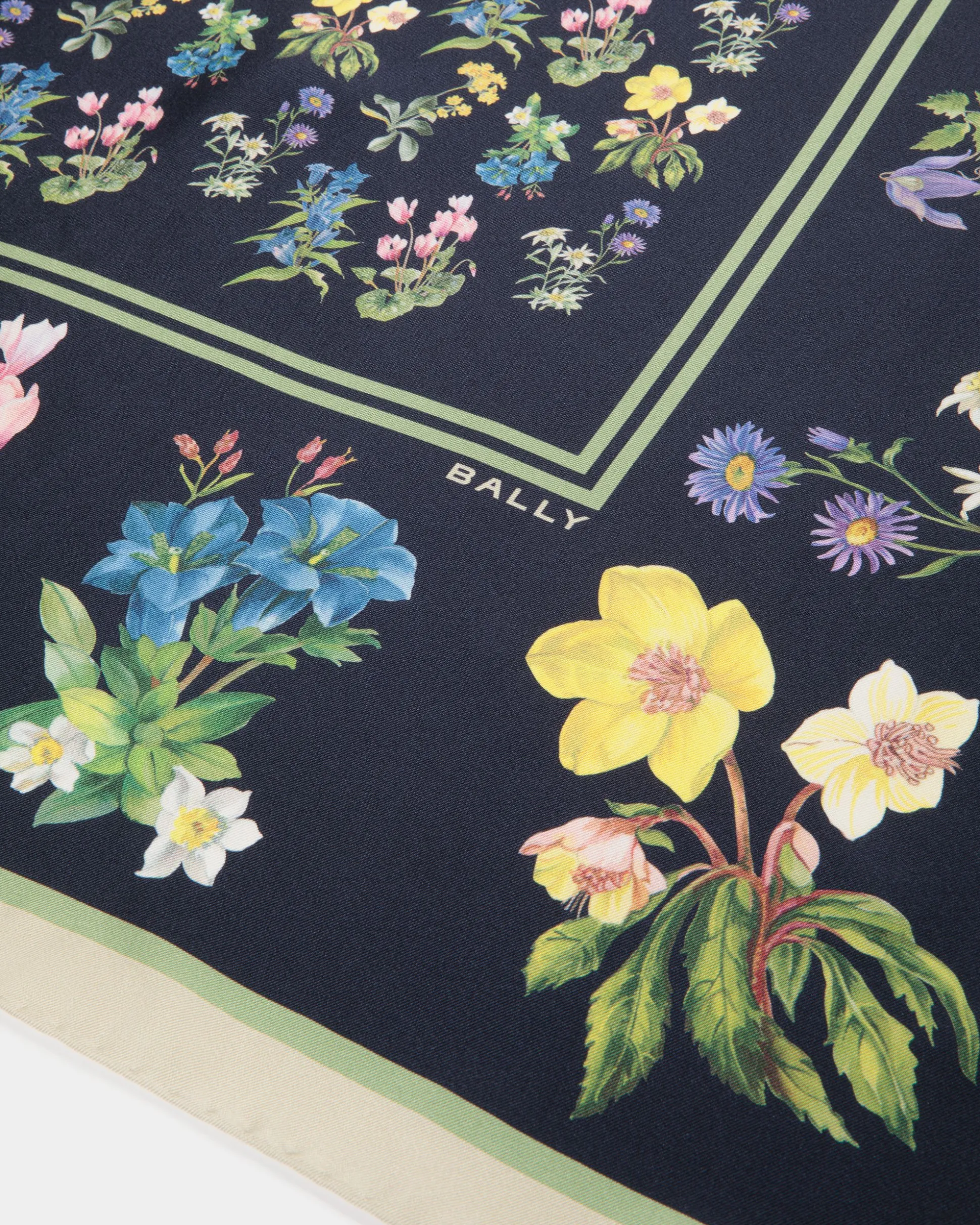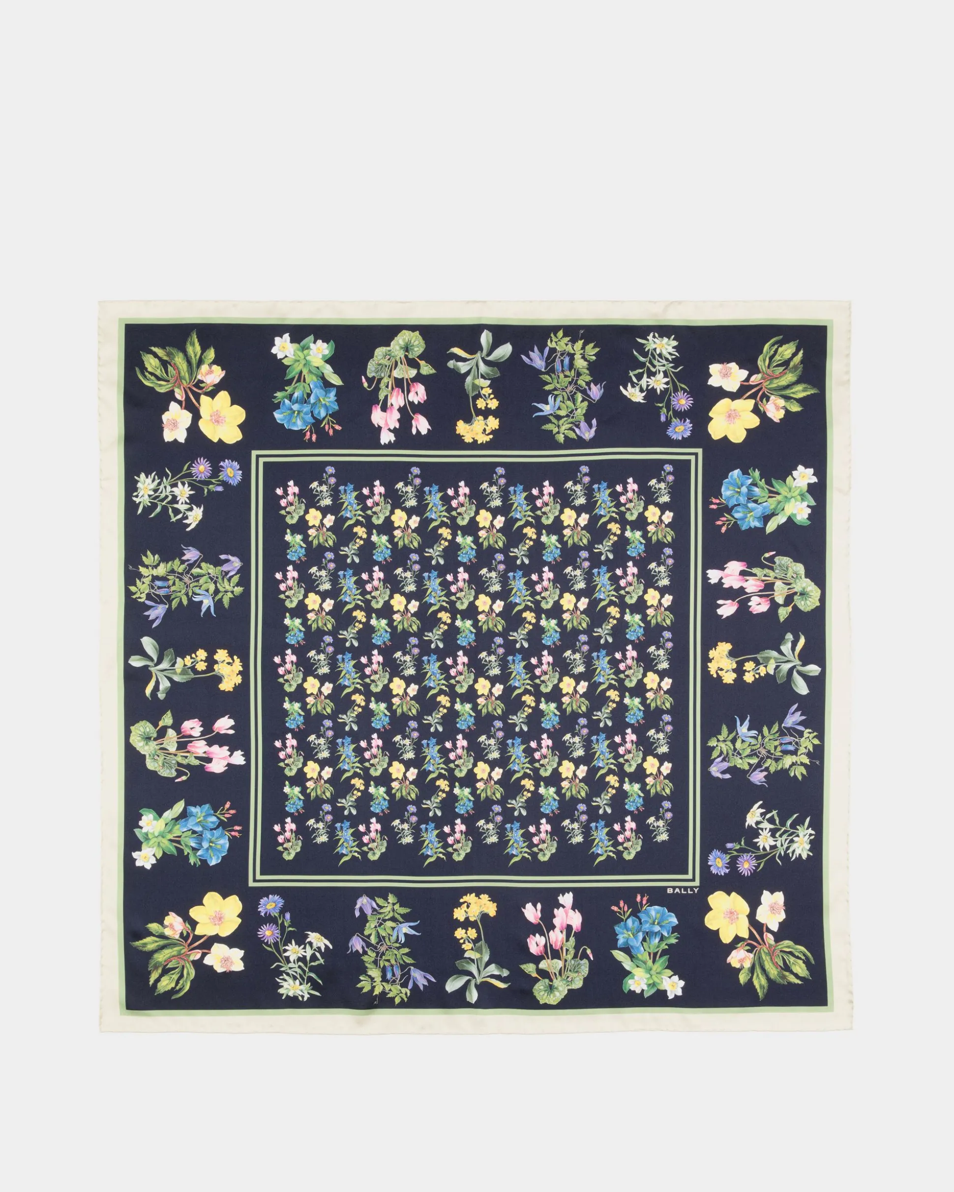 Inspired by a vintage book of Swiss blooms, the Mountain Flower print brings the beauty of Alpine landscapes to this silk scarf.