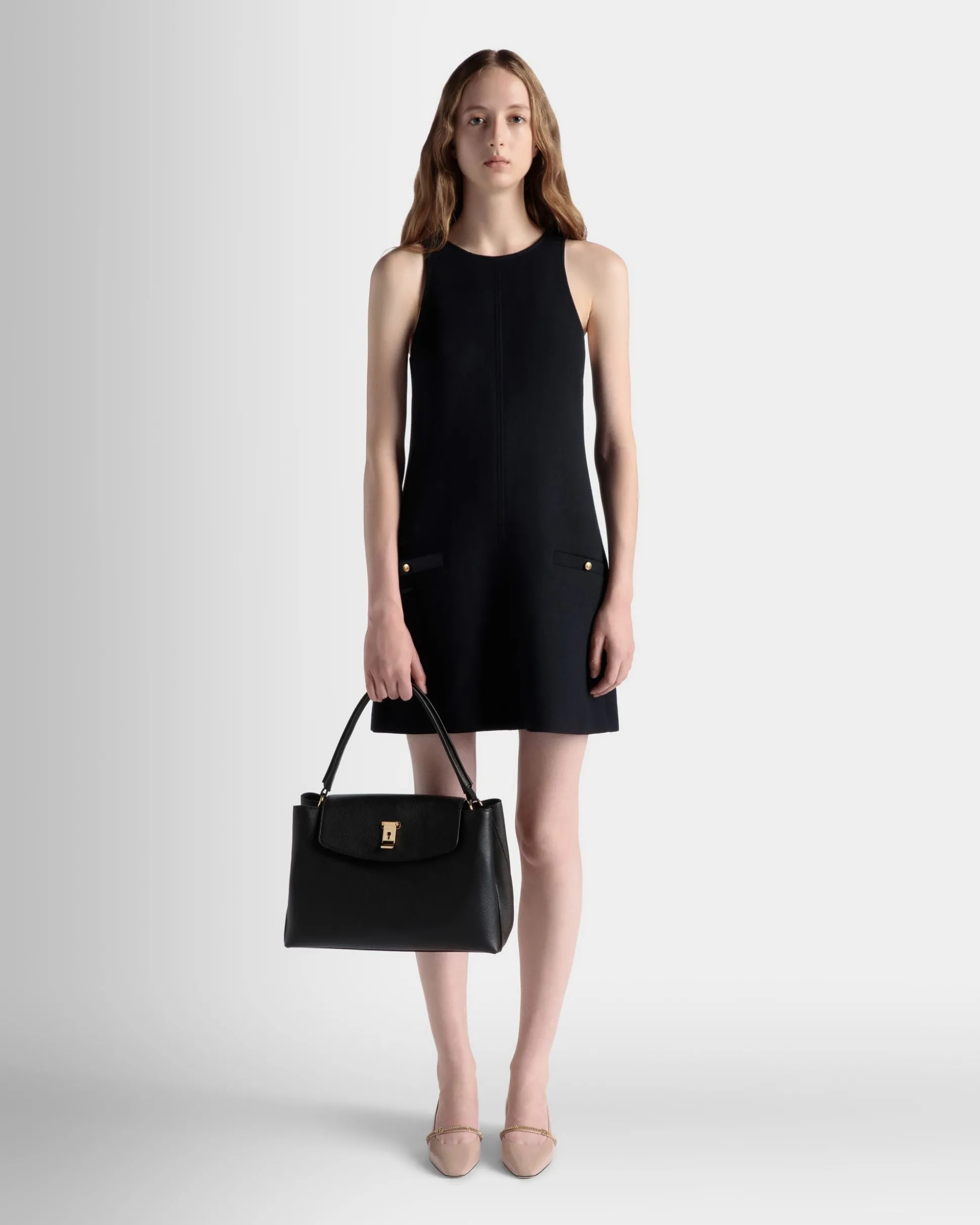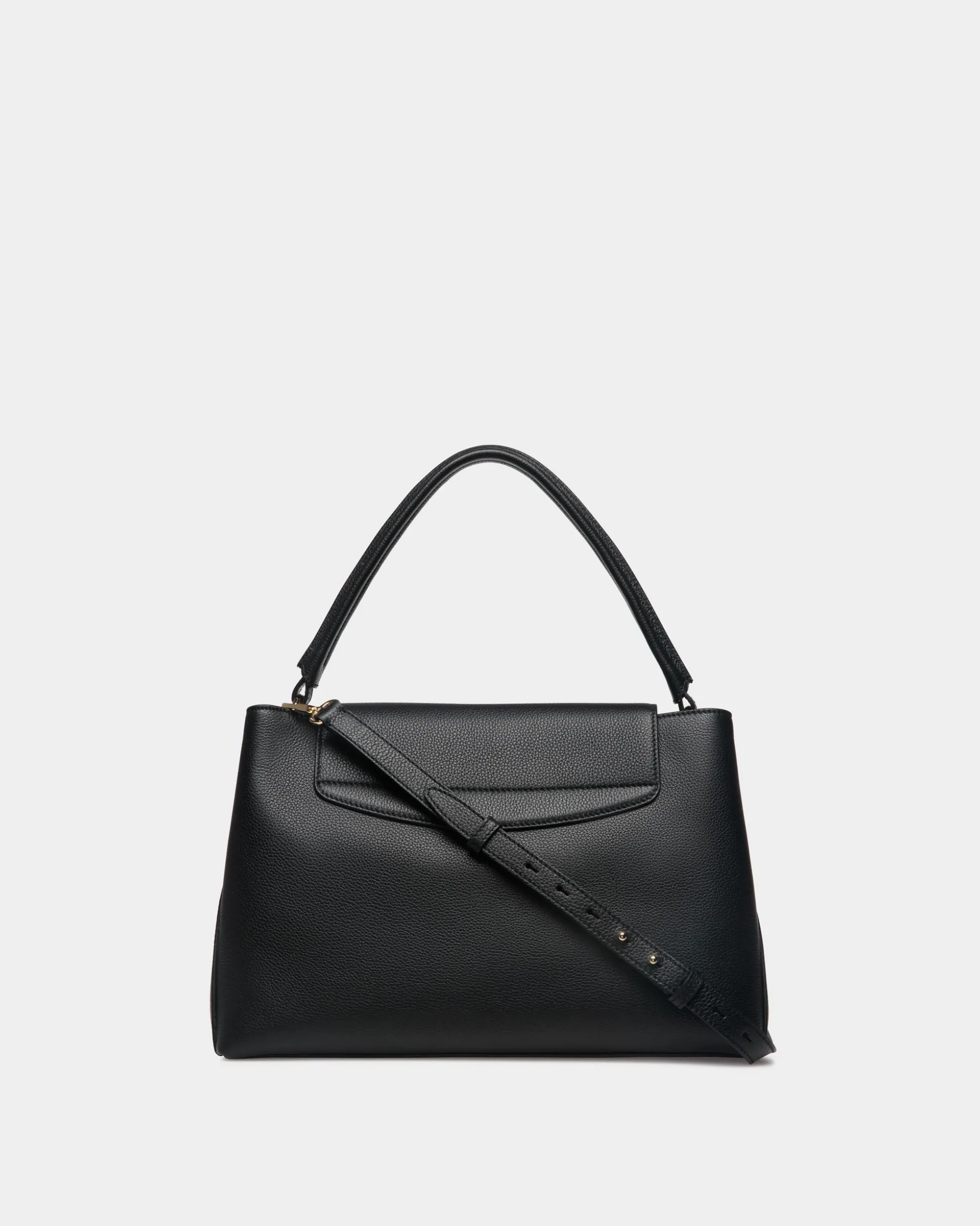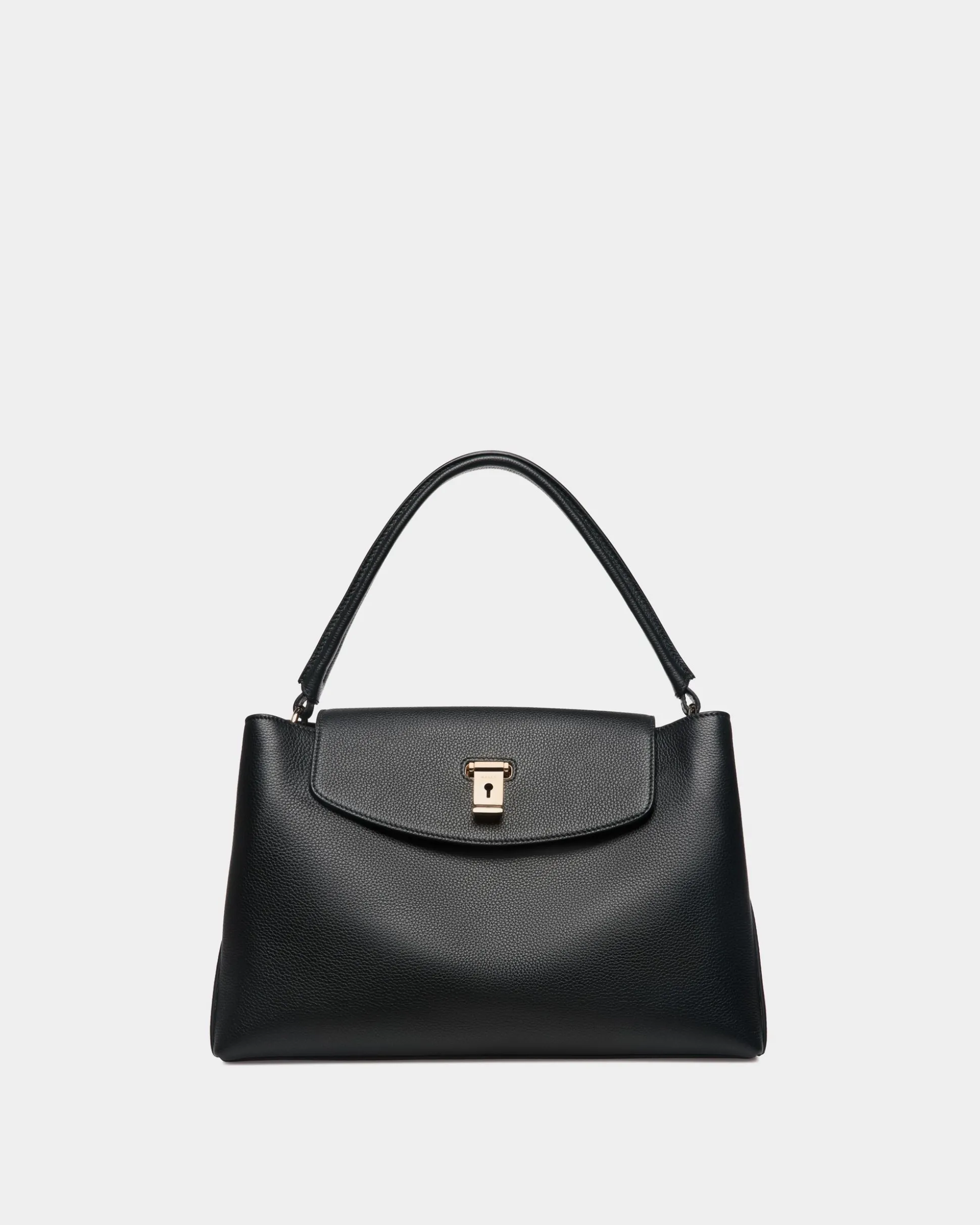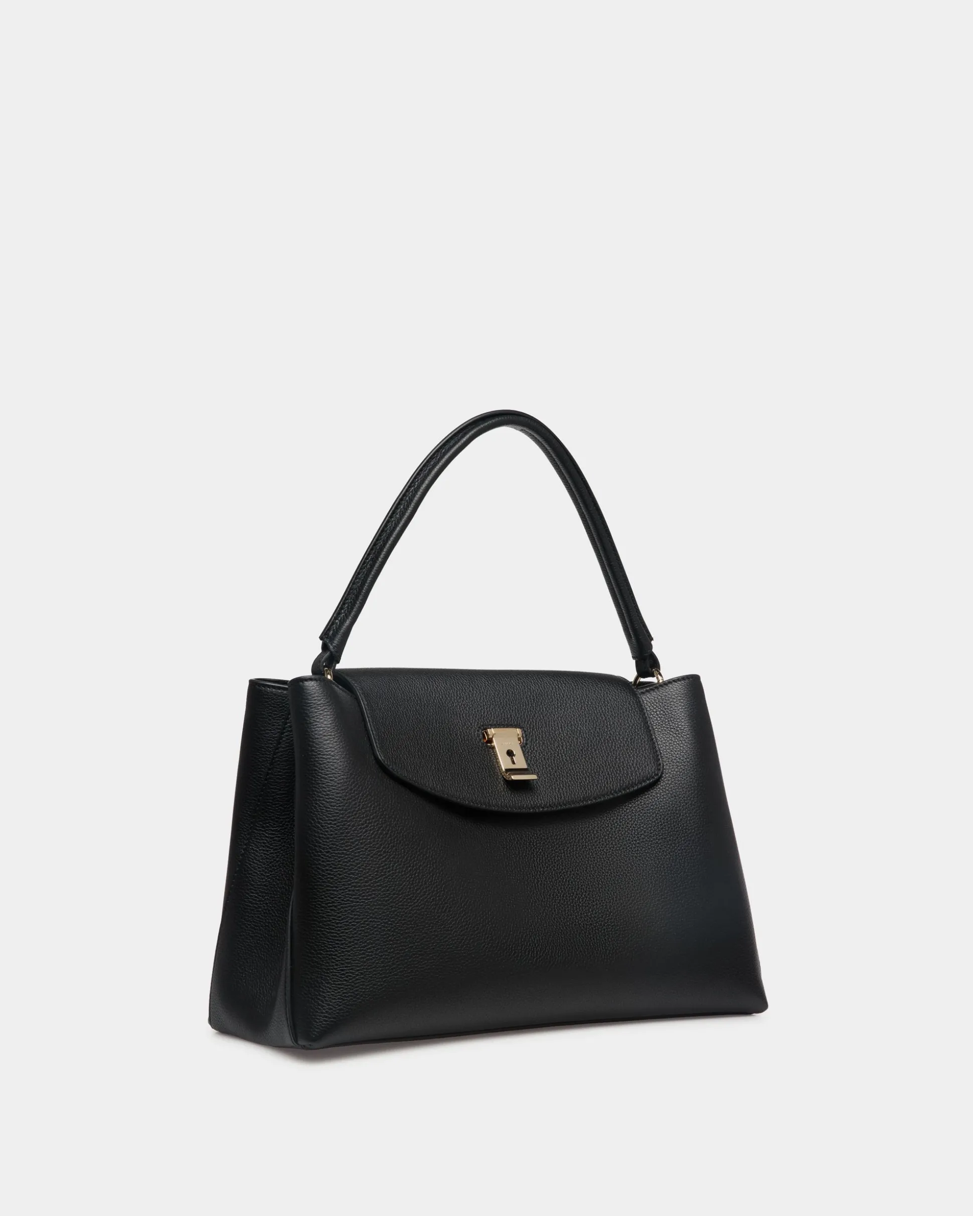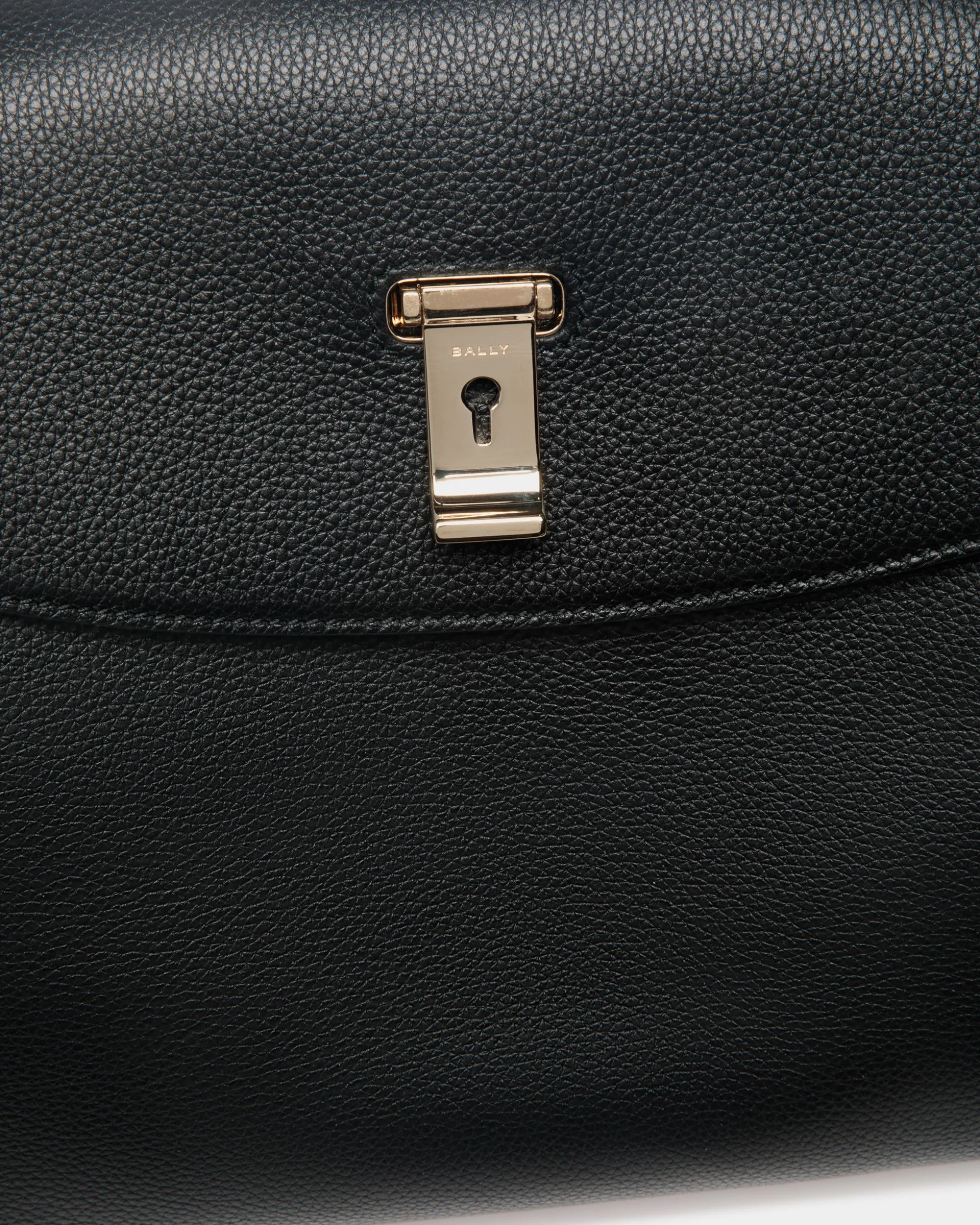 This Lock Me top handle bag is crafted from black grained leather into a structured silhouette. The namesake clasp in gold-tone metal trims the flap closure of the central compartment. A variety of carry options – hand, shoulder and crossbody – are ensured by the wide drop handle and the detachable strap.