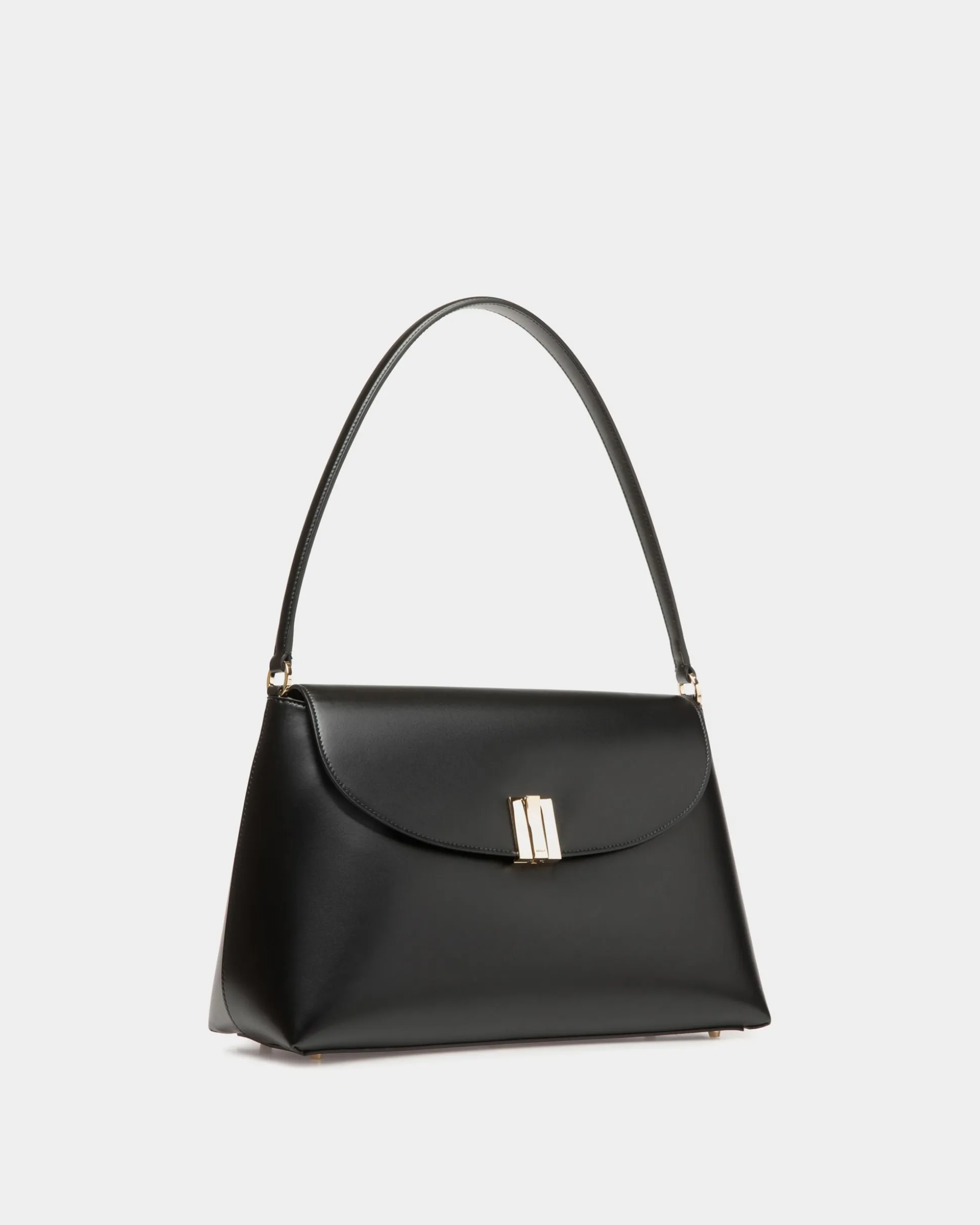 Sophisticated and versatile, this Ollam bag in calfskin brings exceptional craftsmanship to a feminine accessory. The functional hardware at the center is shaped into an essential Bally Ribbon in gold-tone metal, closing the top flap of the main compartment. A zipped pocket on the outer back panel keeps smaller items secure yet within reach.