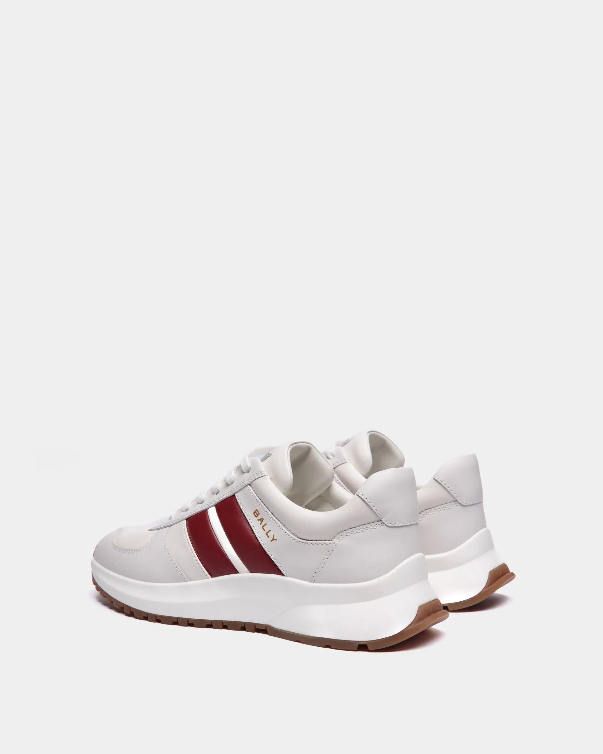 With a clean and modern aesthetic, this Outline sneaker in smooth calfskin sits atop a thick Vibram rubber sole for assured grip on any terrain. A gold-foil Bally logo trims the red and white Bally Ribbon at the sides.