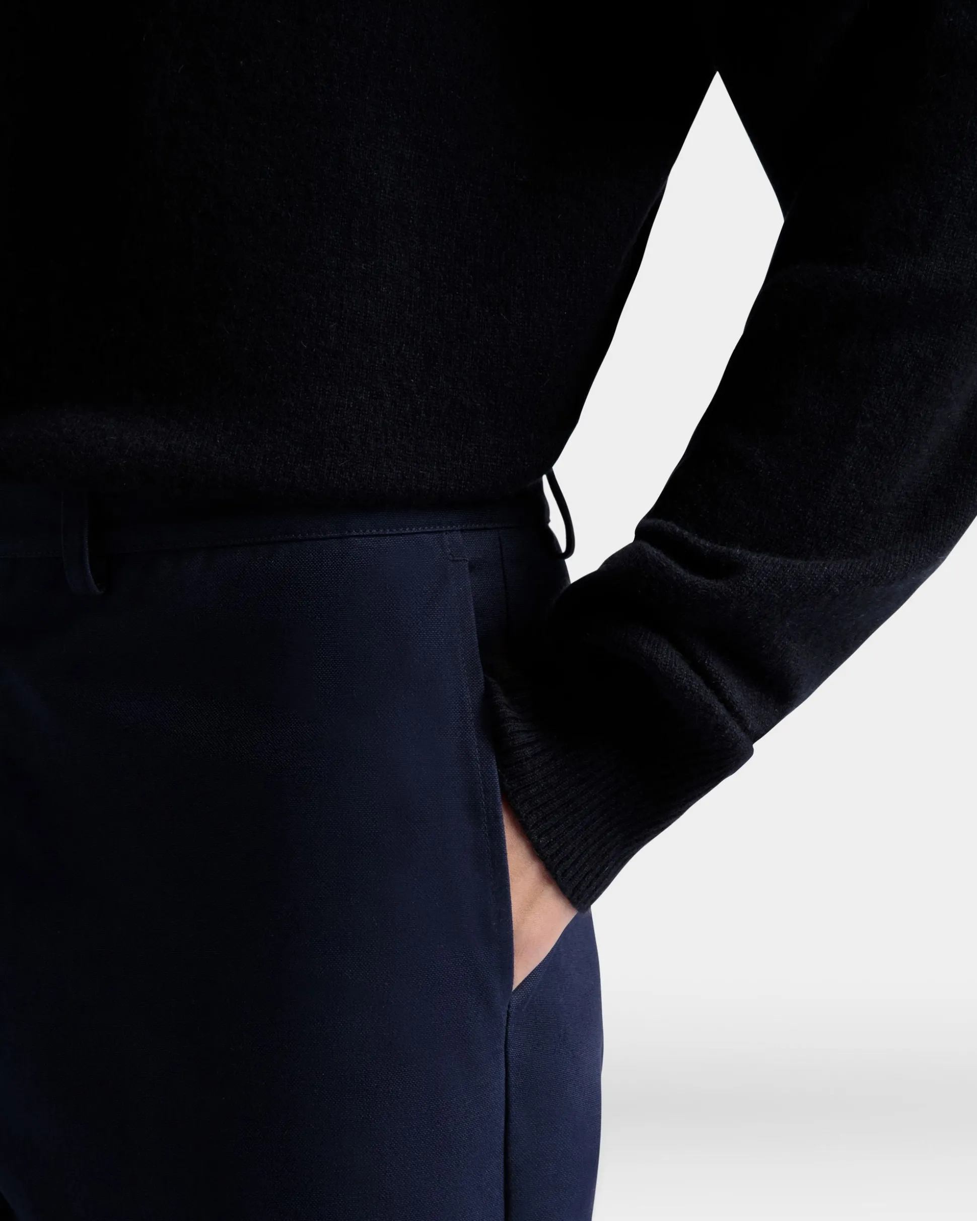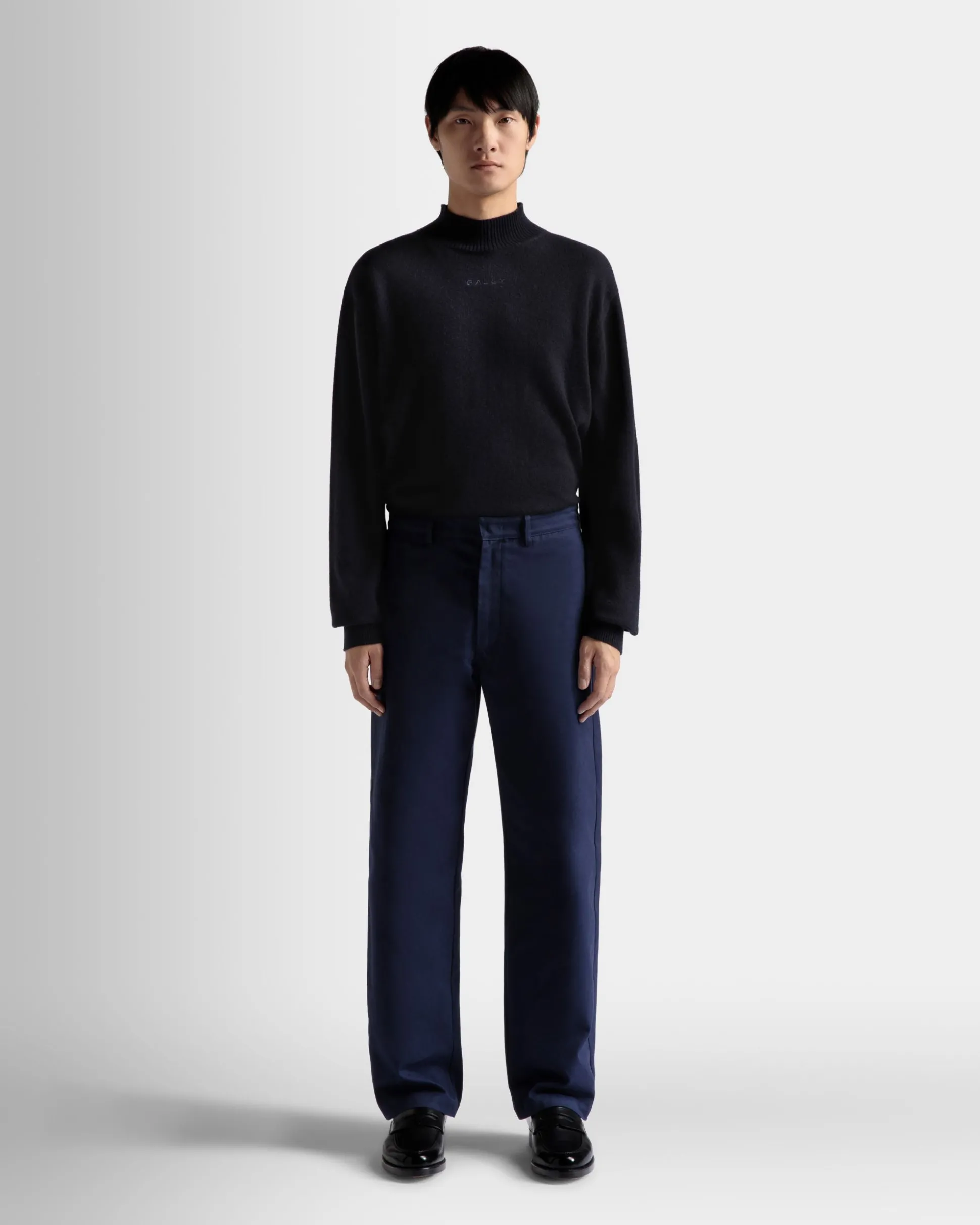 Made from luxurious navy blue cotton, these pants are polished in their aesthetic. The high-quality fabric provides a soft, smooth feel, while the classic design ensures timeless style for any occasion.