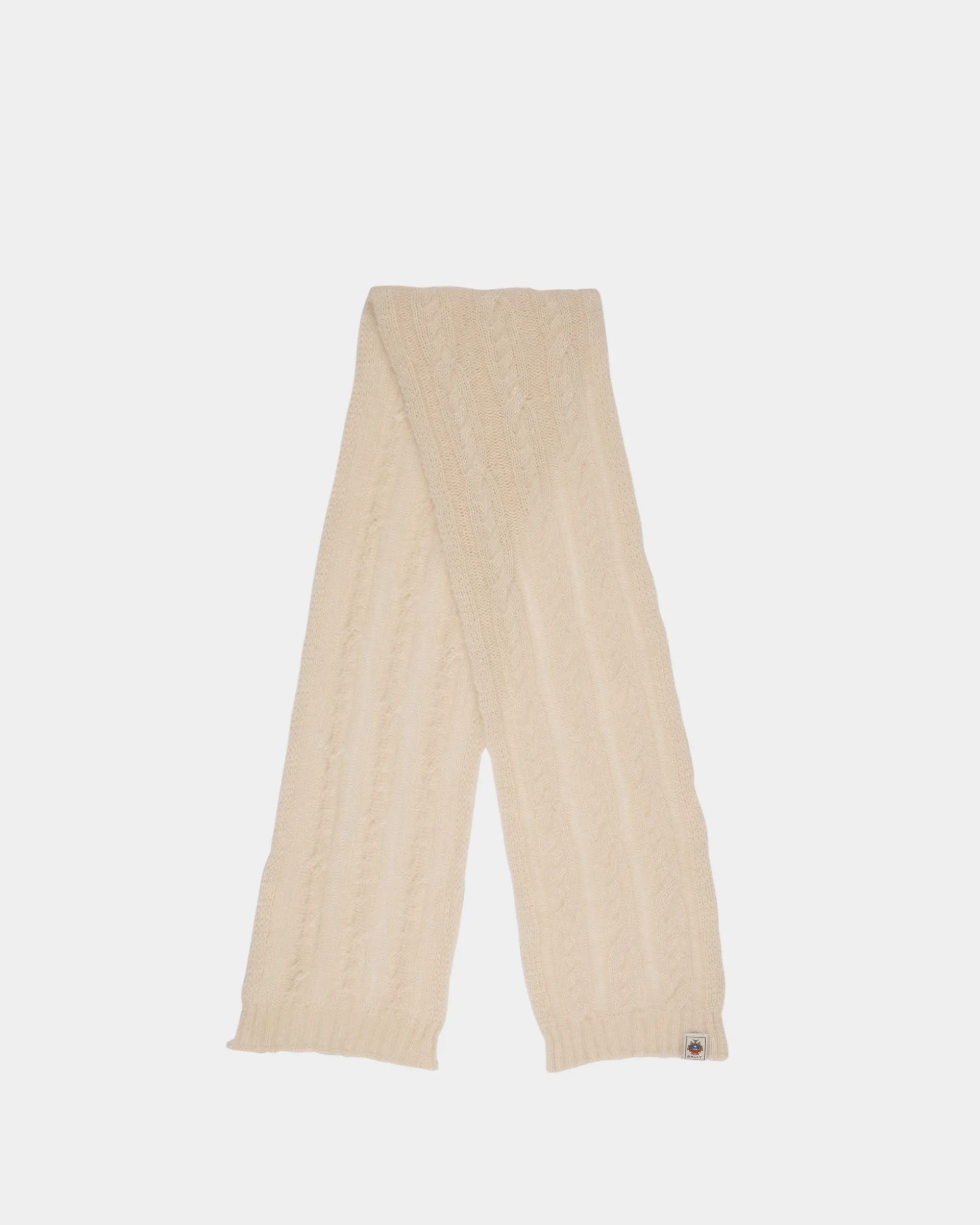 In a classic Ivory hue, this cable-knit scarf is soft and warm in a deluxe blend of mohair and silk.