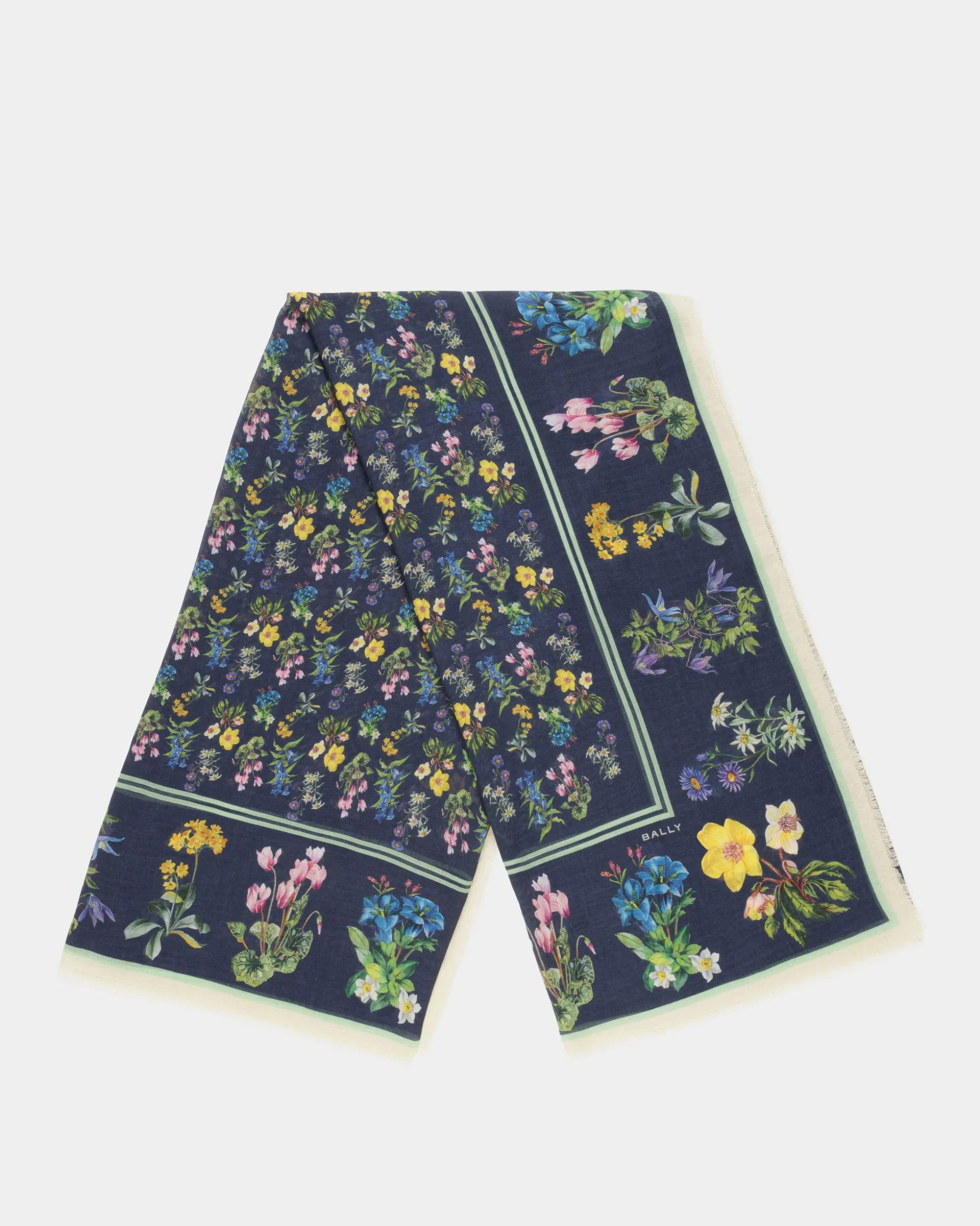 In soft modal and fine cashmere, a delicate Mountain Flower print completes this scarf as it depicts the flora of the Swiss Alps.