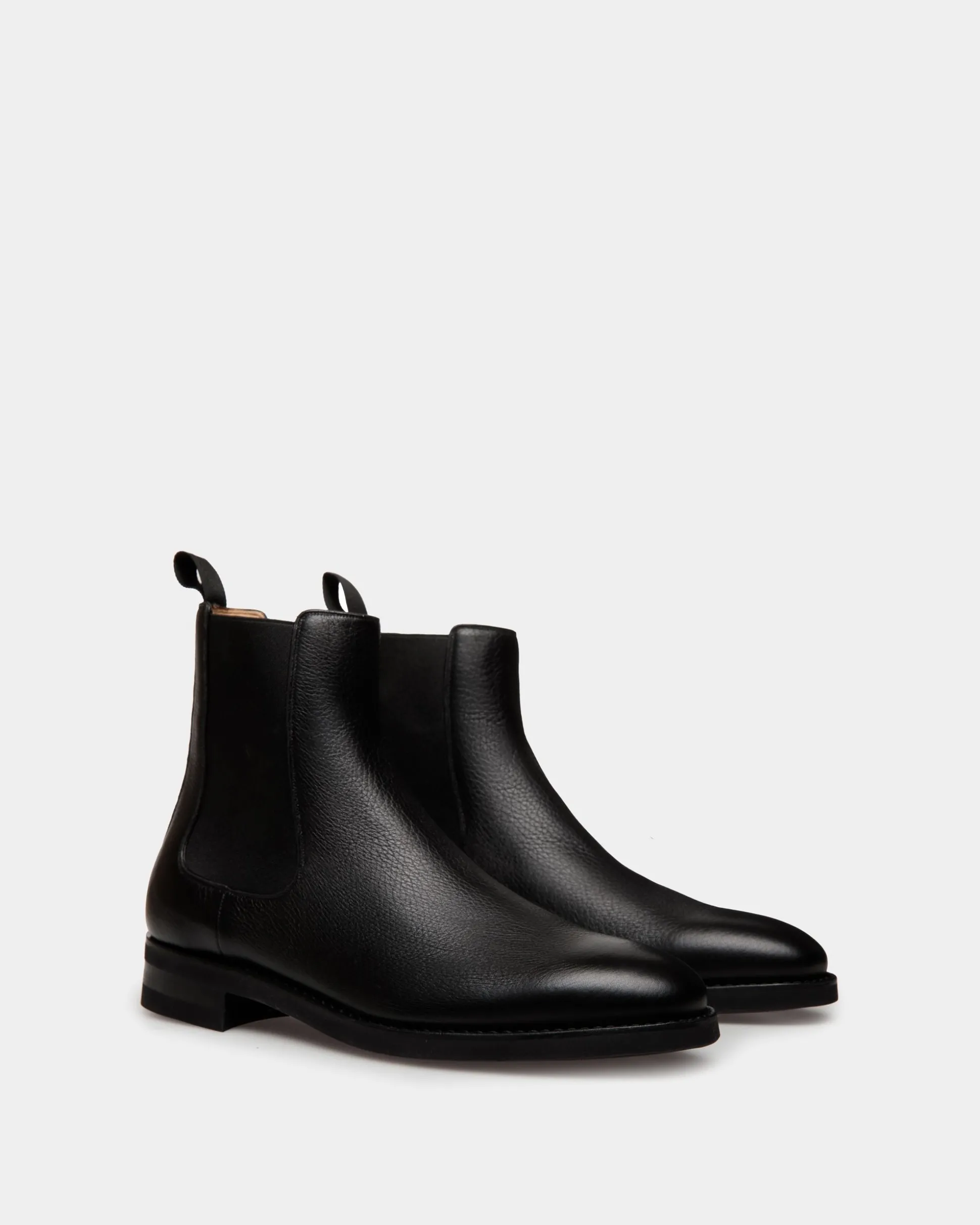 A contemporary interpretation of Bally innovation and expertise, this Scribe Un bootie is meticulously hand-crafted in grained deer leather with a buffed toe for distinction. At once timeless and modern, it has a Chelsea boot silhouette united with a rubber sole.
