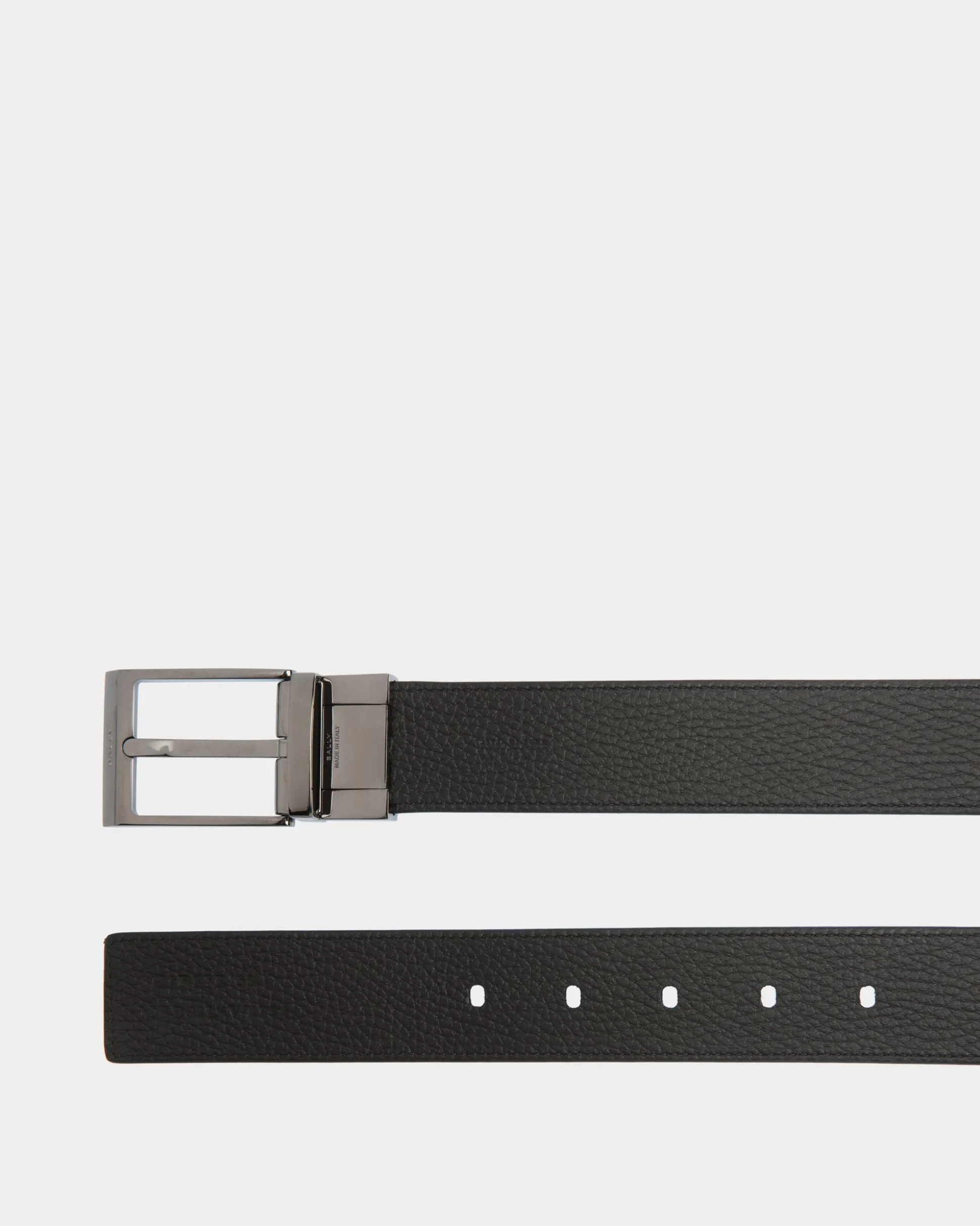 This Shiffie 35 mm belt in brown and black leather features a reversible and adjustable design with a ruthenium-hue buckle at the front.